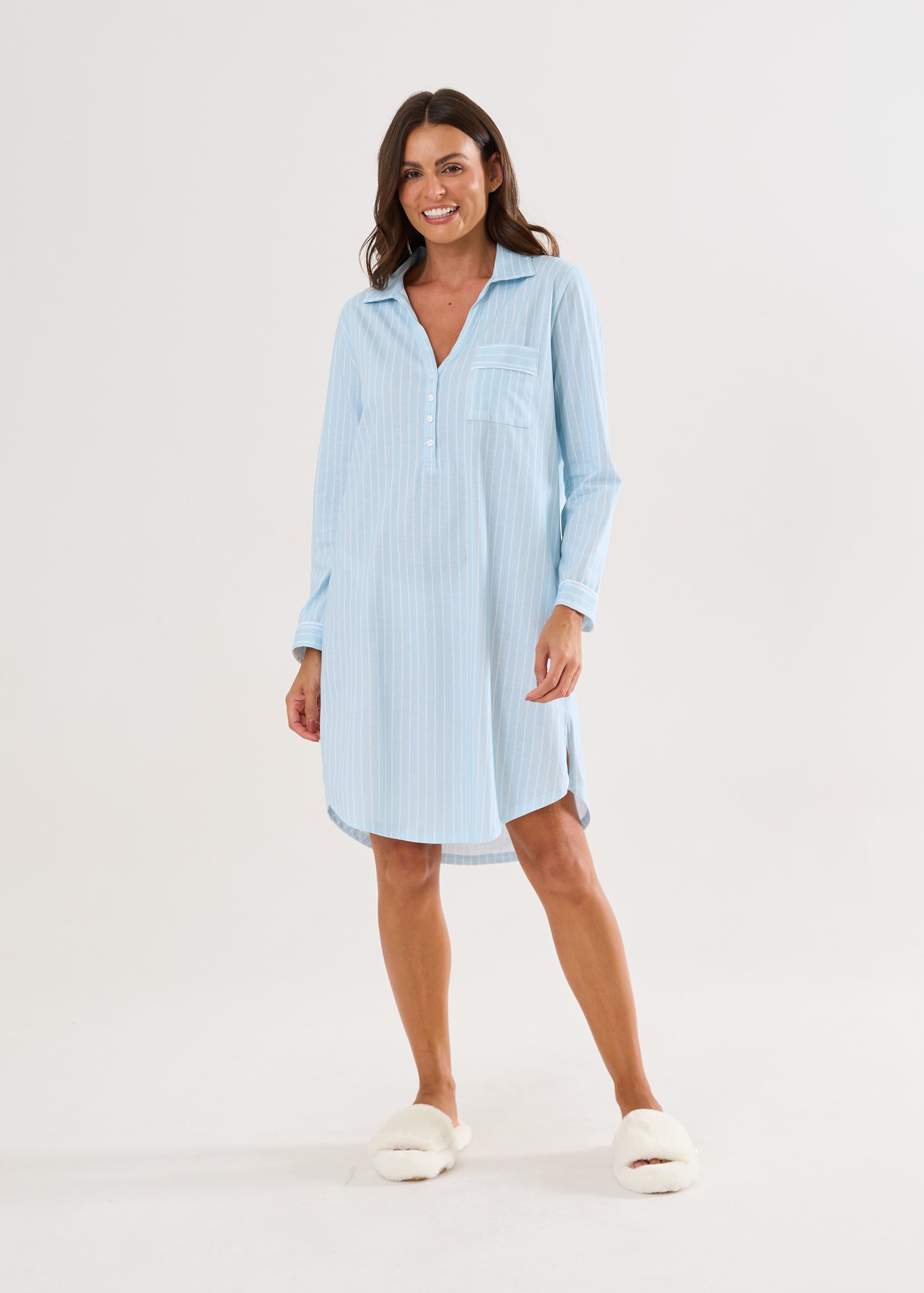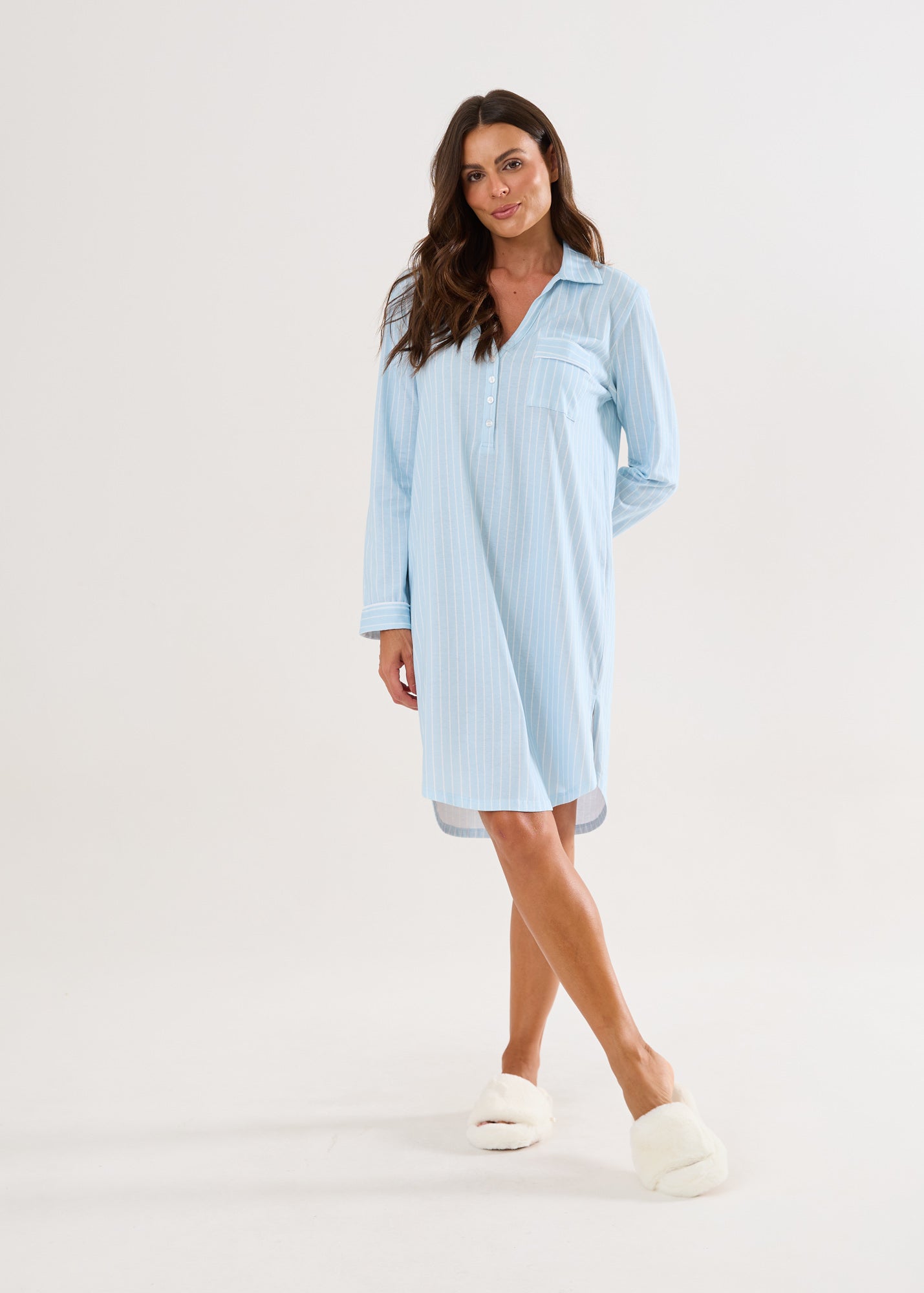A Coleção Sleepy nos remete a uma palavra: descanso! Com a suavidade das cores e a elegância das listras, os pijamas e camisolas tem modelagens confortáveis que te abraçam. Esta coleção traz peças combinando para toda a família e é confeccionada na malha ultrasoft 100% algodão. Apaixone-se!