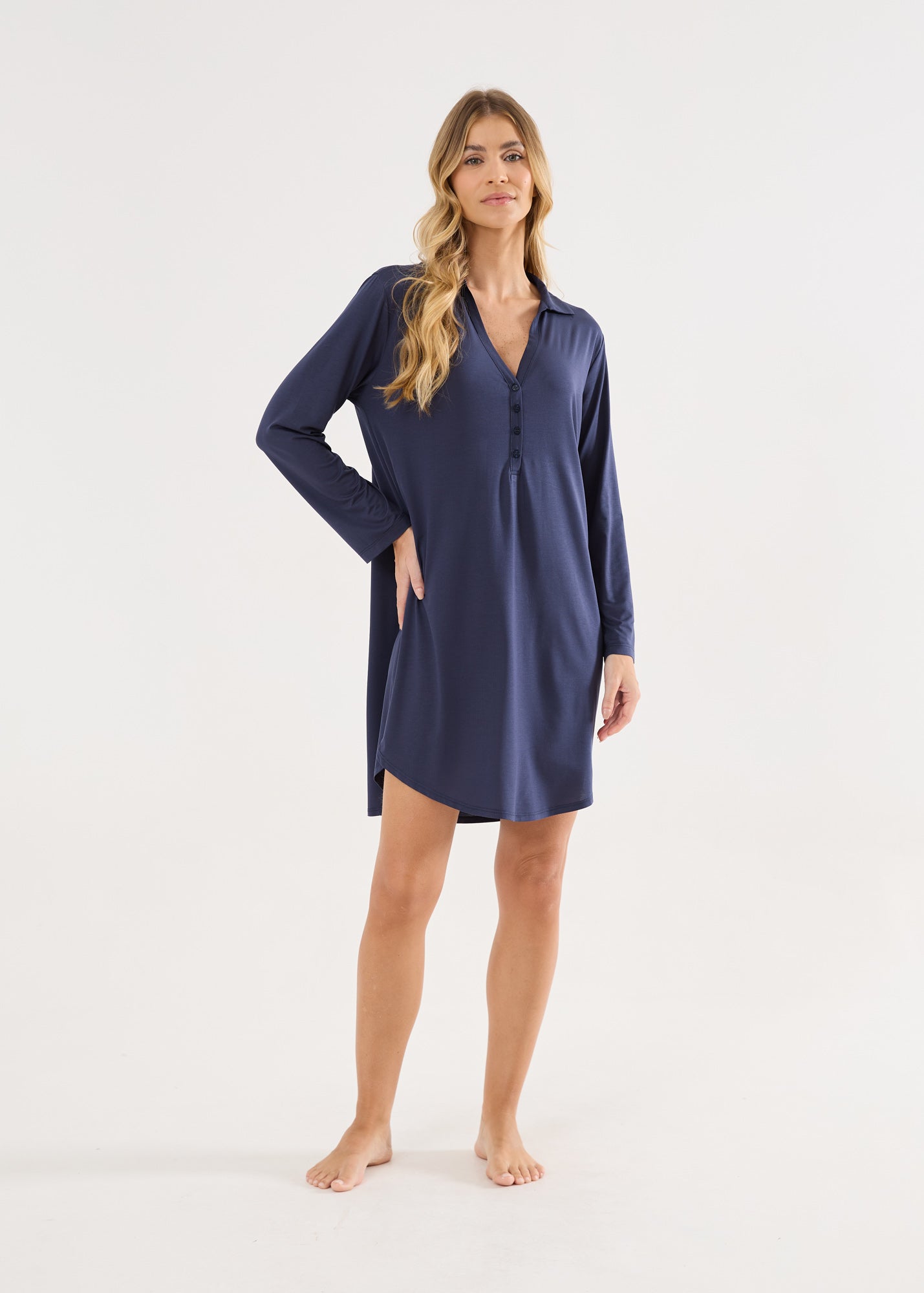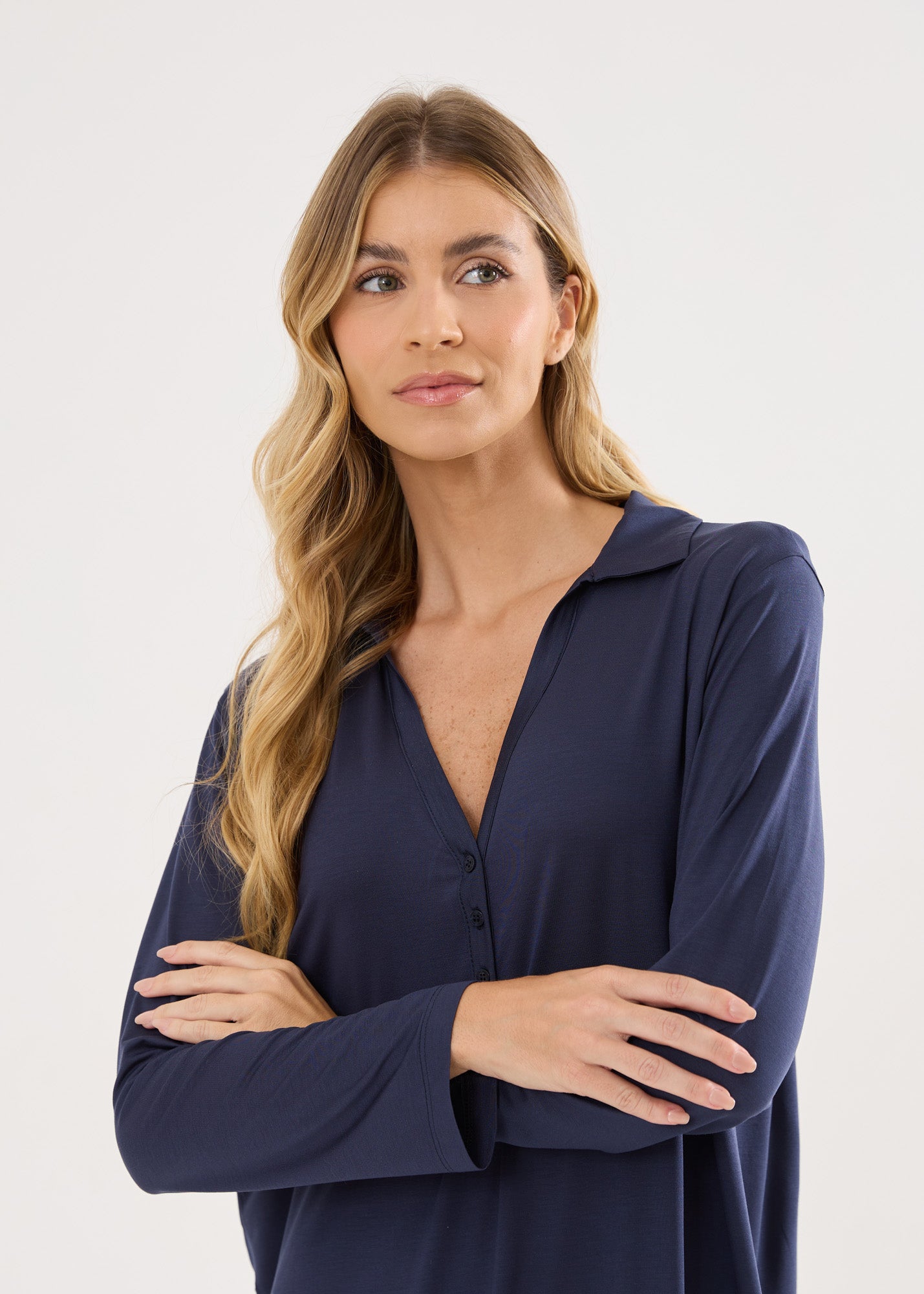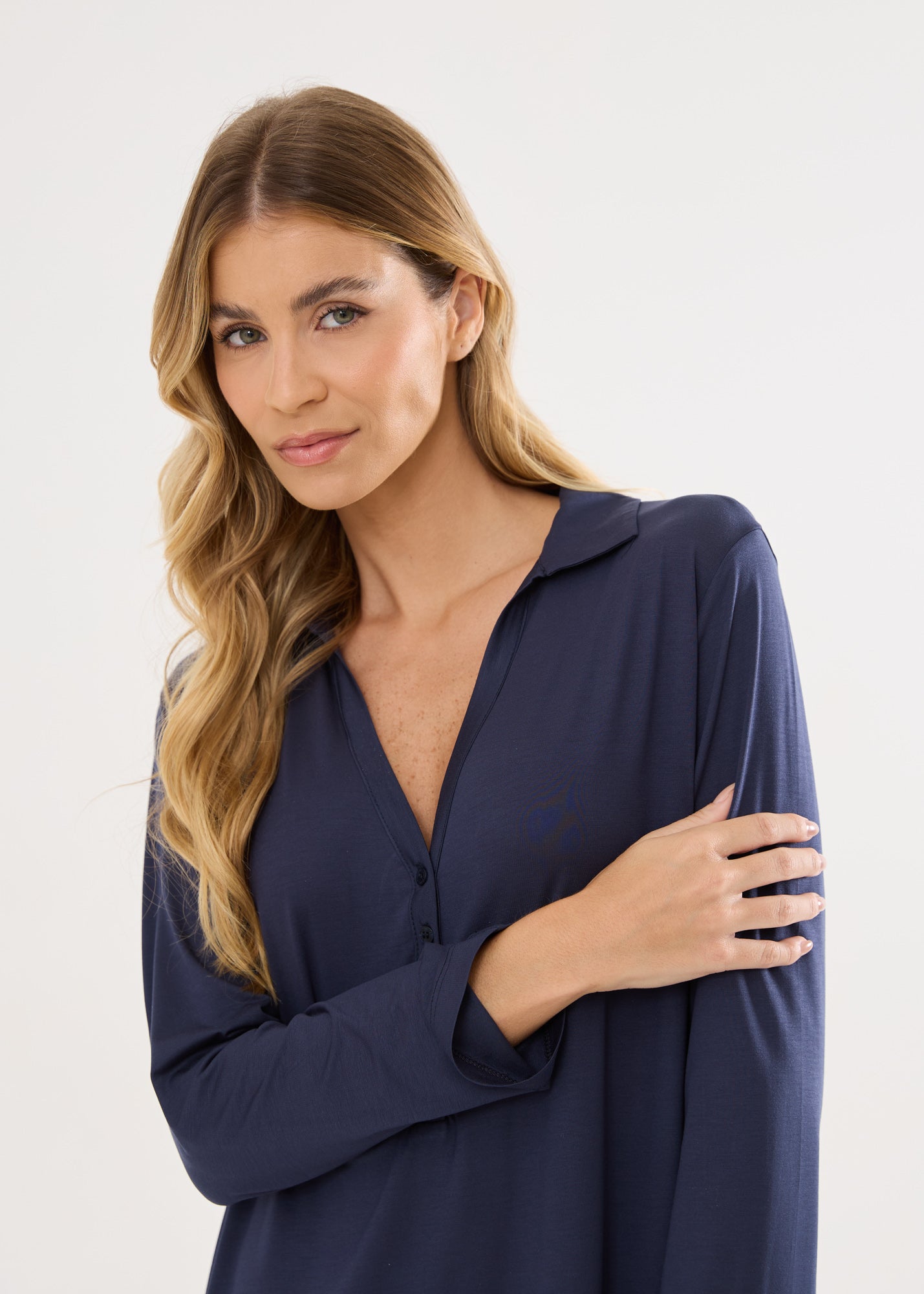 Homewear estilo chemise, super charmosa e com o toque inigualável da malha modal. Item essencial para você curtir o conforto em casa! Camisola com mangas longas, modelagem soltinha, gola, abotoada. Perfeita para quem curte ficar em casa confortável e estilosa. Além de ser uma ótima opção para as gestantes.