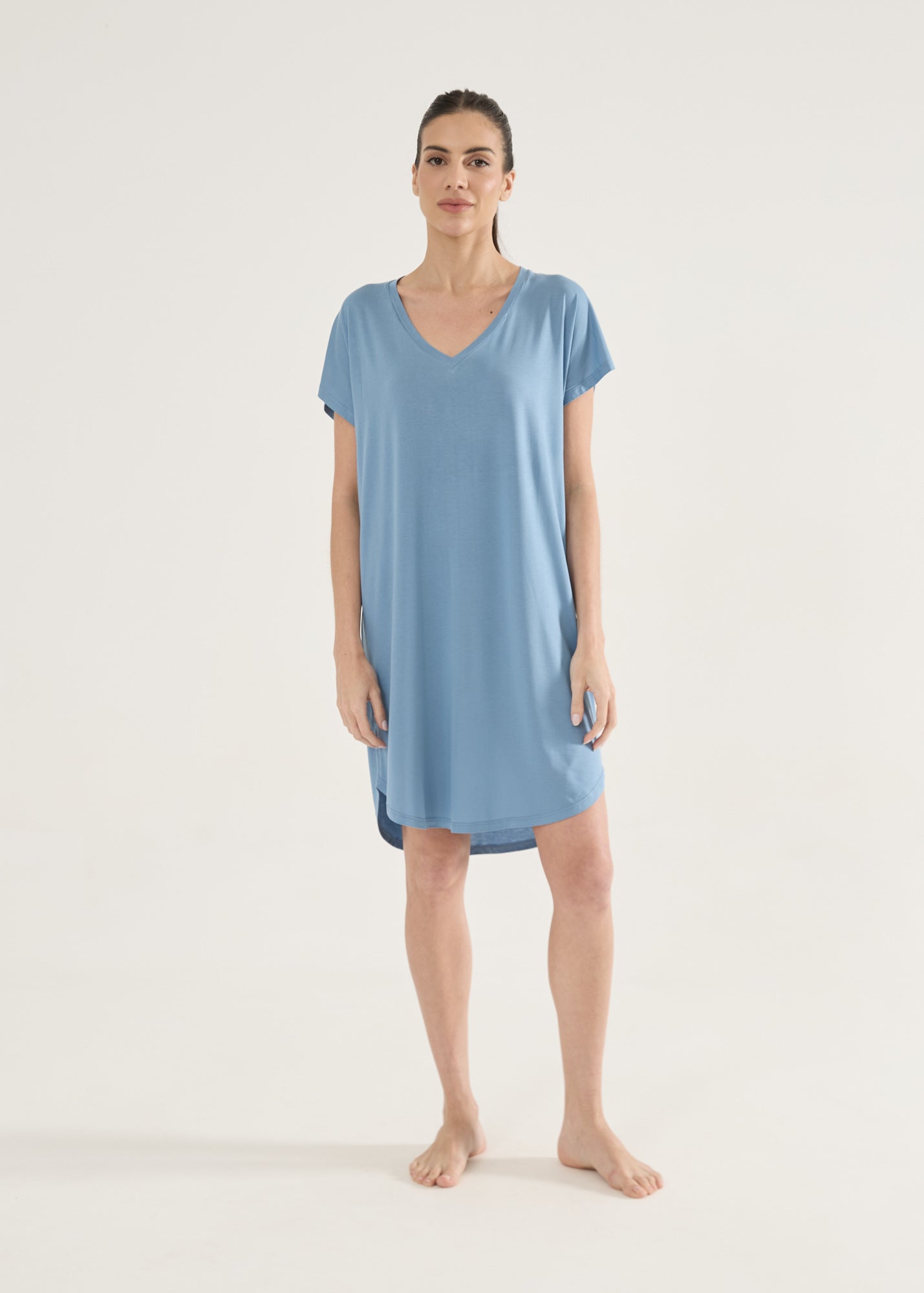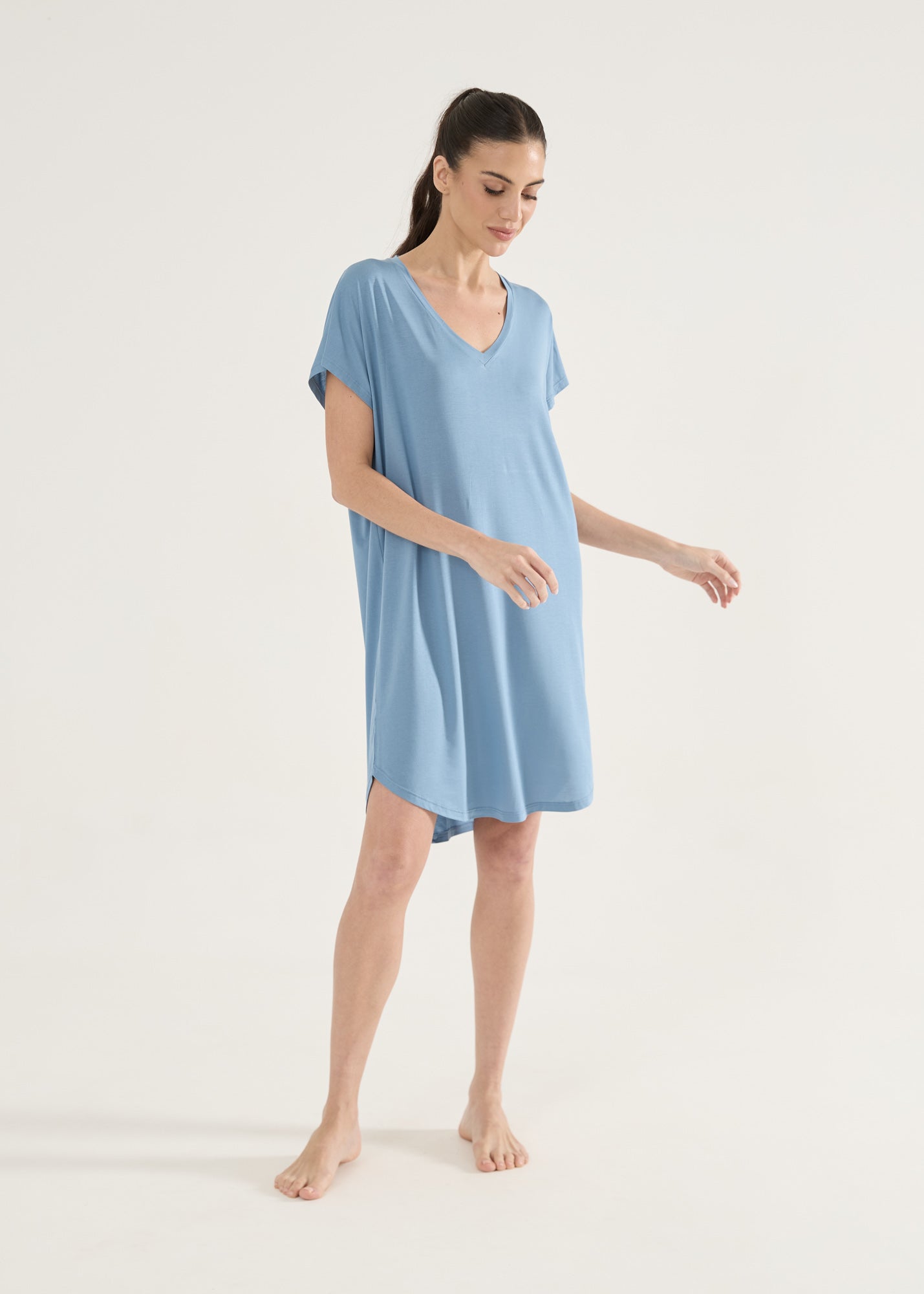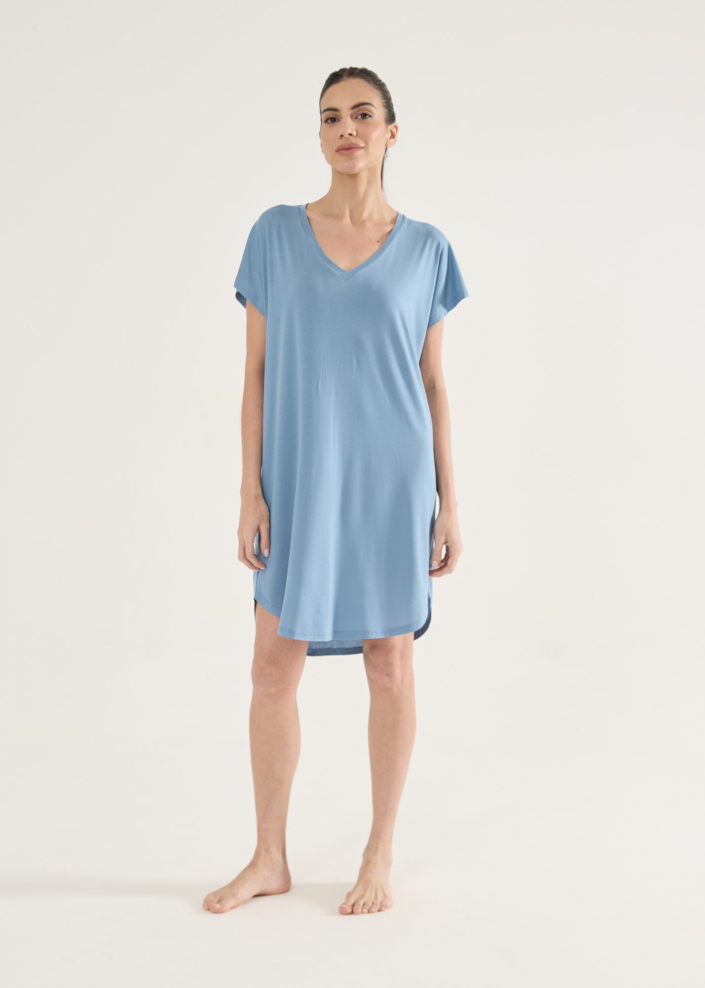 Homewear estilo camisola ou t-shirt bem grandona, com o toque inigualável da malha modal. Item essencial para você curtir o conforto em casa! Camisola com mangas curtas, modelagem soltinha e gola v. Você vai querer uma de cada cor!