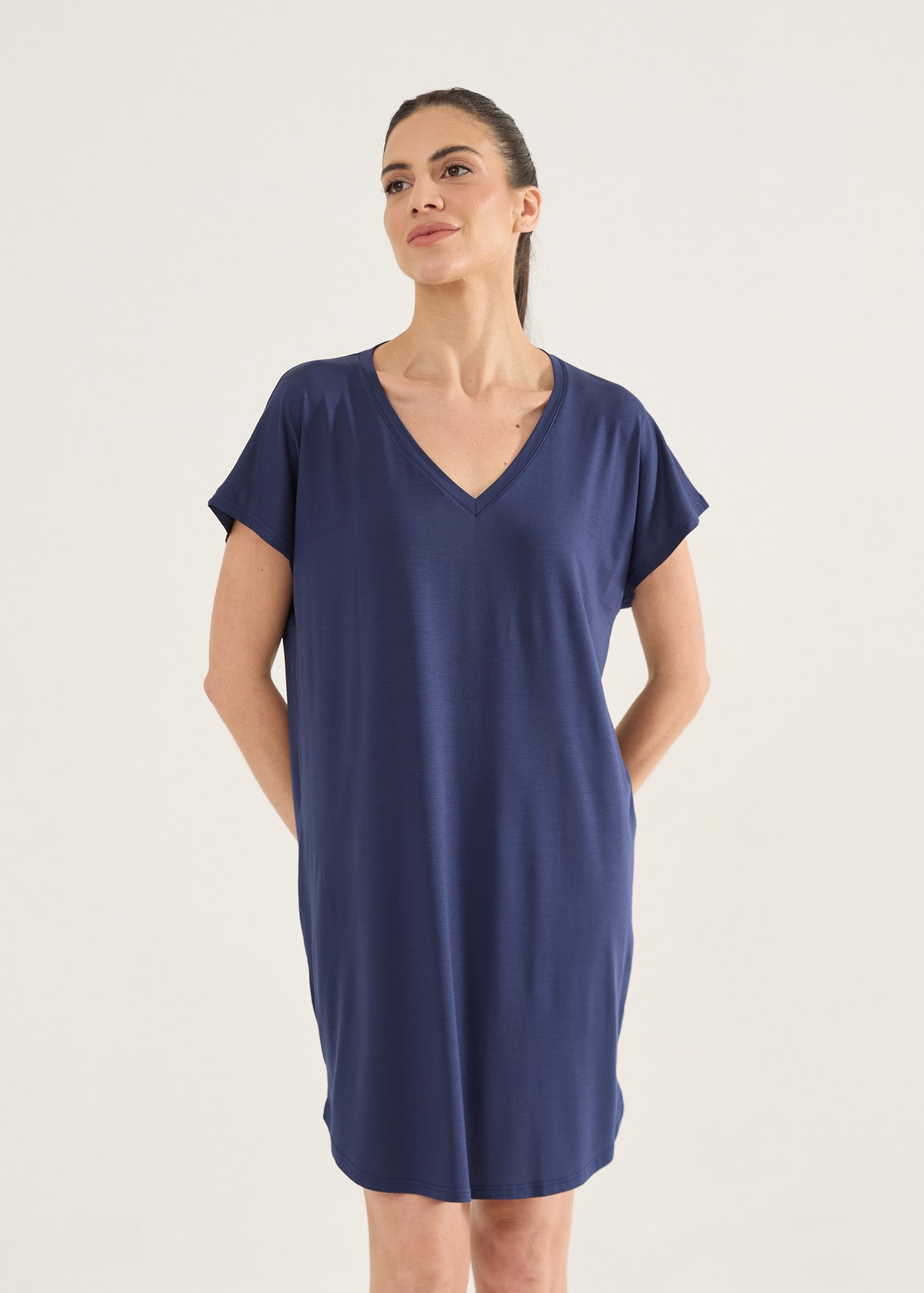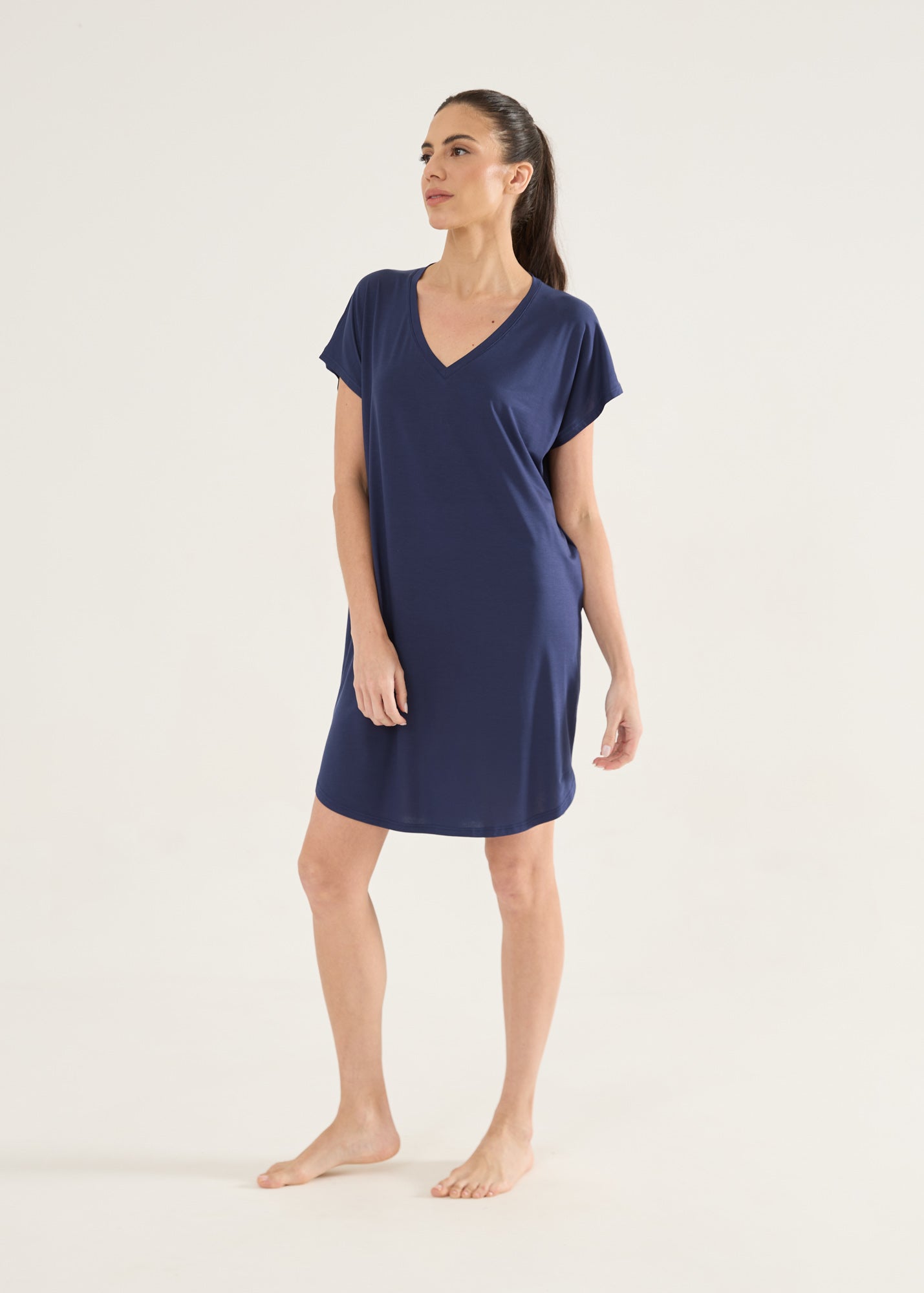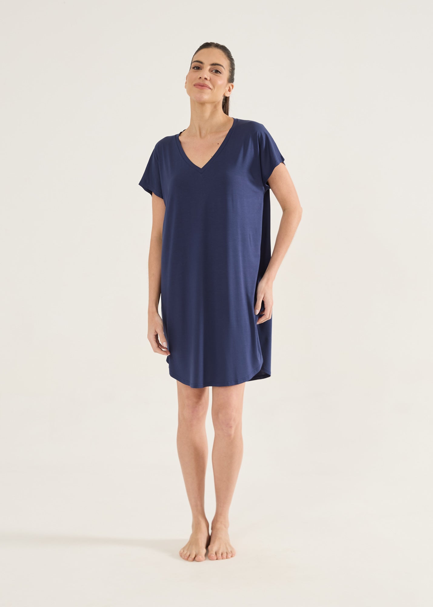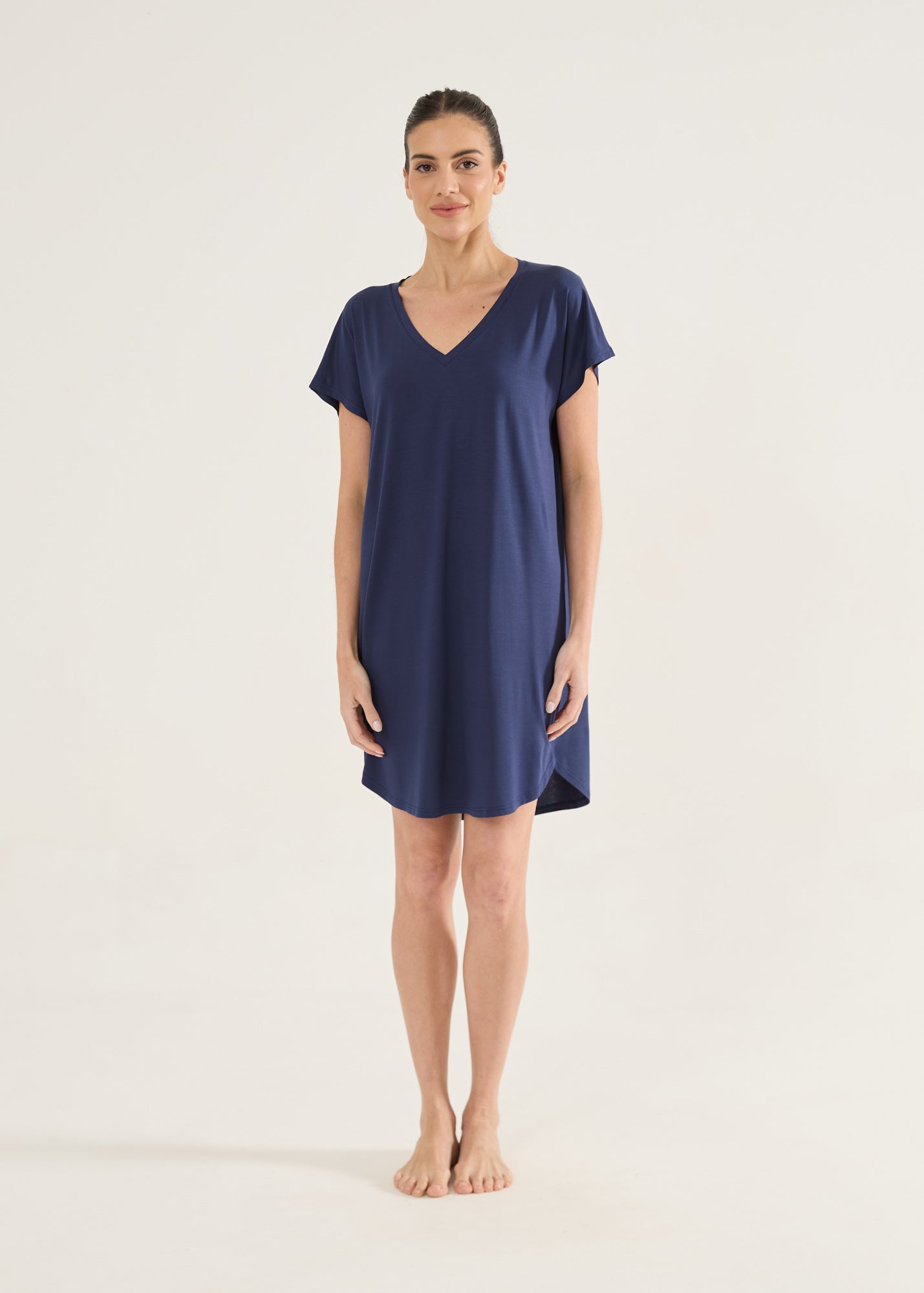 Homewear estilo camisola ou t-shirt bem grandona, com o toque inigualável da malha modal. Item essencial para você curtir o conforto em casa! Camisola com mangas curtas, modelagem soltinha e gola v. Você vai querer uma de cada cor!