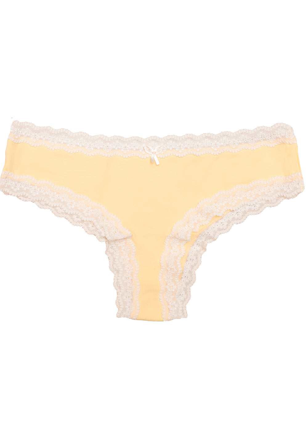 Caleçon em microfibra na cor amarela com aplicação de renda na cor off white.