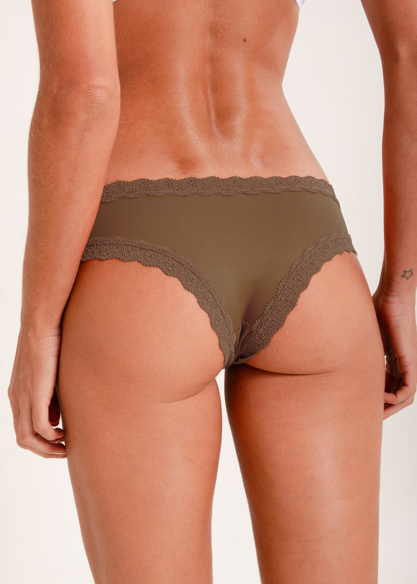 Caleçon em microfibra com aplicação de renda no mesmo tom.