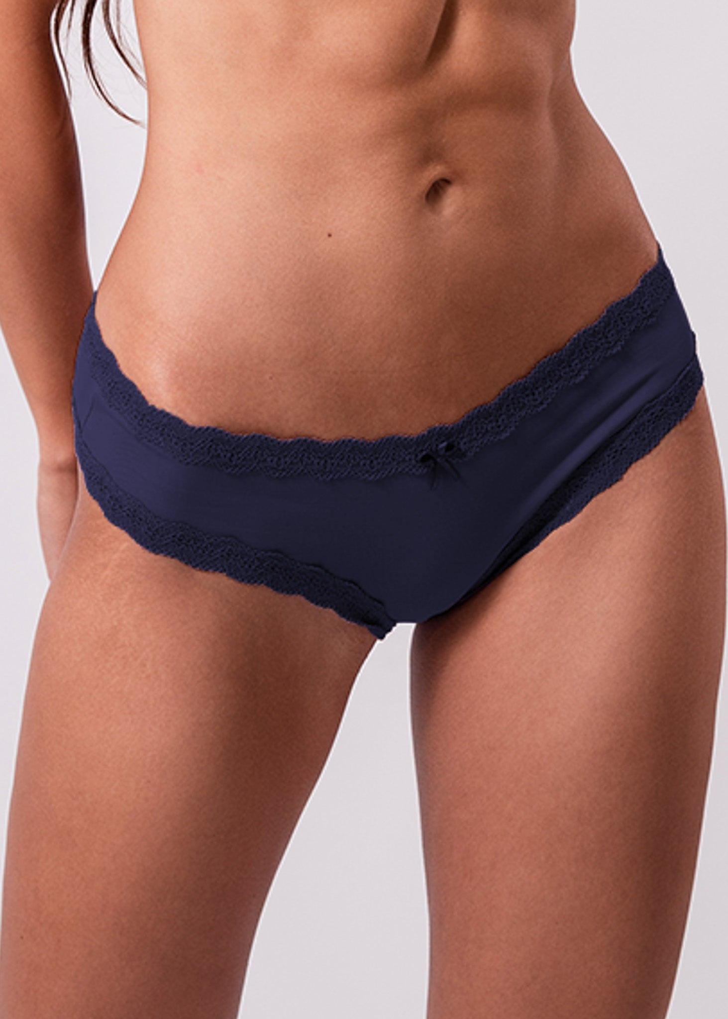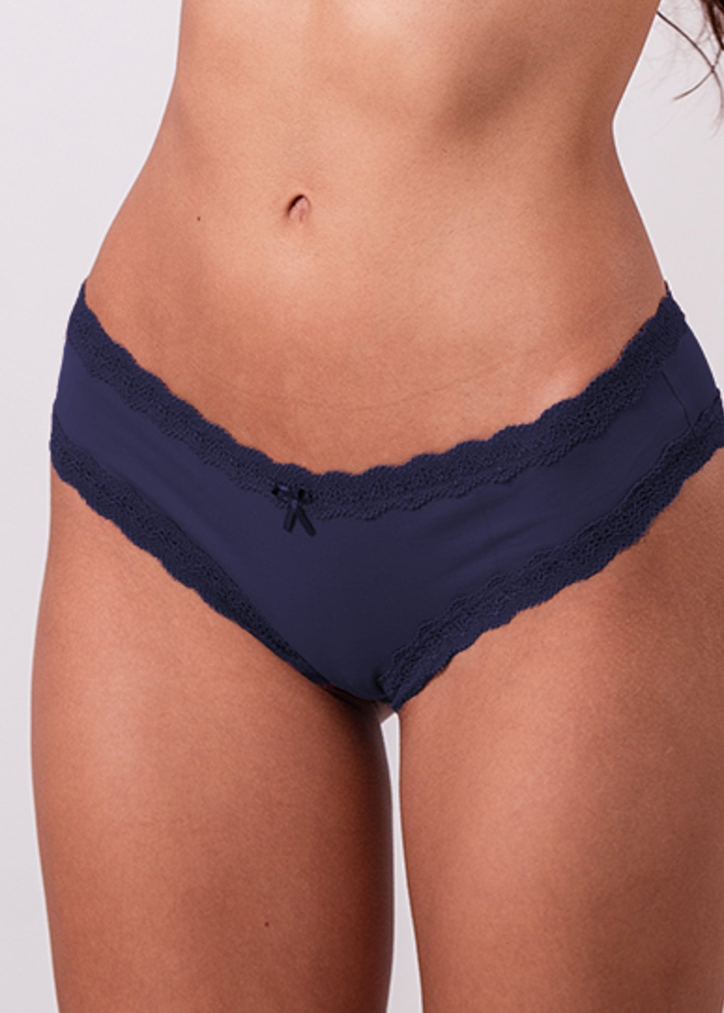Caleçon em microfibra com aplicação de renda no mesmo tom.
