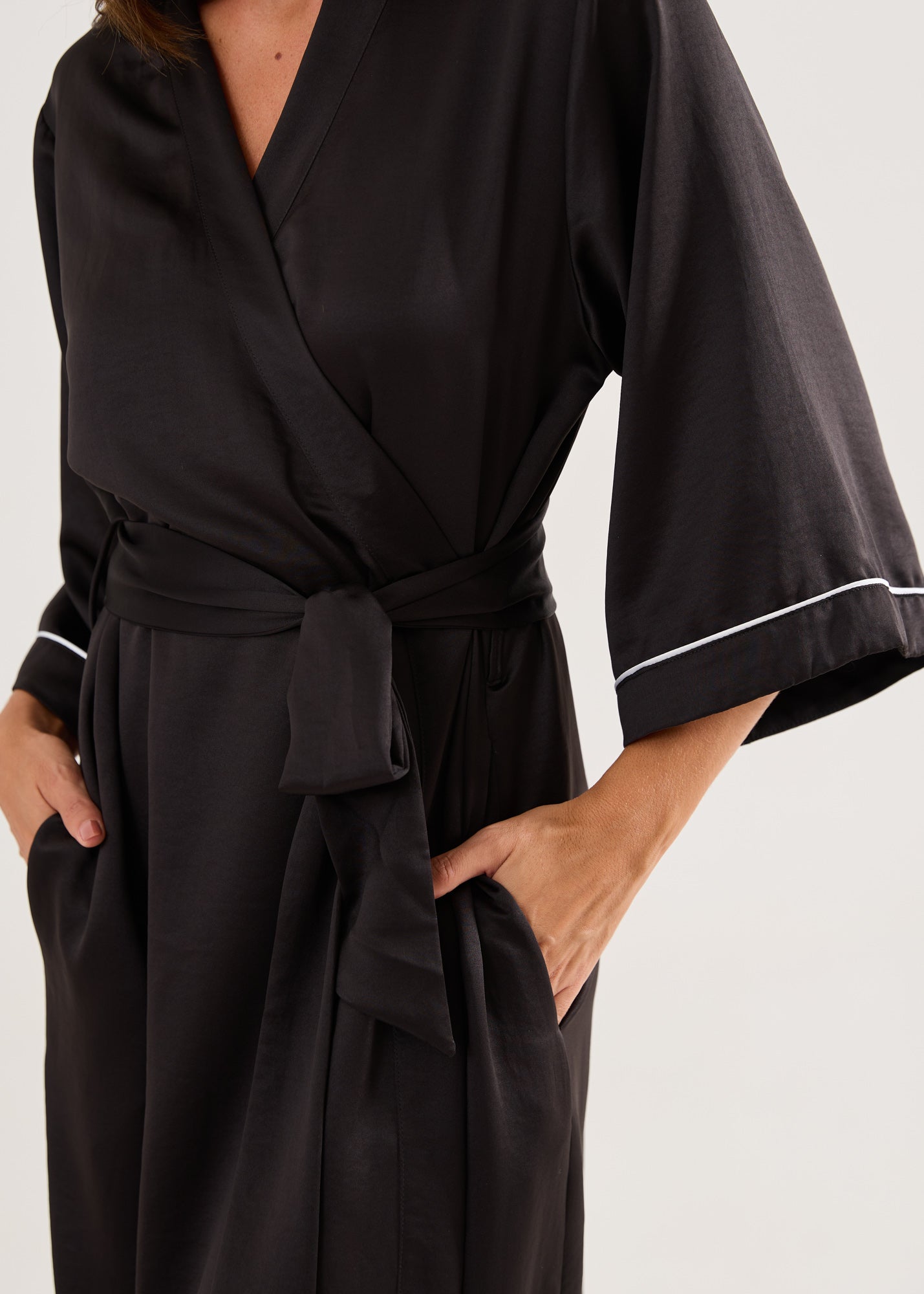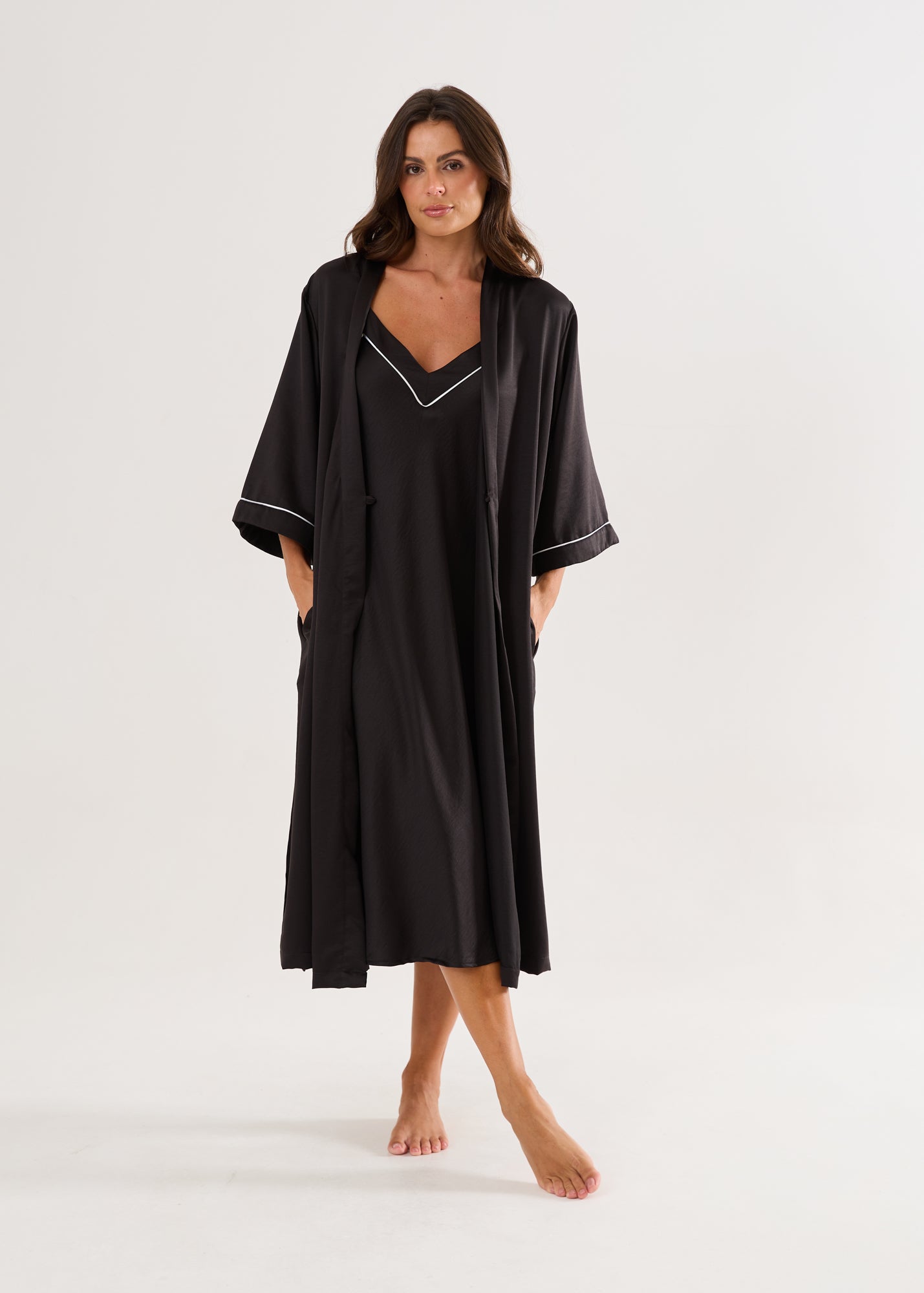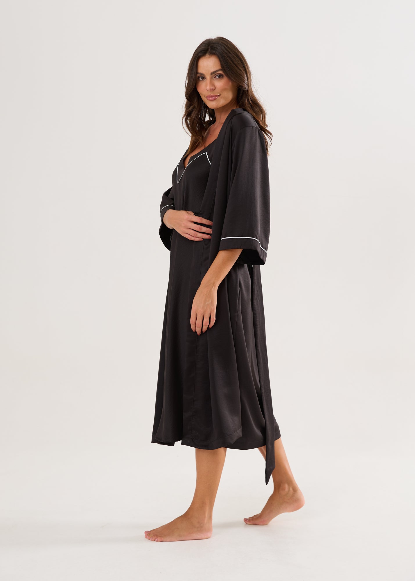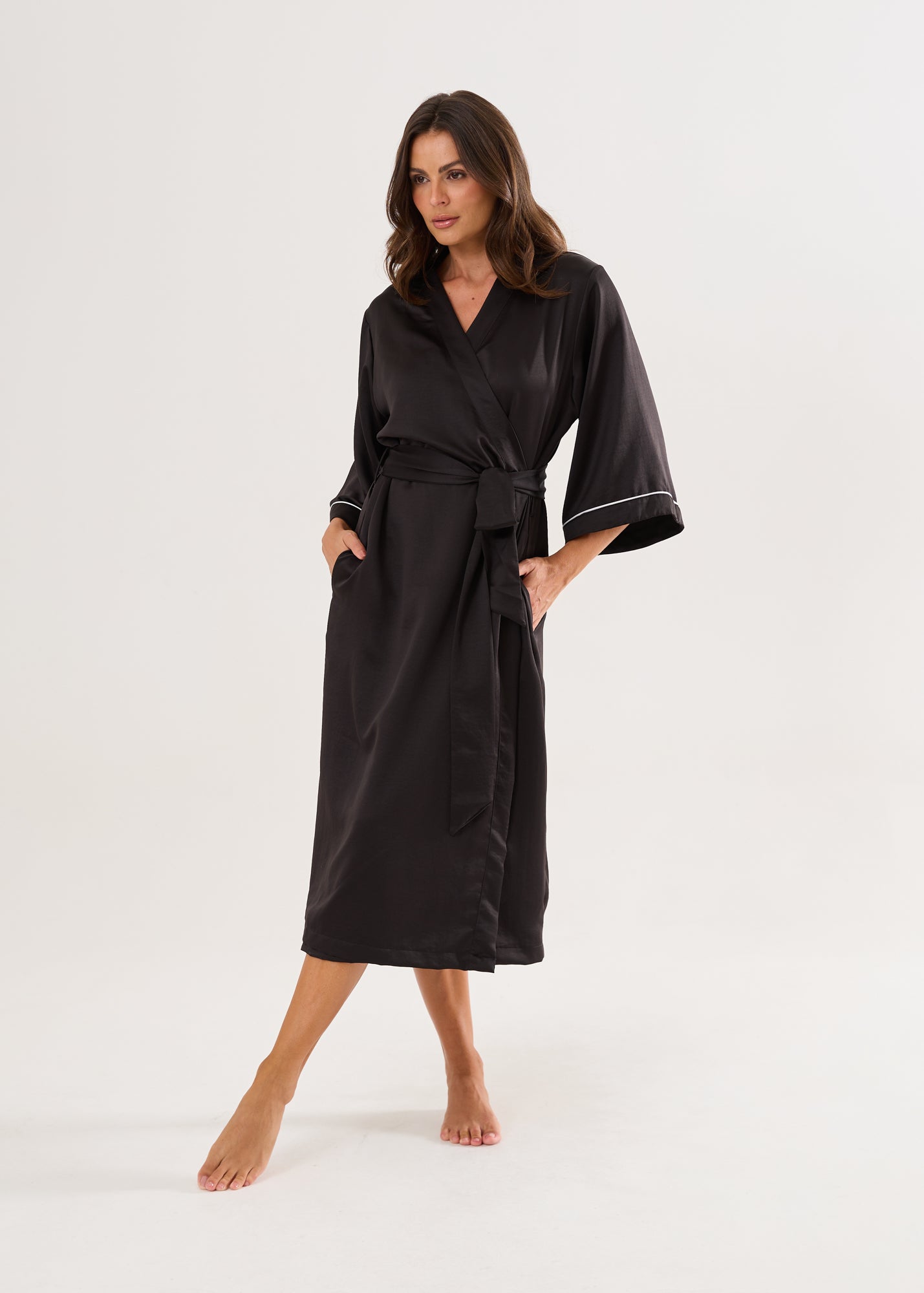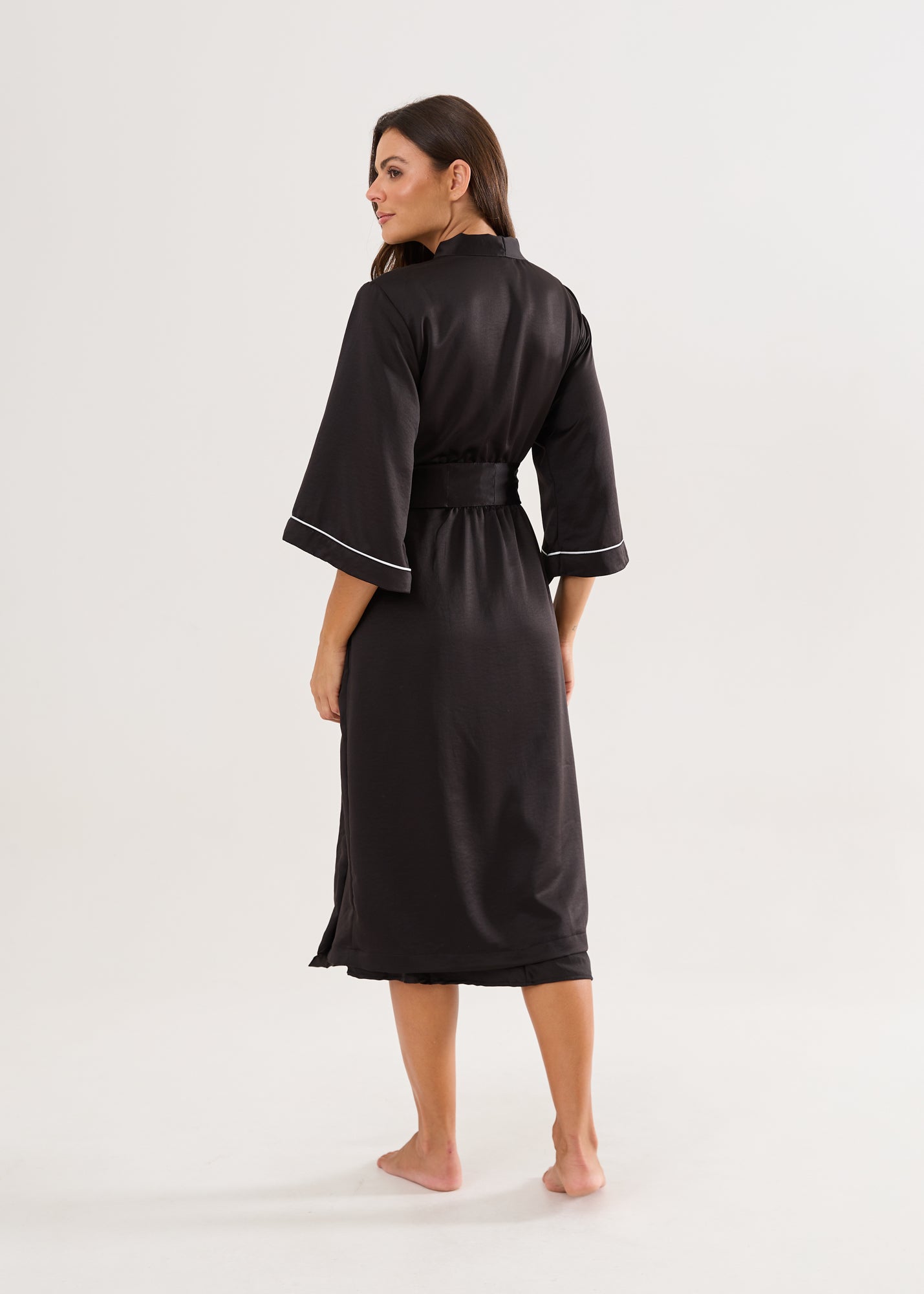 Peça chave para compor seus looks mais elegantes, o robe de cetim acompanha a camisola de alças no estilo slipdress ou um pijama de short ou calça! No comprimento midi e com o acabamento todo em vivo de alfaiataria, deixando seu look ainda mais lindo e elegante!