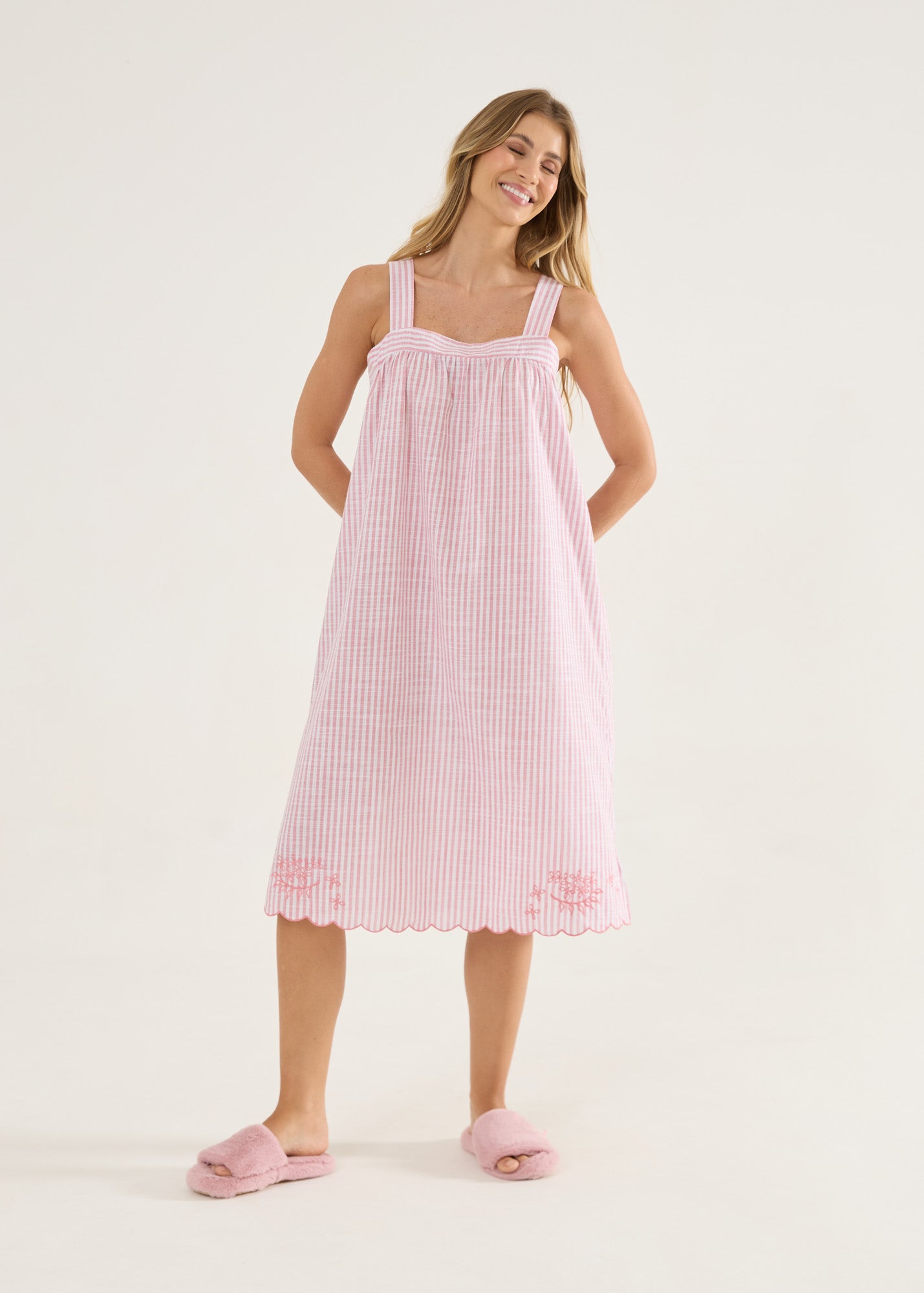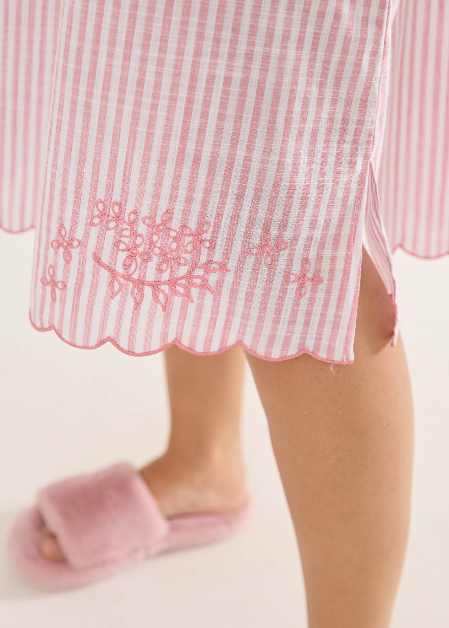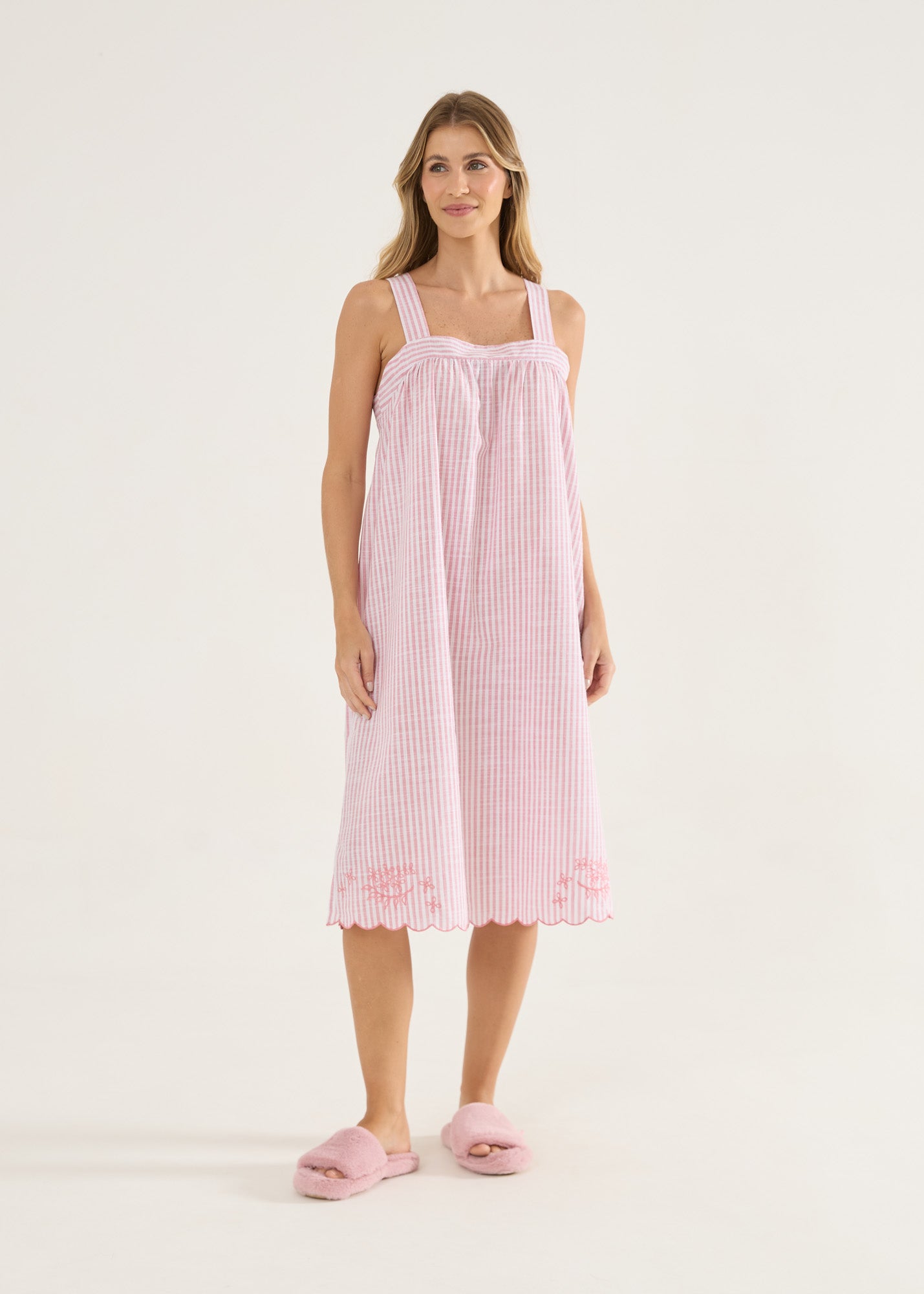 Camisola feminina, comprimento abaixo do joelho, alças largas, decote reto com leve franzido e modelagem soltinha. Lastex nas costas para proporcionar mais liberdade de movimento. Surpreenda-se com um lindo bordado exclusivo na barra.