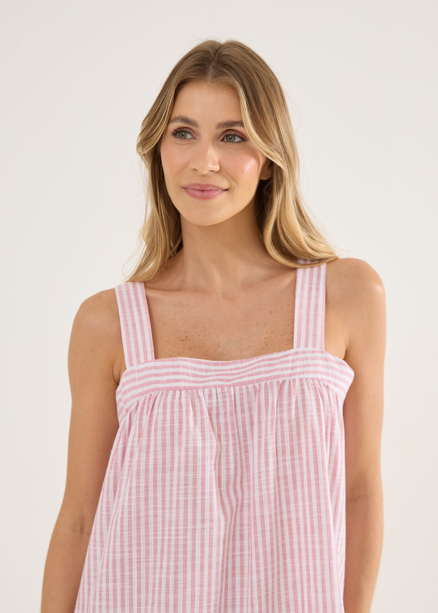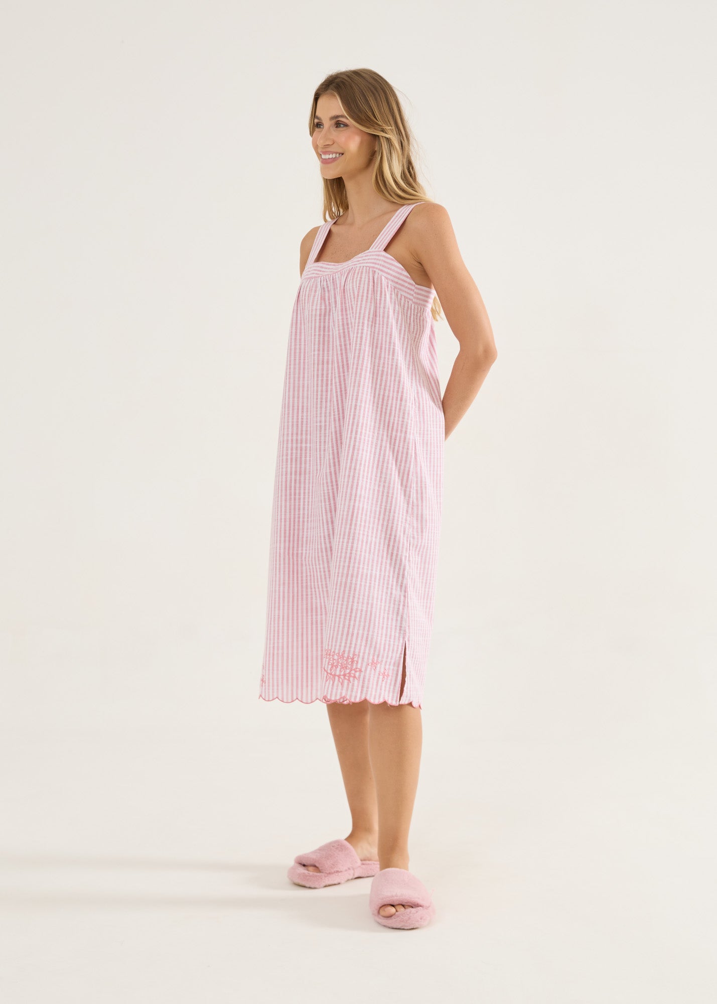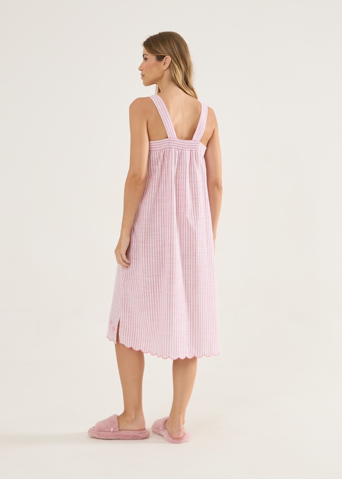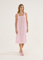 Camisola feminina, comprimento abaixo do joelho, alças largas, decote reto com leve franzido e modelagem soltinha. Lastex nas costas para proporcionar mais liberdade de movimento. Surpreenda-se com um lindo bordado exclusivo na barra.
