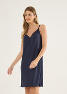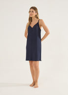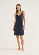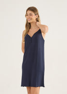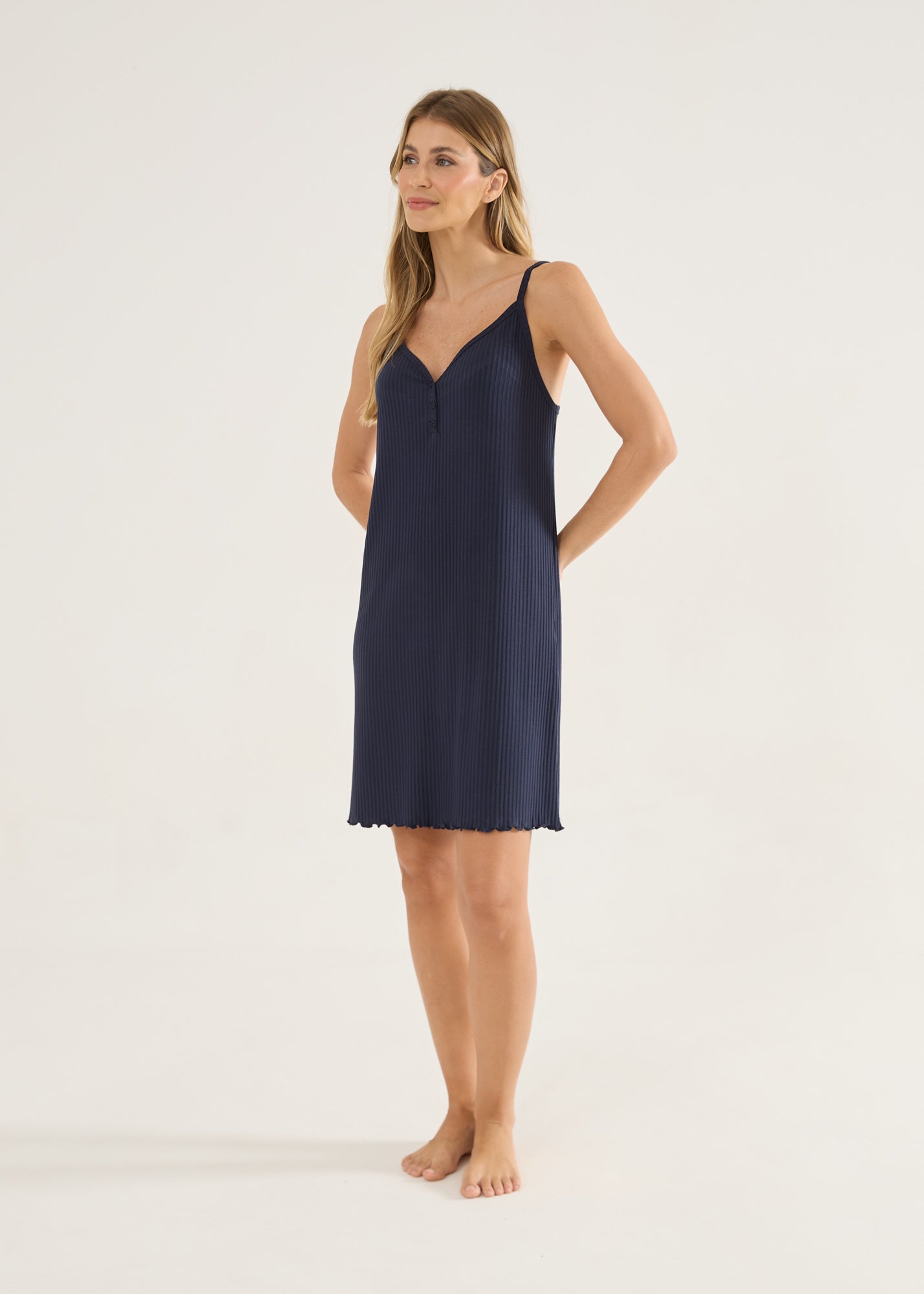 Camisola feminina de alças finas e delicadas, em malha canelada com fio da viscose. Detalhe botões no decote e barra com fru-fru. Comprimento acima do joelho. Leve, confortável, gostosa de usar, não marca. Você vai querer uma de cada cor!