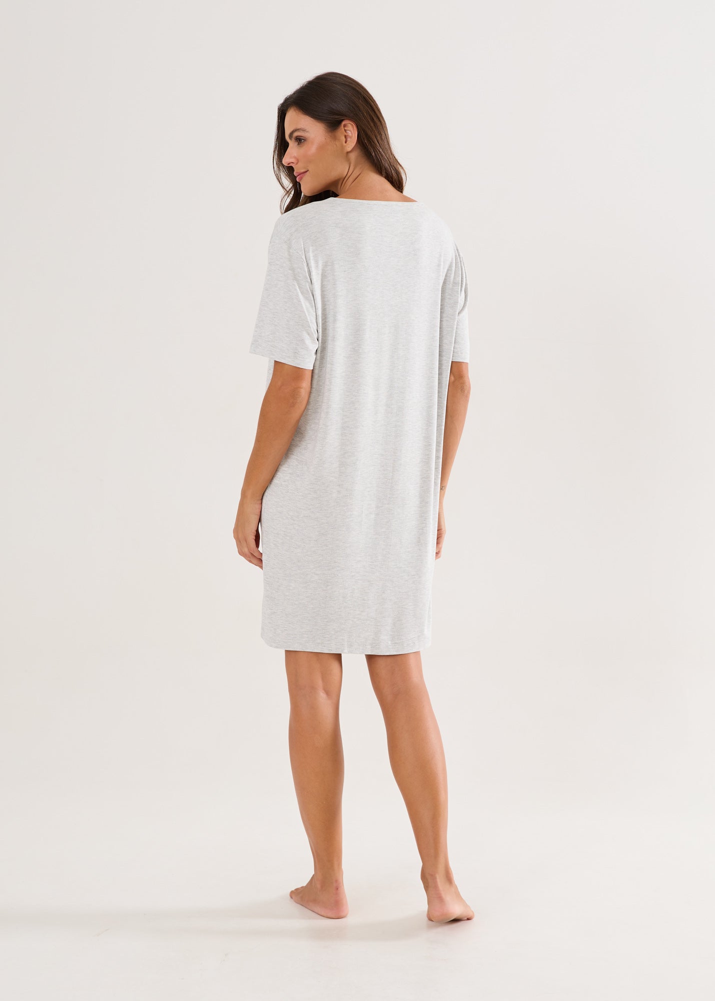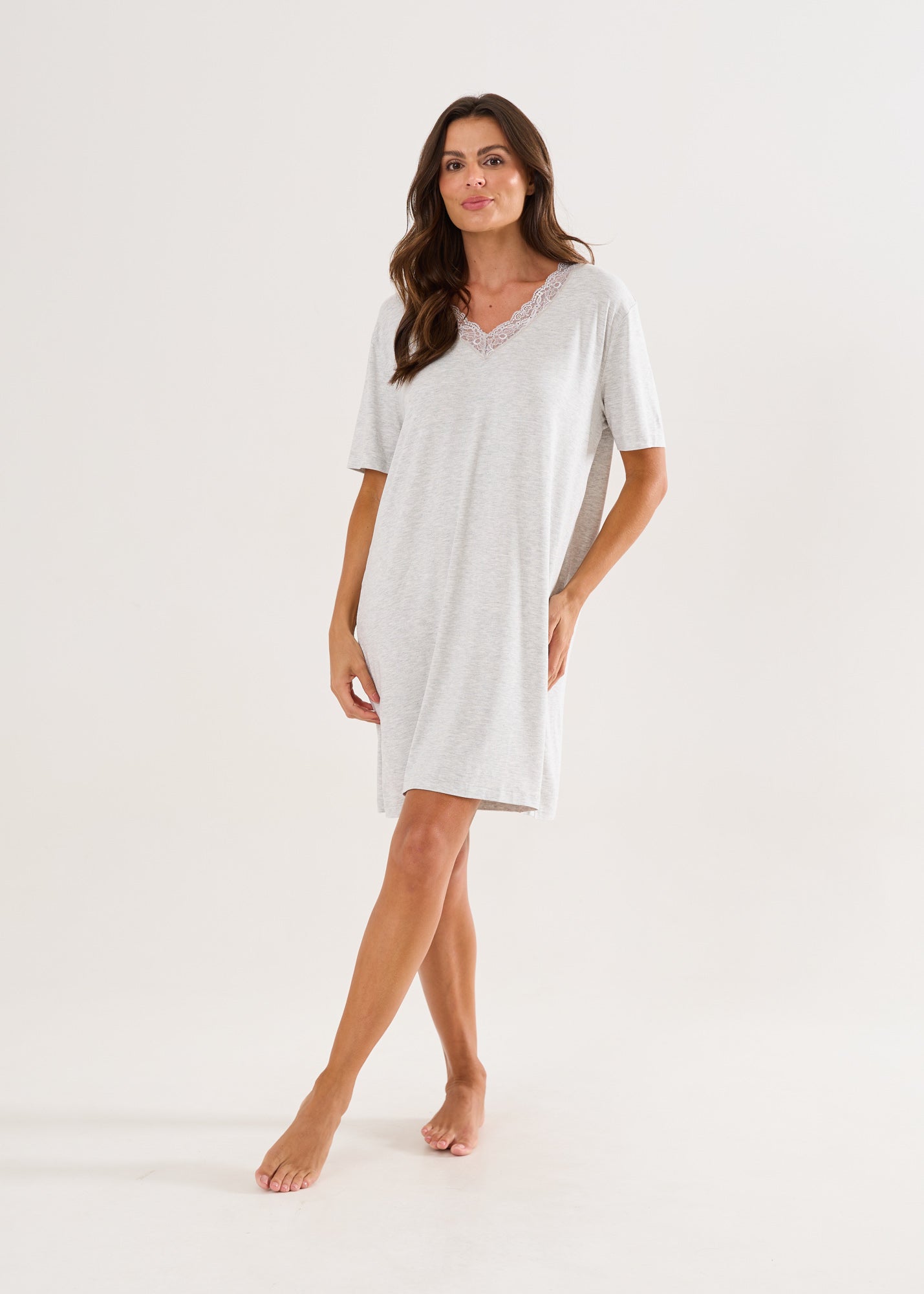 Camisola feminina, modelagem ampla e soltinha, com mangas, decote com detalhe em renda. A malha visco é confortável e leve, com toque muito macio, perfeita para qualquer estação do ano. Comprimento no joelho.