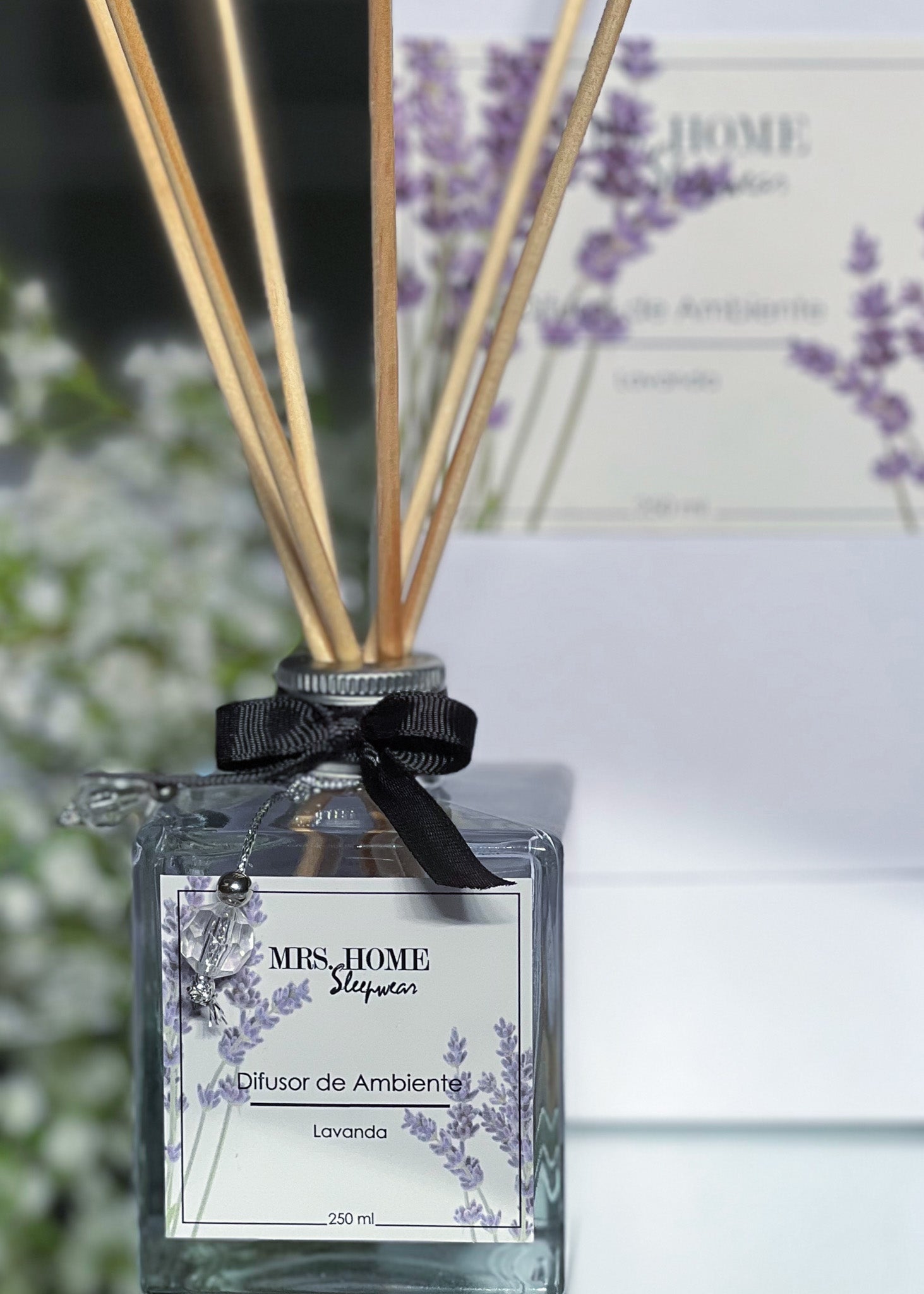 Uma linha completa de aromatizantes para casa e para a roupa com o perfume de lavanda, desenvolvido exclusivamente para a Mrs. Home. Difusor de ambiente, spray para roupas, sachês e room spray.
