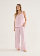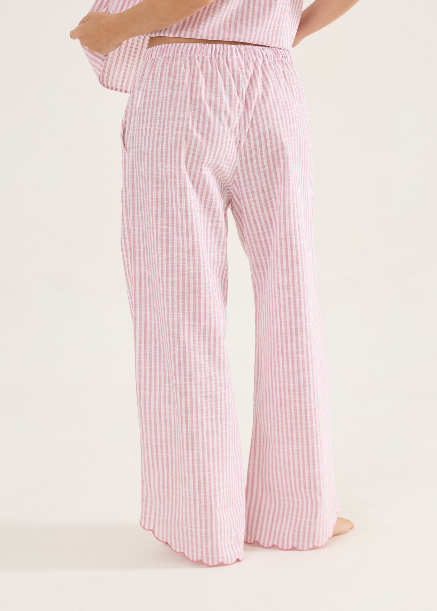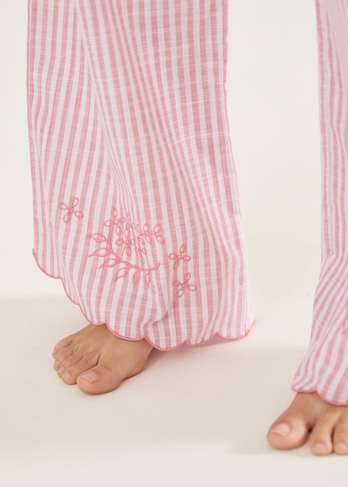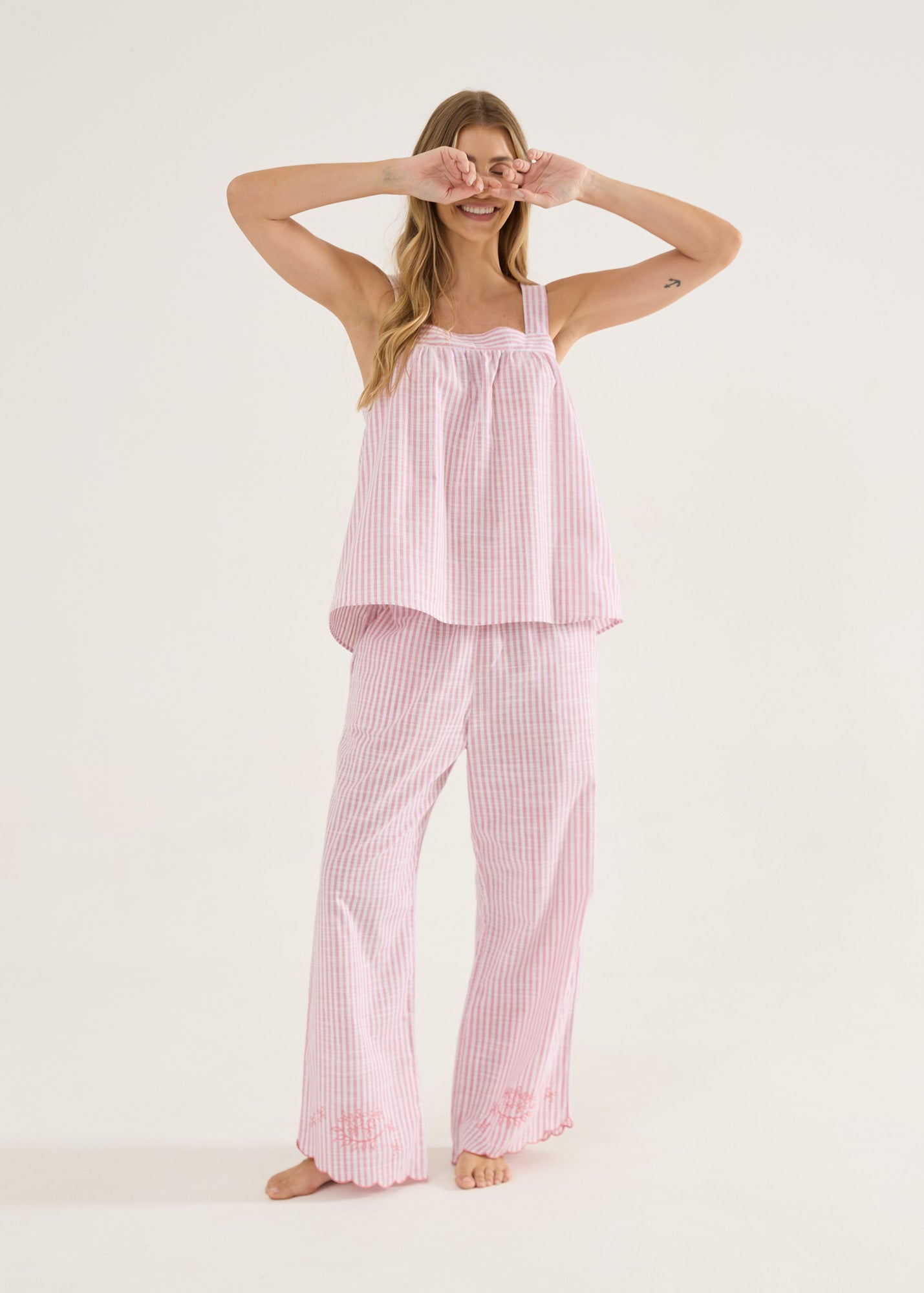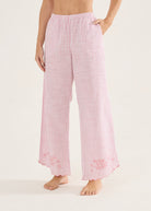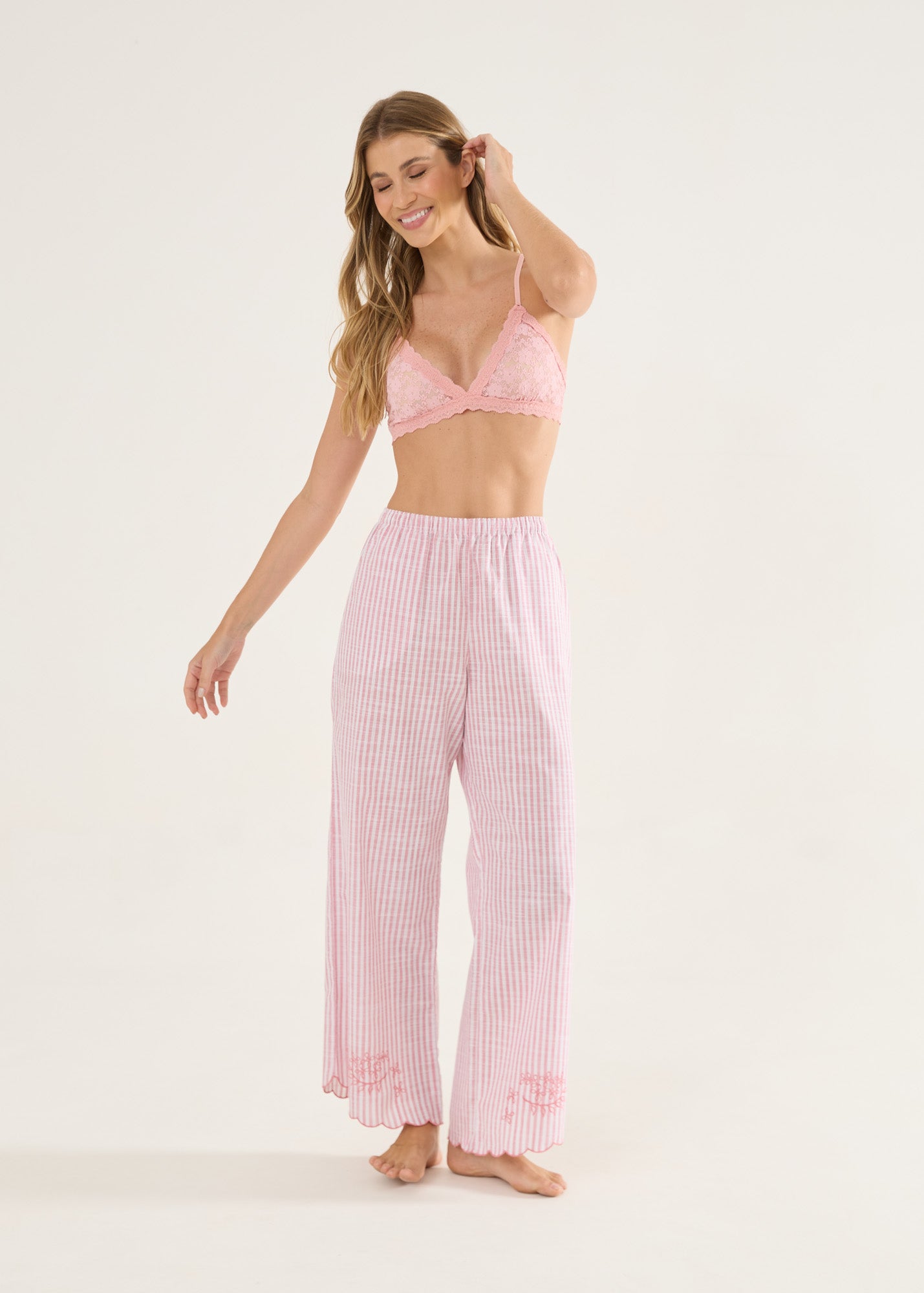 Calça avulsa feminina, com elástico na cintura para proporcionar mais liberdade de movimento. Bolsos laterais. Bordado exclusivo para Mrs. Home na barra da calça dão o ar romântico e sofisticado à peça. Combine sua calça avulsa com uma lingerie, uma blusa branca ou com a blusa do pijama curto da mesma coleção, como sugerimos nas fotos, e tenha vários looks de pijamas diferentes!