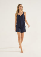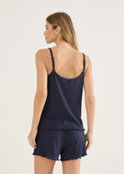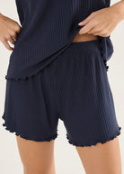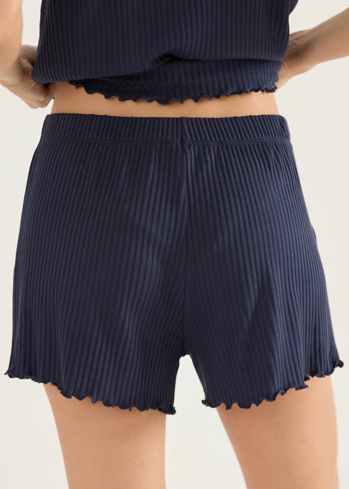 Short avulso feminino, em malha canelada com fio da viscose. Elástico na cintura e barra com fru-fru. Leve, confortável, gostoso de usar, não marca. Combine o short avulso com as blusas de alças e de mangas da mesma coleção, como sugerimos nas fotos. Você vai querer uma de cada cor!