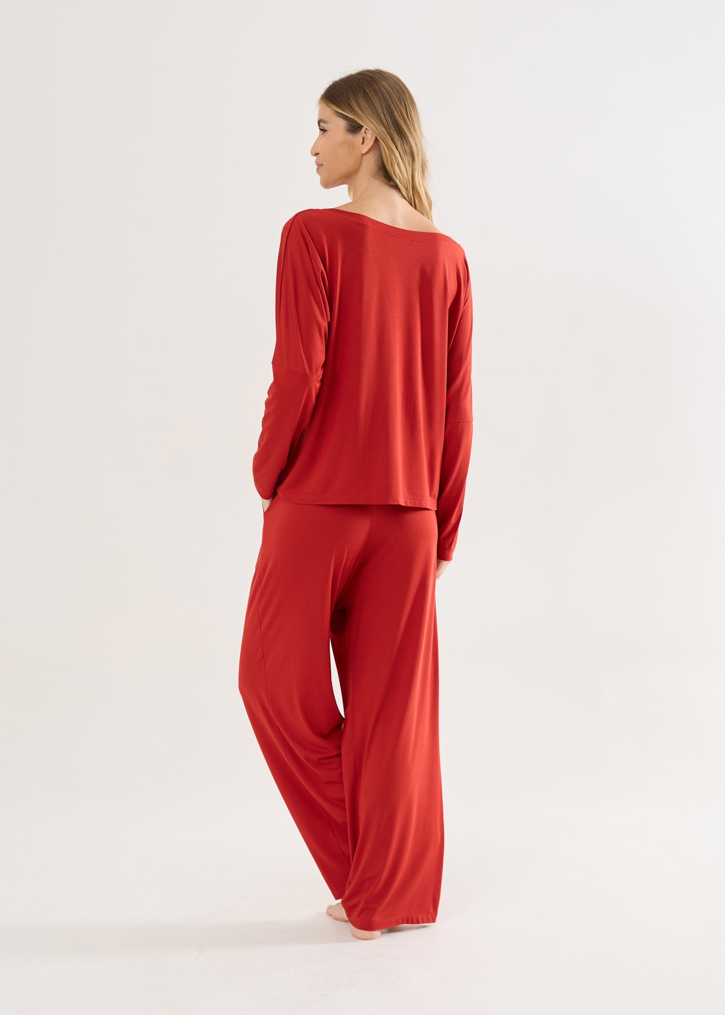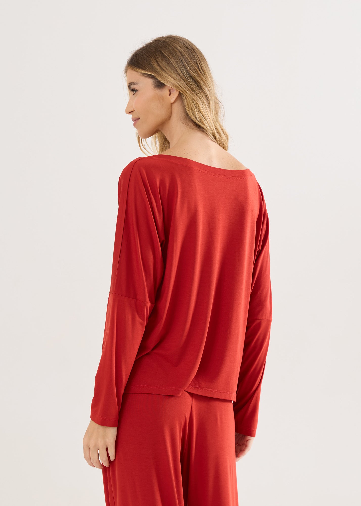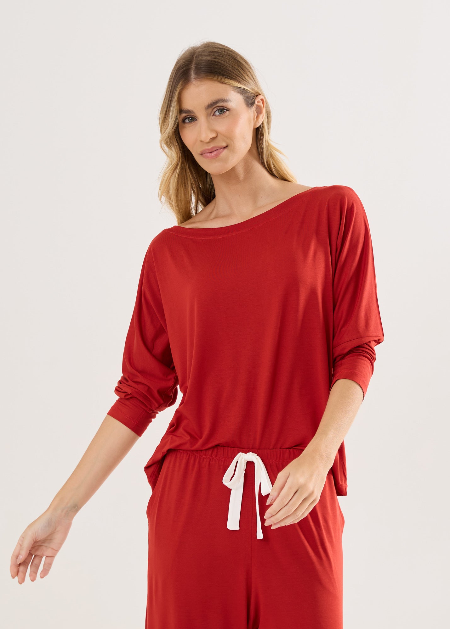 Camiseta avulsa feminina, modelo mangas longas, estilo homewear com o toque inigualável da malha modal. Camiseta com mangas longas e gola v. Item essencial para você curtir o conforto em casa ou passear por aí com o cachorrinho.
