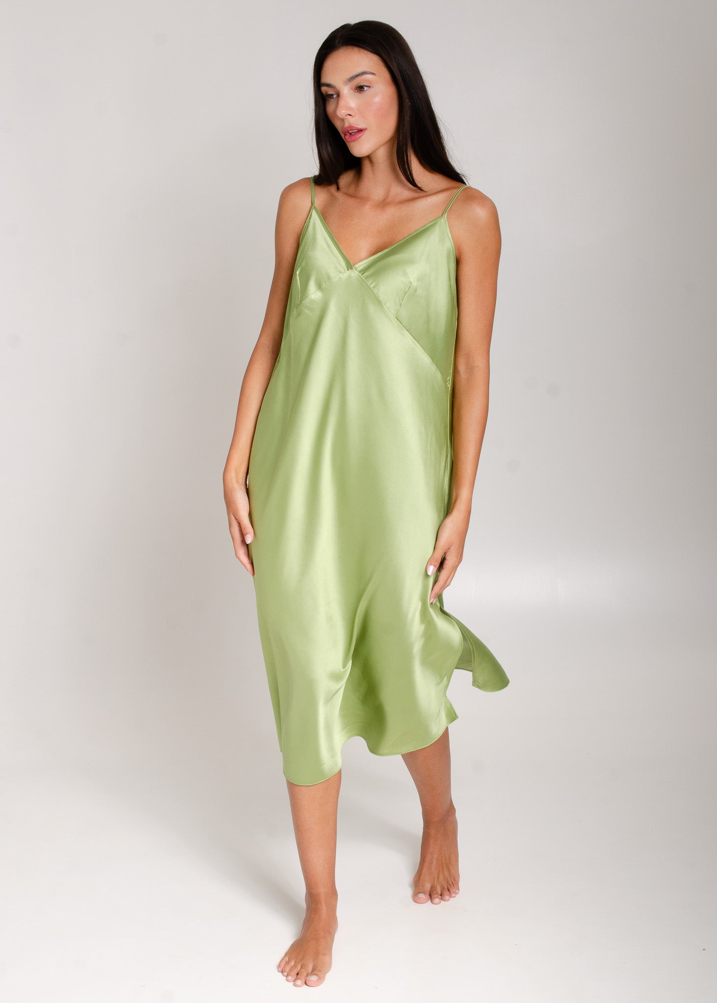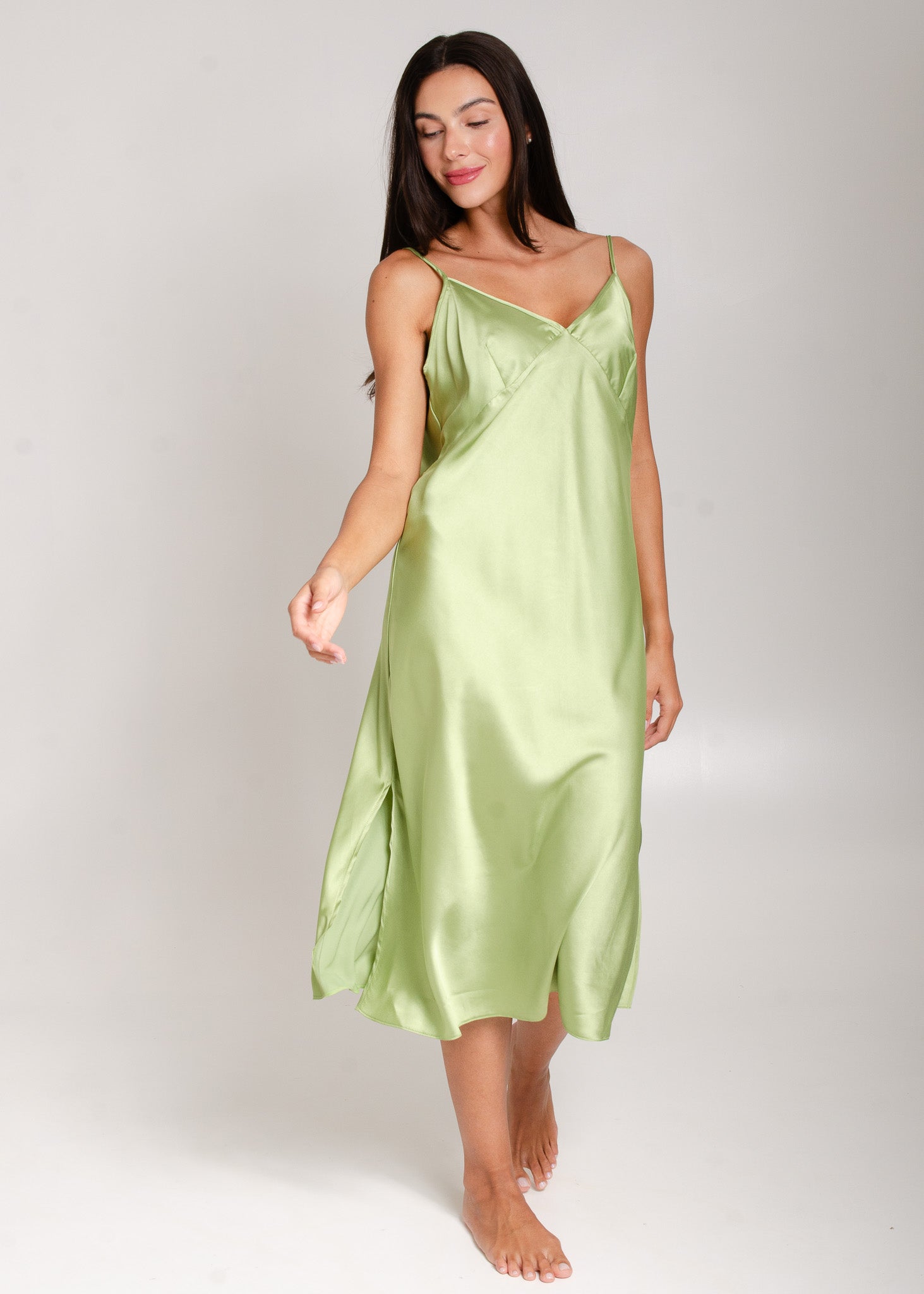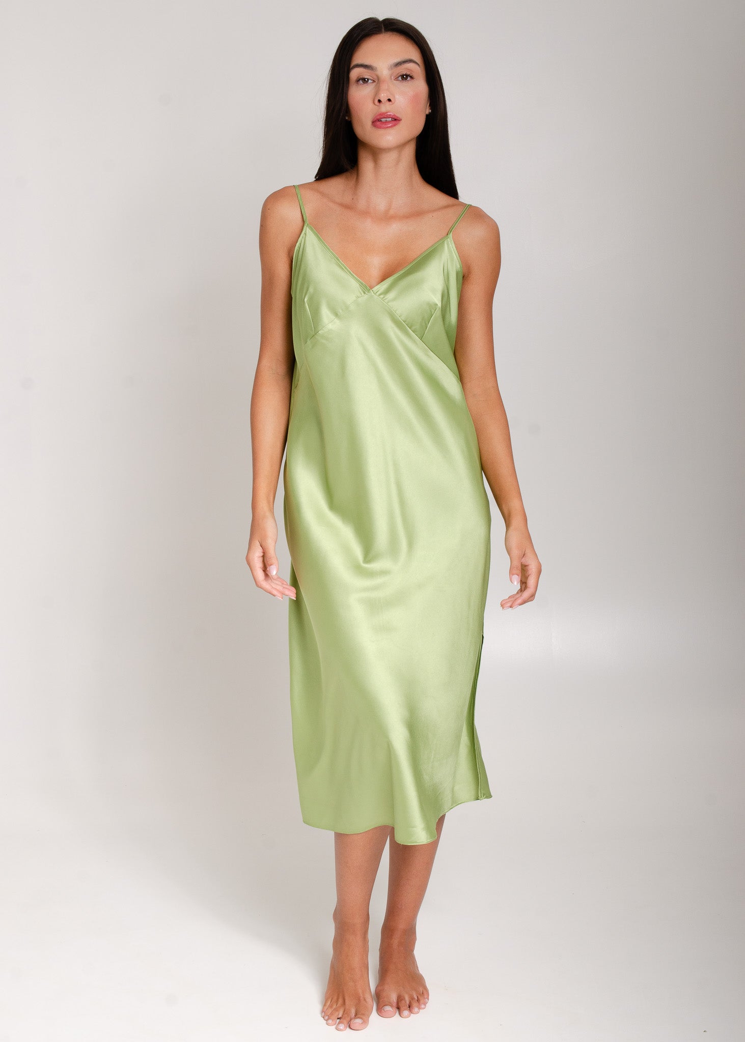 A camisola de cetim pulou da gaveta de pijamas para os looks mais ousados das fashionistas! Com comprimento midi, modelagem sequinha e alças finas, a camisola de luxo, ou slip dress eh o item must-have da estação! Super confortável e elegante! É para ter uma de cada cor!