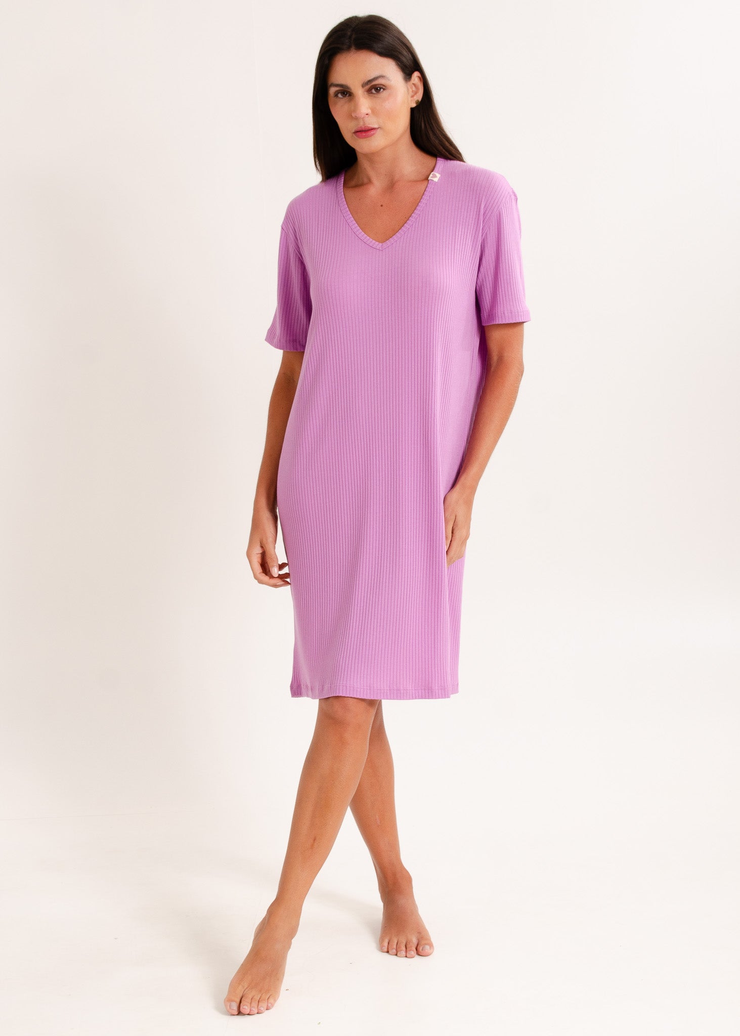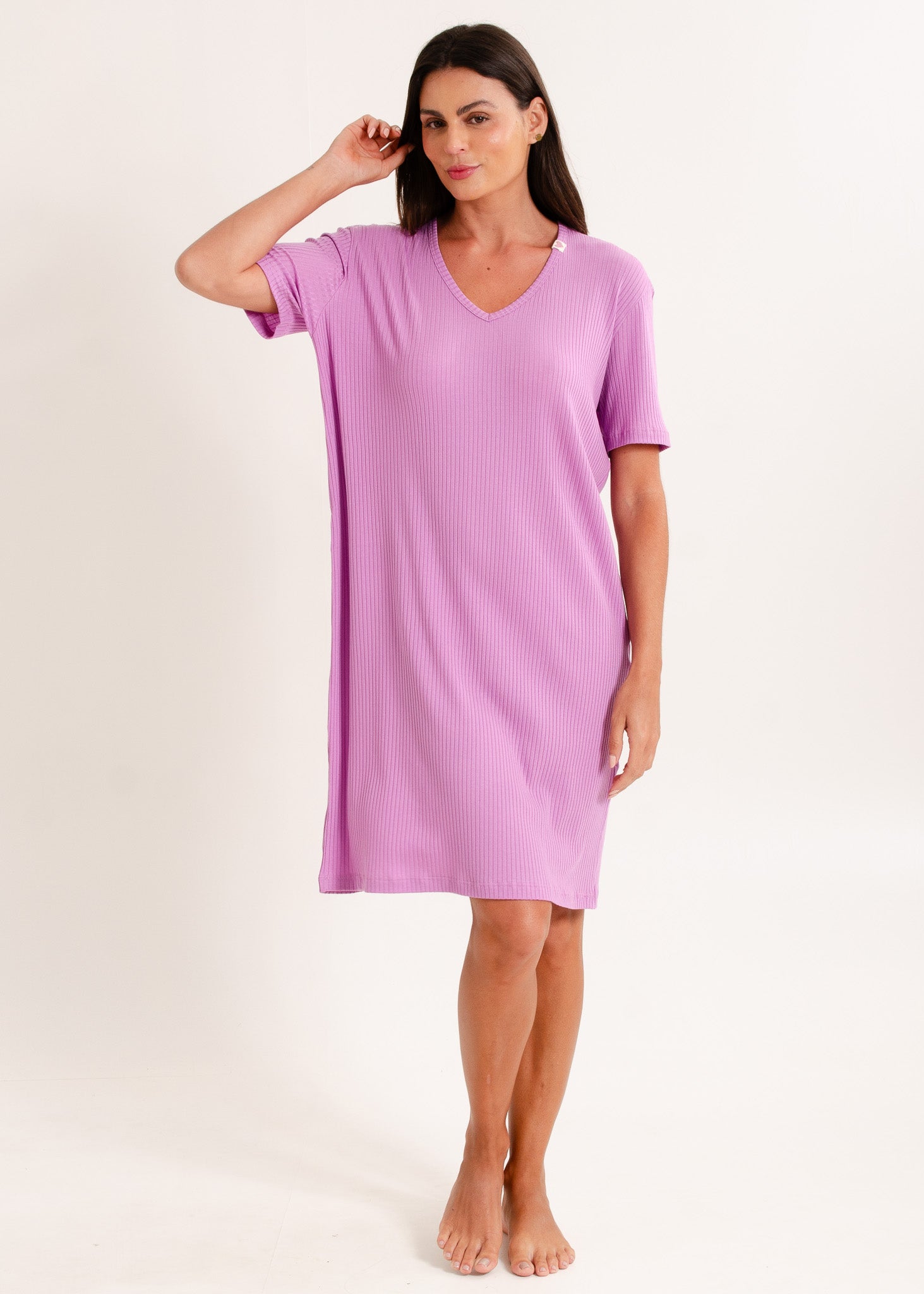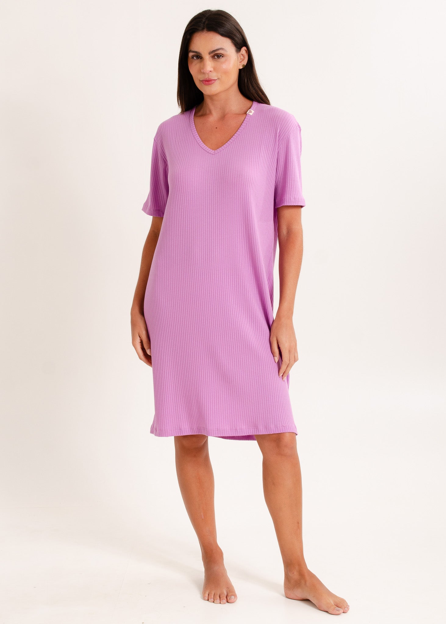 Camisola feminina com mangas curtas, comprimento no joelho, gola V com delicado detalhe. Com toque geladinho do liocel e modelagem soltinha você vai literalmente se sentir no céu!