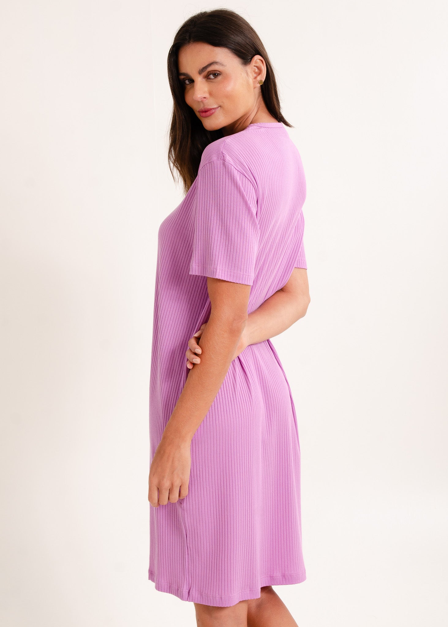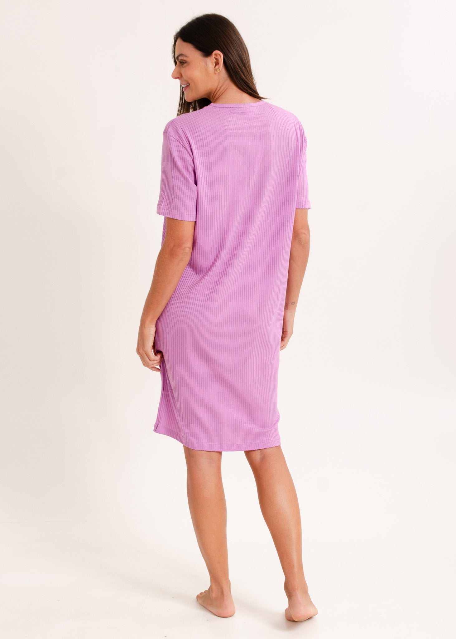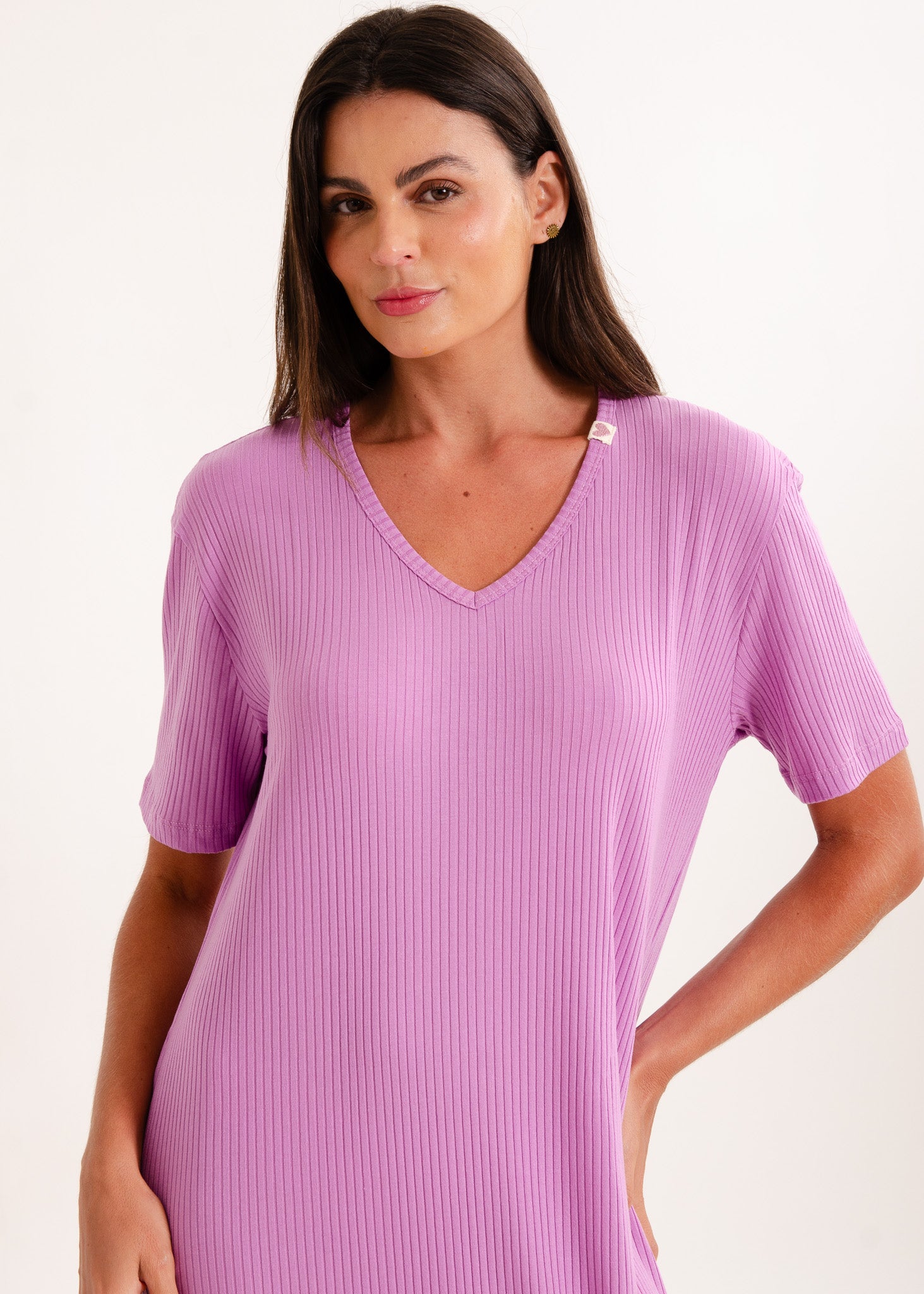 Camisola feminina com mangas curtas, comprimento no joelho, gola V com delicado detalhe. Com toque geladinho do liocel e modelagem soltinha você vai literalmente se sentir no céu!