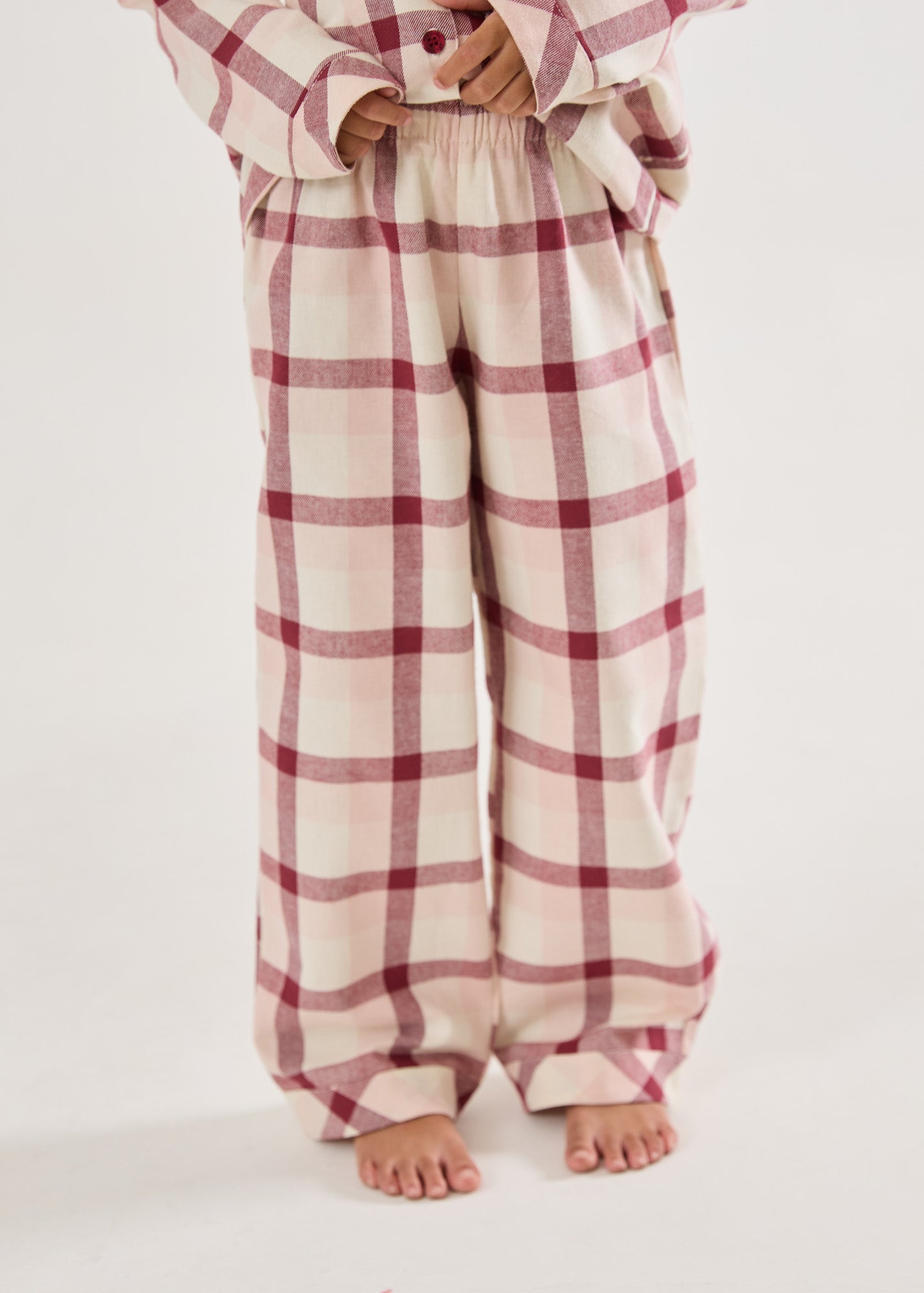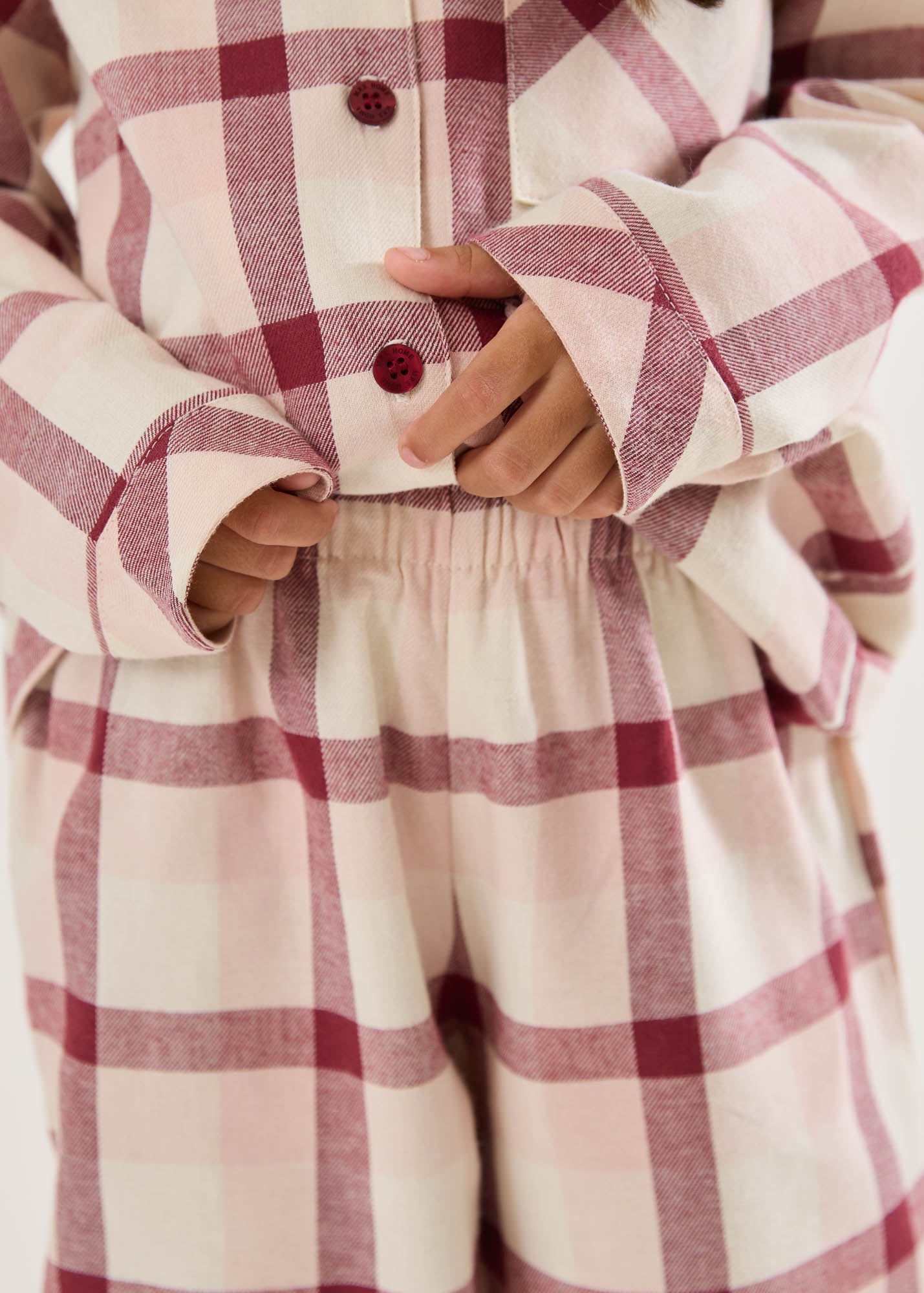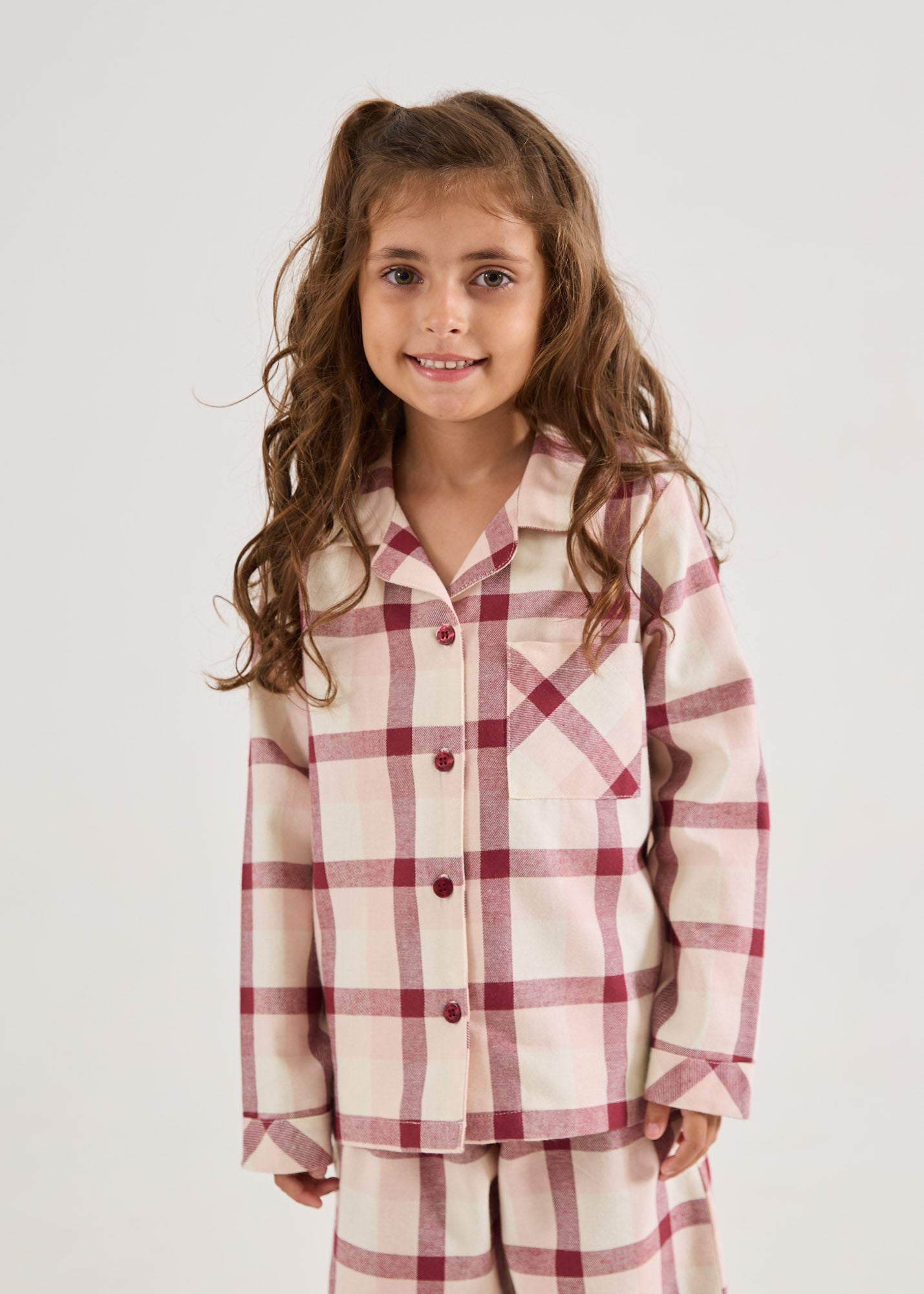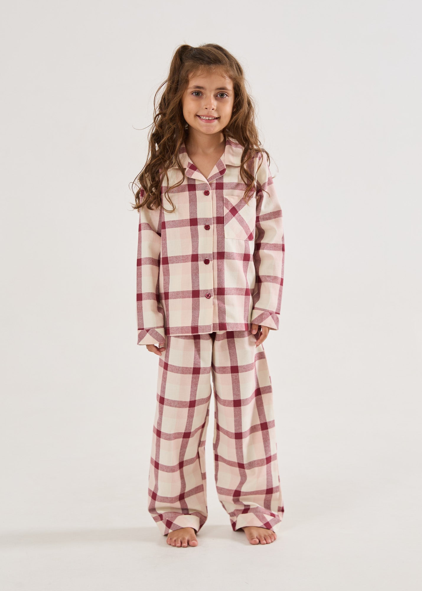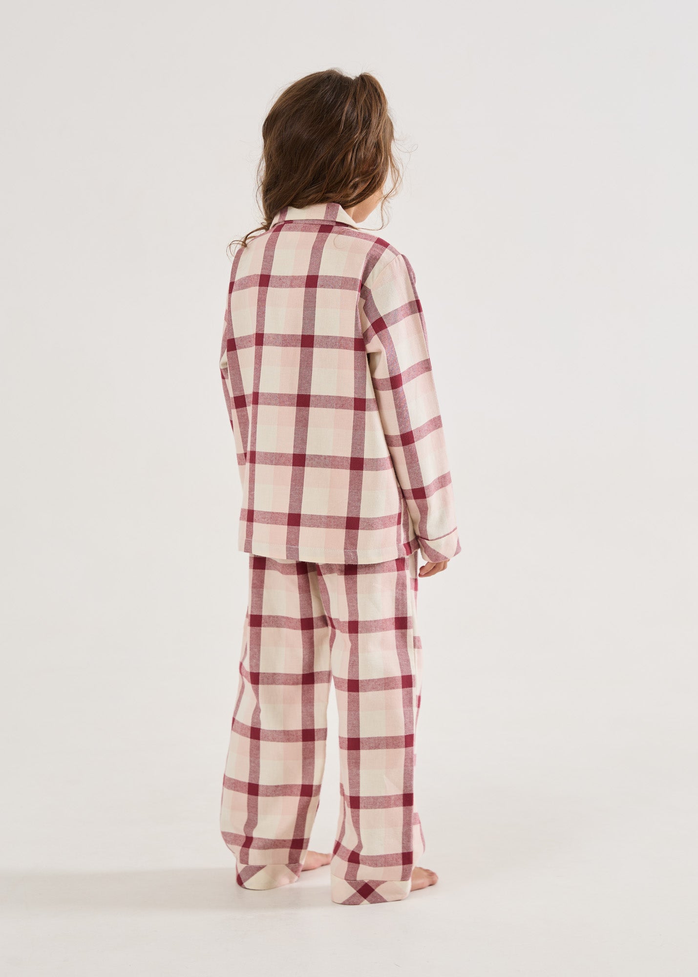 Pijama longo infantil feminino, em flanela xadrez 100% algodão. Modelo de calça com elástico na cintura, blusa de mangas longas com botões personalizados. Além de ser super fofo para as meninas, esse pijama é perfeito para os dias frios do inverno. Sua família merece esse carinho!