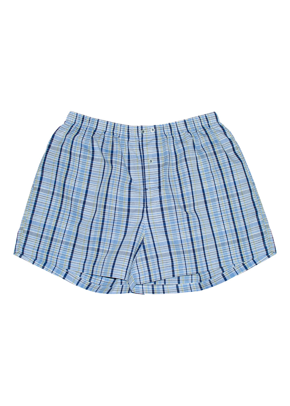Boxer xadrez em tecido 100% algodão fio 80, em tons de azul. Elástico na cintura.