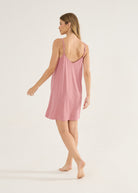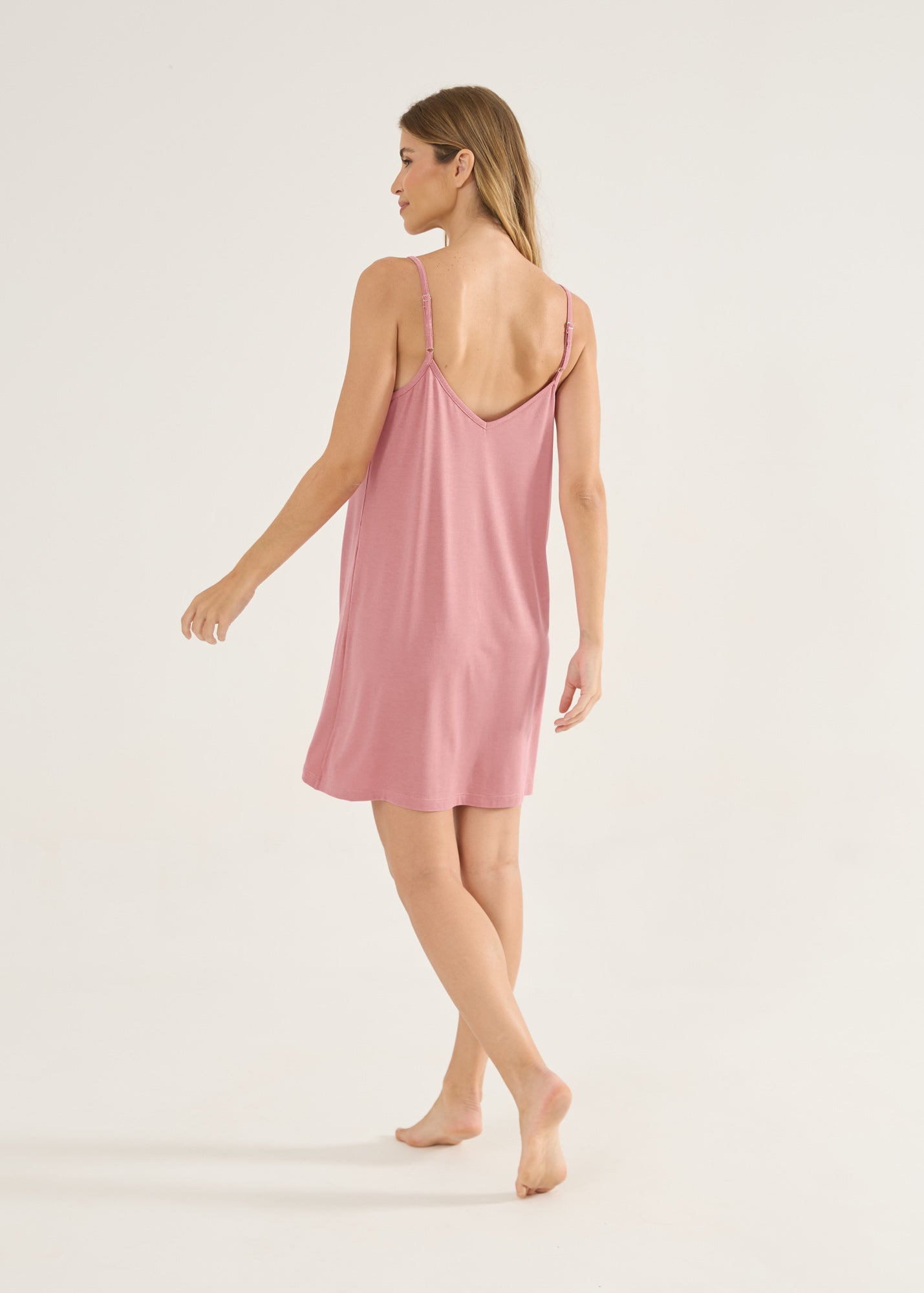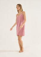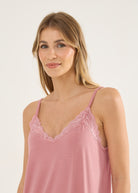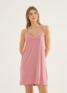 Camisola feminina modelo alças, modelagem soltinha, decote com detalhe em renda no decote. Comprimento acima do joelho.