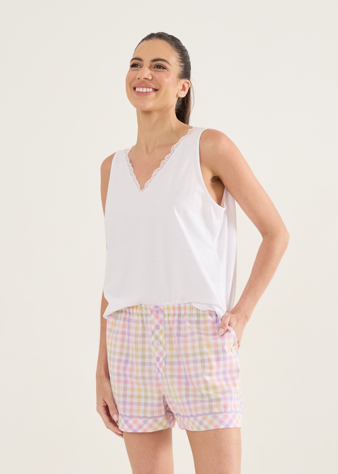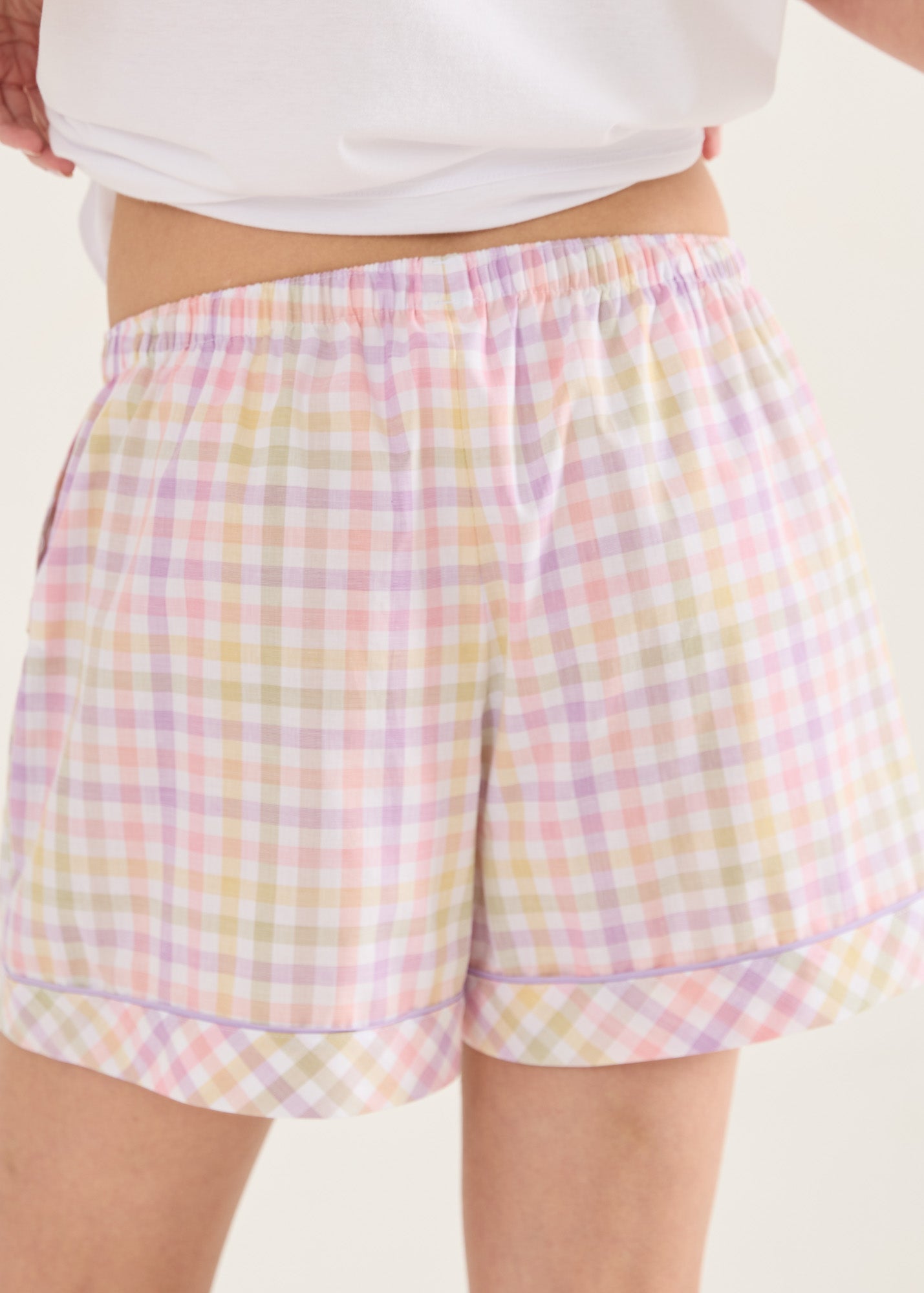 Short avulso feminino, em tecido xadrez, elástico na cintura, bolsos laterais. Combine seu short avulso com blusas brancas ou coloridas, e crie looks de pijamas incríveis!