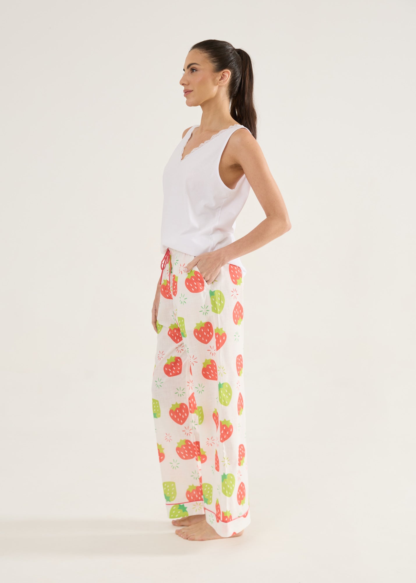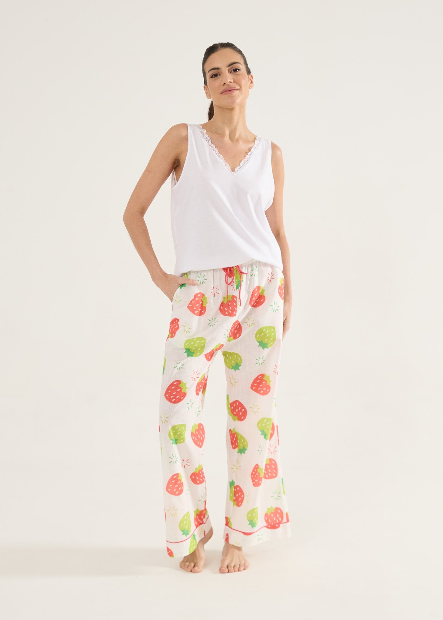 Calça avulsa feminina, em tecido 100% algodão, elástico na cintura, bolsos laterais e detalhe na barra. Combine sua calça com blusas branca ou coloridas, ou faça o match com o pijama botões, como sugerimos nas fotos. Fica lindooo!