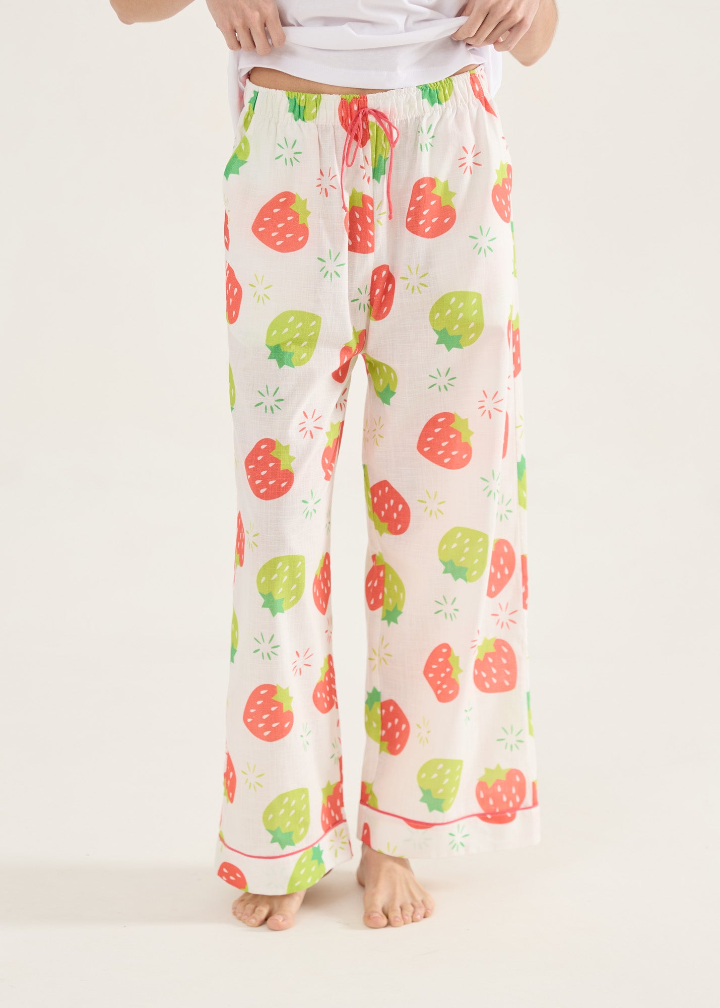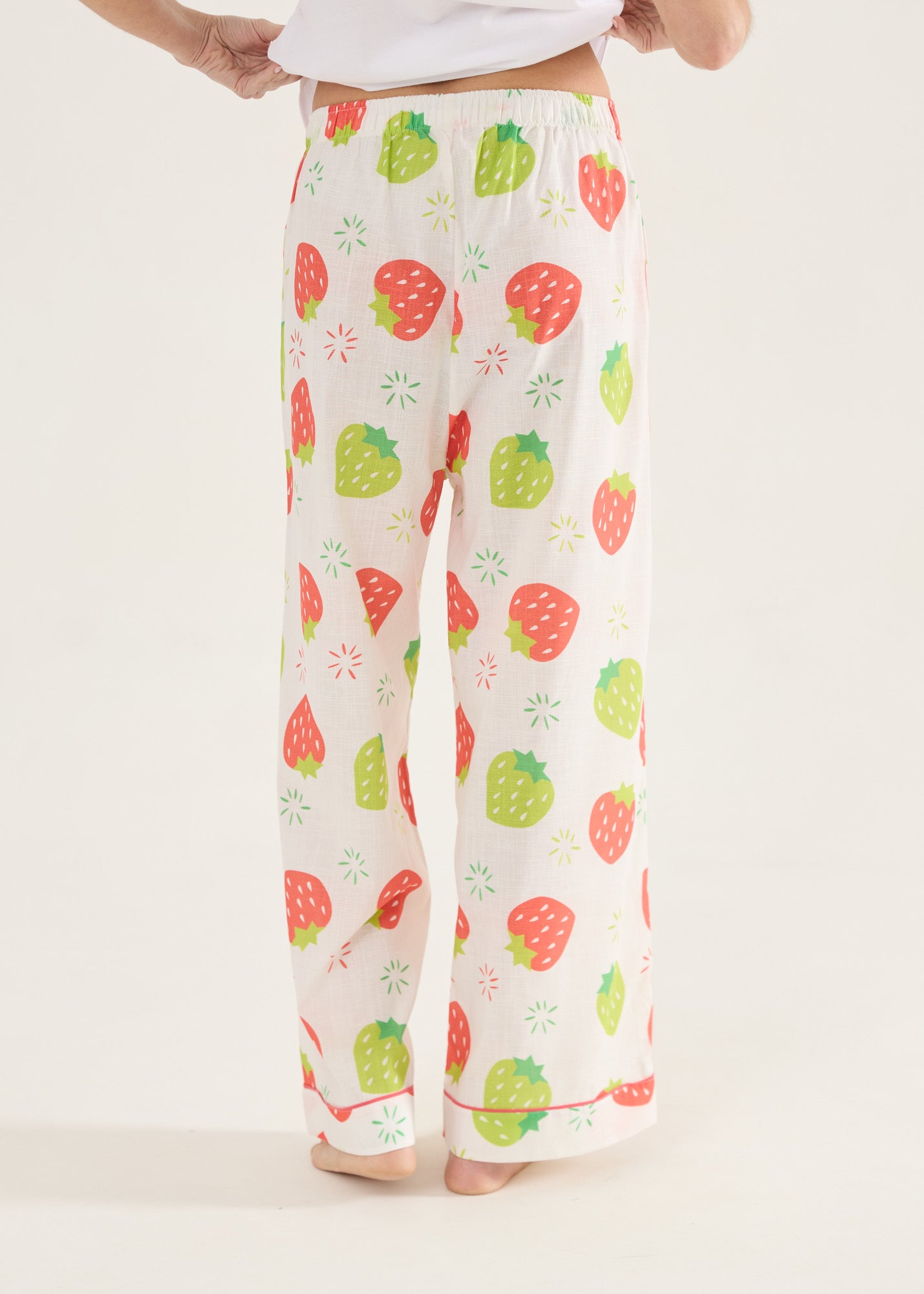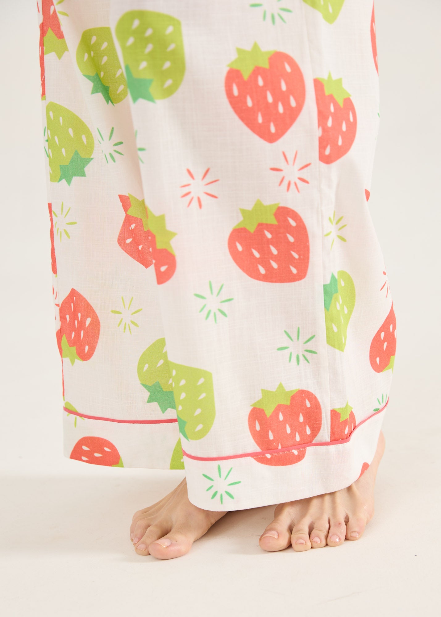 Em tecido 100% algodão e estampa exclusiva, a Coleção Morangos é divertida, linda e vibrante. Perfeita para você curtir suas noites de sono com estilo super cool ou para aquele café da manhã instagramável no jardim.