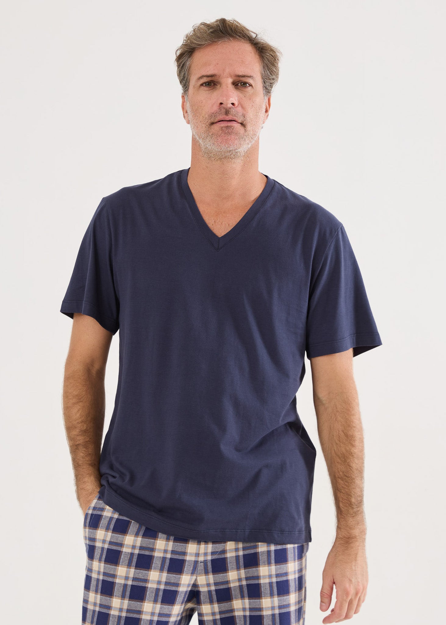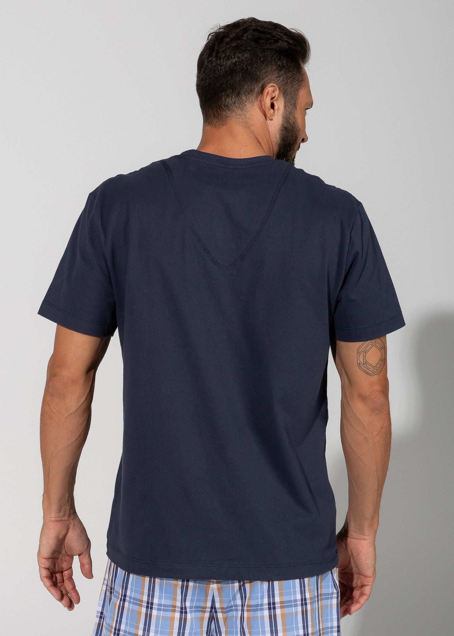 Camiseta básica masculina, em malha 100% algodão, modelagem comfort fit, gola V, na cor azul marinho, para você combinar com nossas boxers, calças avulsas ou pijamas. Um dica legal é ter várias cores e ir combinando seu pijama com diversas cores de camisetas. Você pode ter vários looks incríveis com um único pijama! Surpreenda-se com o toque maravilhoso da malha ultrasoft!