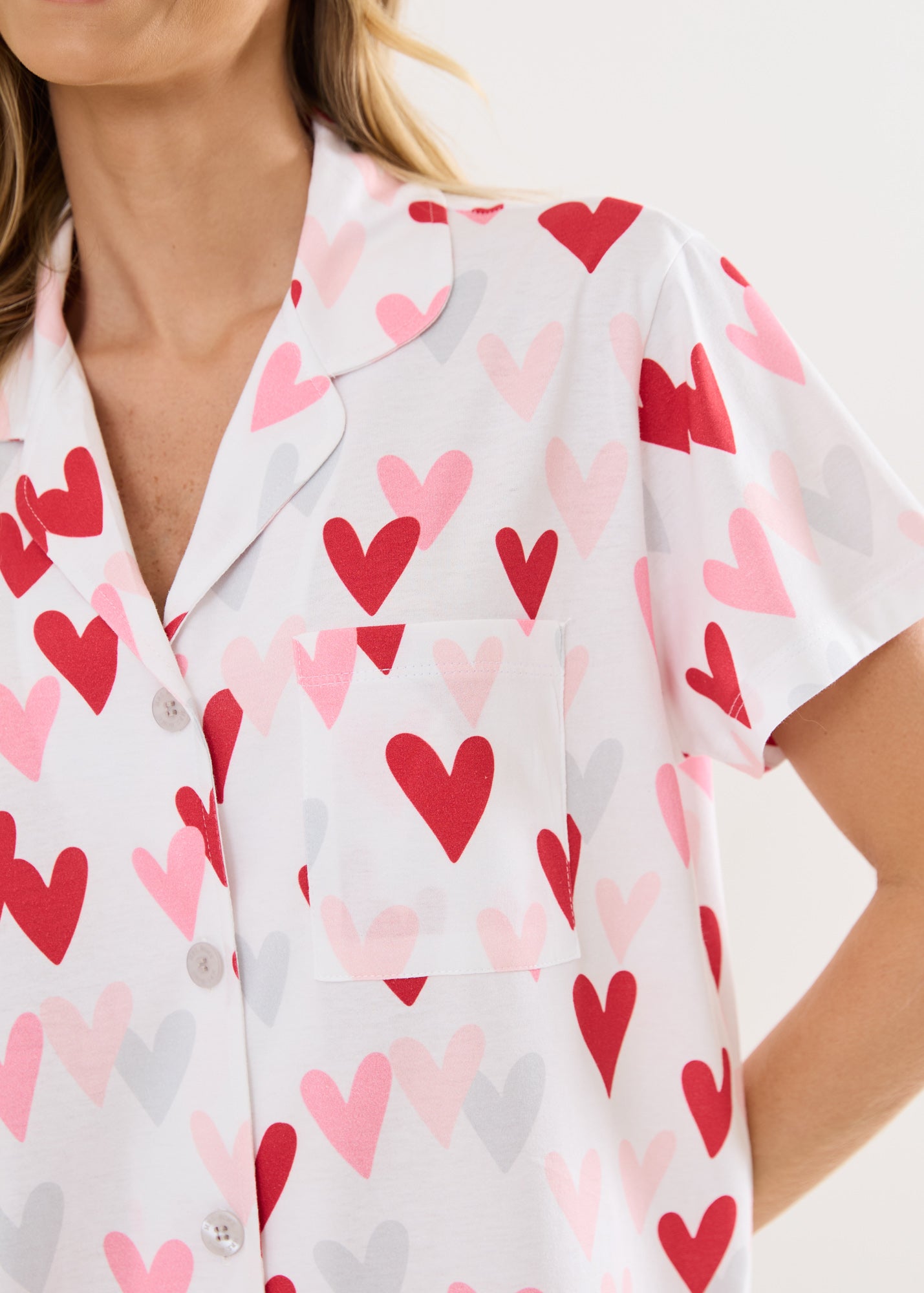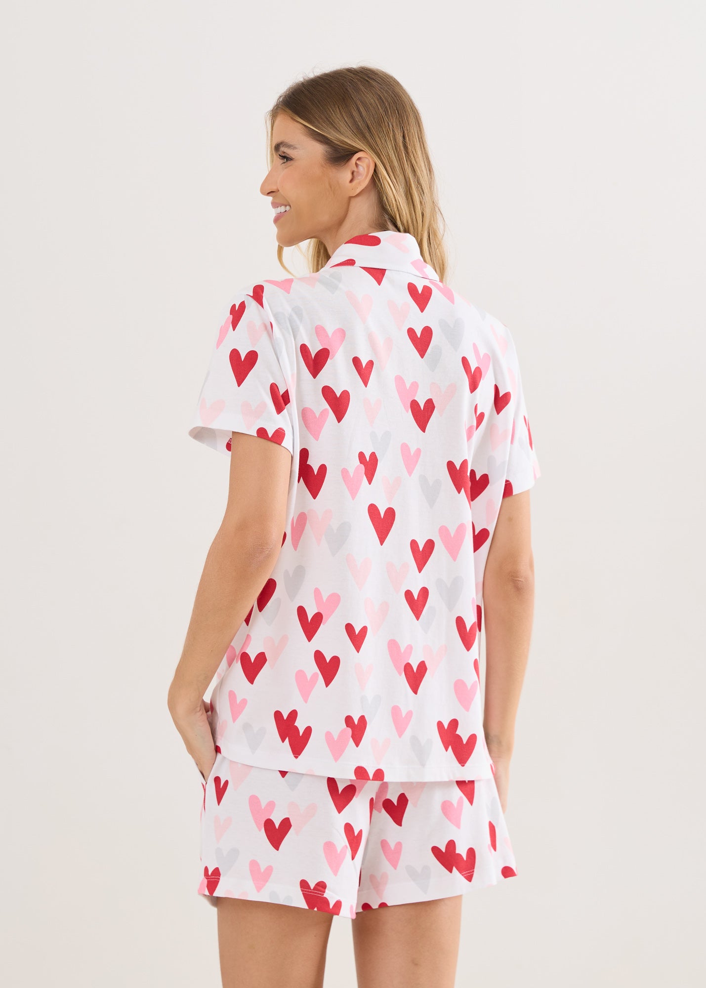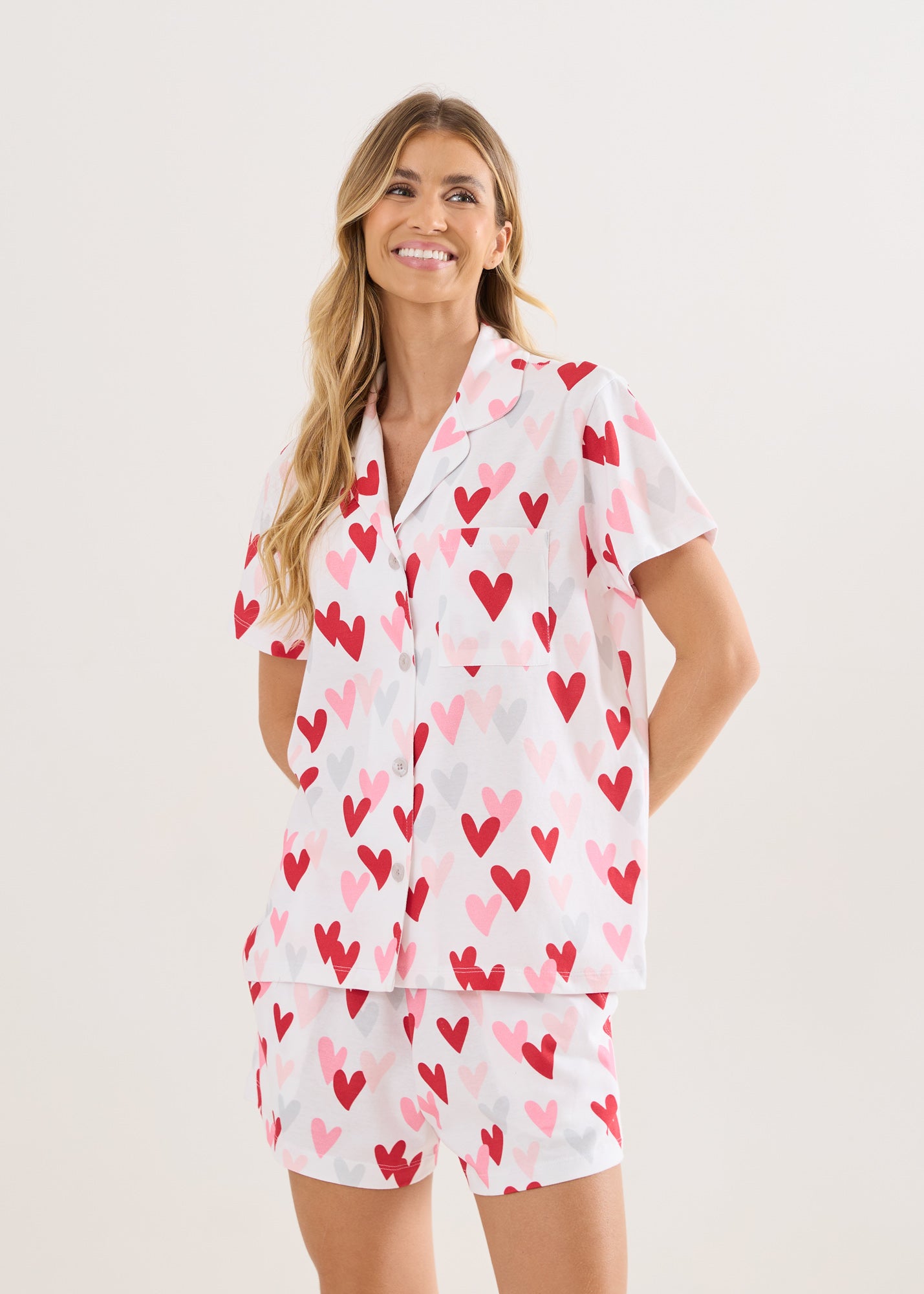 Pijama curto feminino em malha 100% algodão. Pijama curto, modelo americano com modelagem bem confortável, botões personalizados, short e blusa de mangas curtas. Short com elástico na cintura e bolsos laterais.