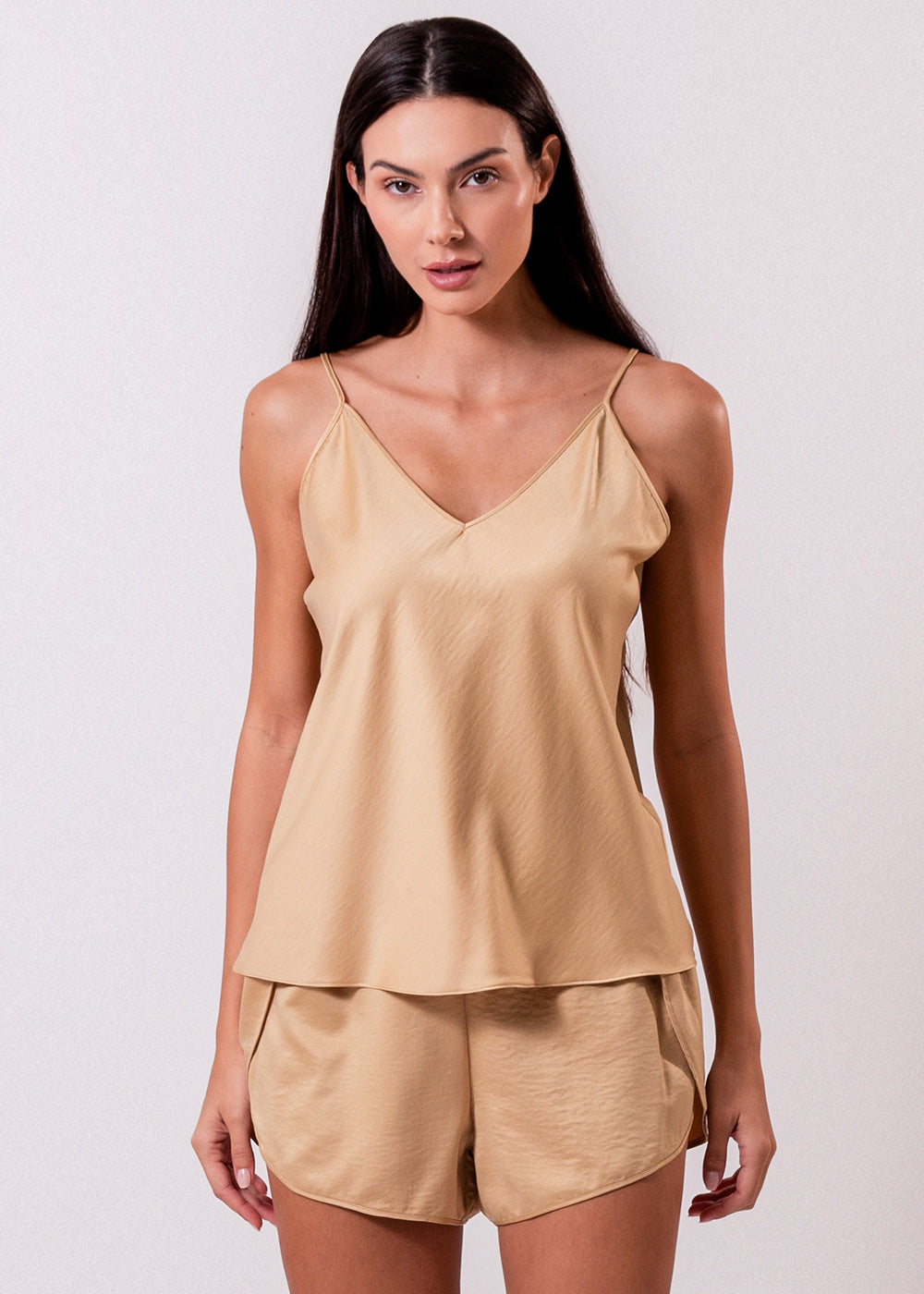 O short em cetim, é leve, com caimento delicado, confortável para dormir. A modelagem pétala fica bem soltinha, dá um ar sensual, comprimento curtinho, com laterais arredondadas. Elástico na cintura bem delicado.
