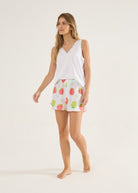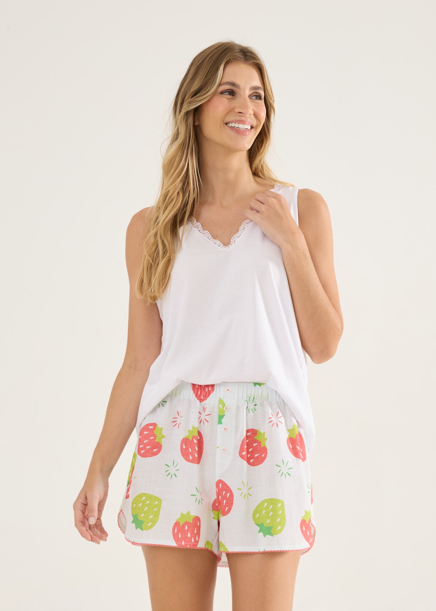 Short avulso feminino, em tecidos 100% algodão, elástico na cintura, barra arredondada com detalhe bordado. Combine seu short avulso com blusas brancas ou coloridas! Monte seu pijama do seu jeito!
