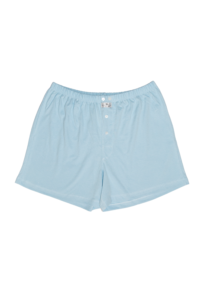 Boxer adulto masculina em malha na cor azul claro, em malha ultra soft que tem um toque maravilhoso e proporciona muito conforto! Acabamento de elástico no cós e braguilha falsa com botões.