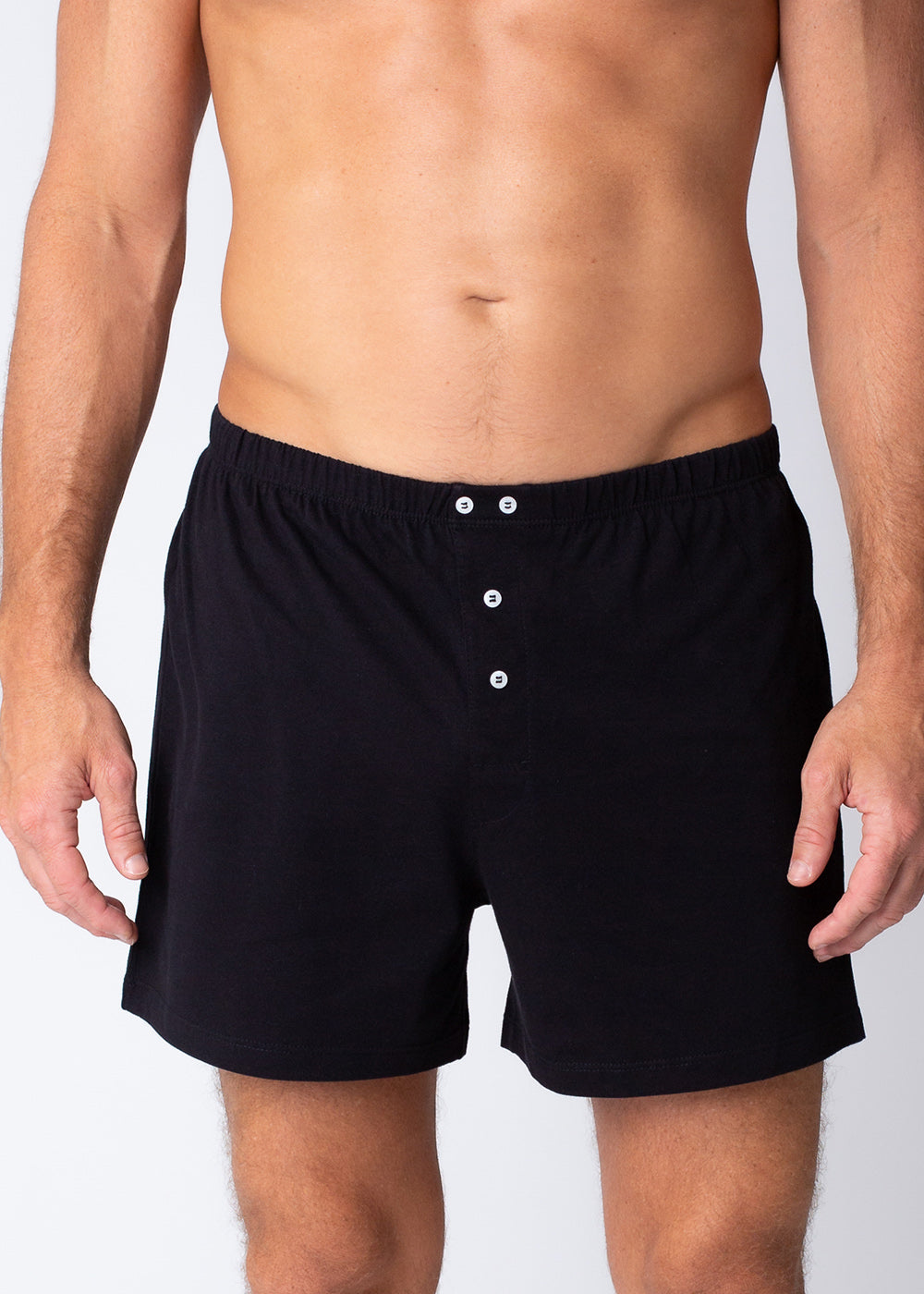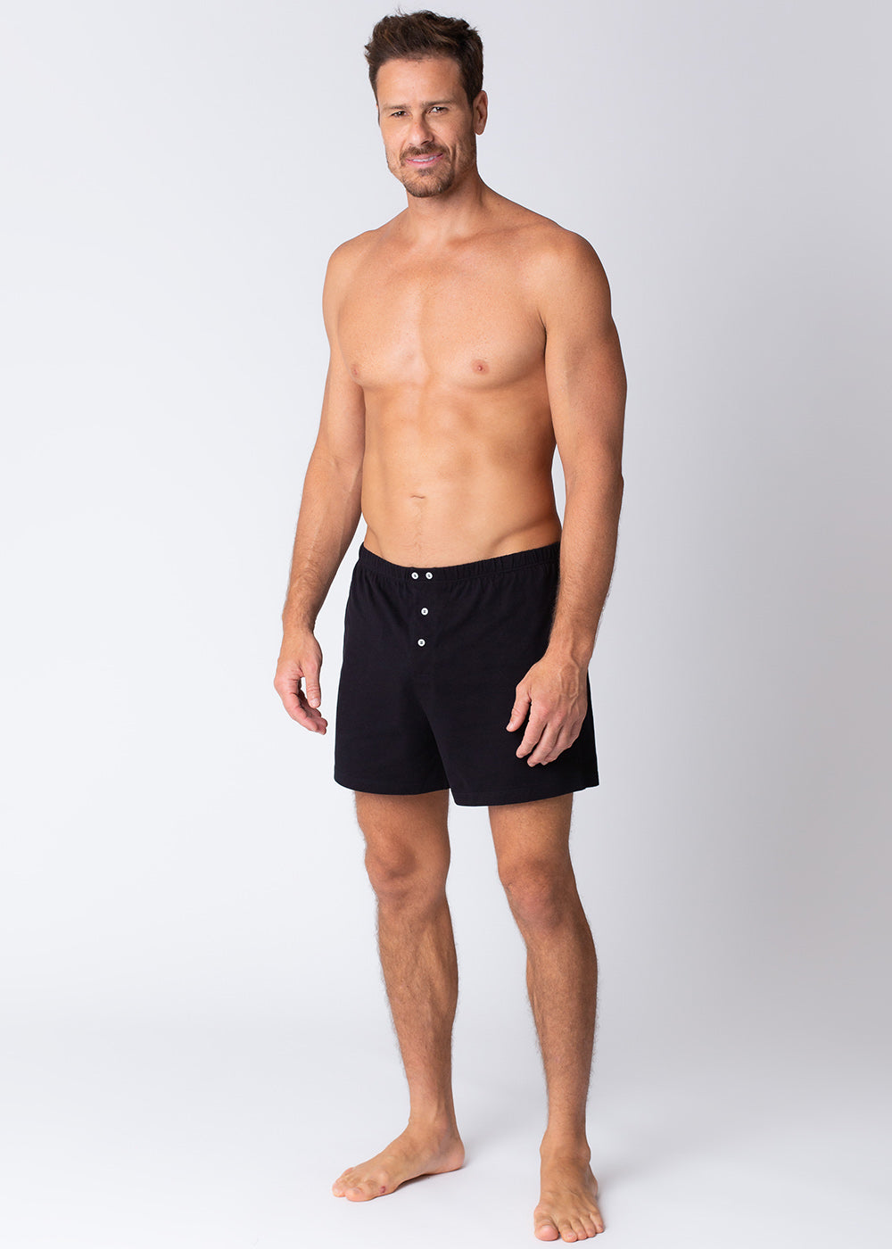 Boxer adulto masculina em malha na cor preta em malha ultra soft que tem um toque maravilhoso e proporciona muito conforto! Acabamento de elástico no cós e braguilha falsa com botões.