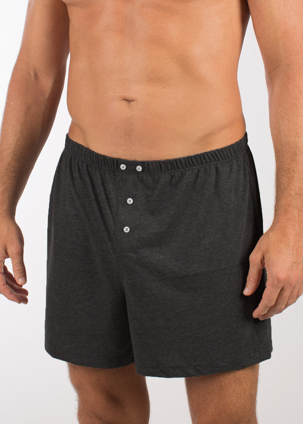 Boxer adulto masculina em malha 100% algodão na cor grafite. A malha ultra soft tem um toque maravilhoso e proporciona muito conforto! Acabamento de elástico no cós e braguilha com botões.