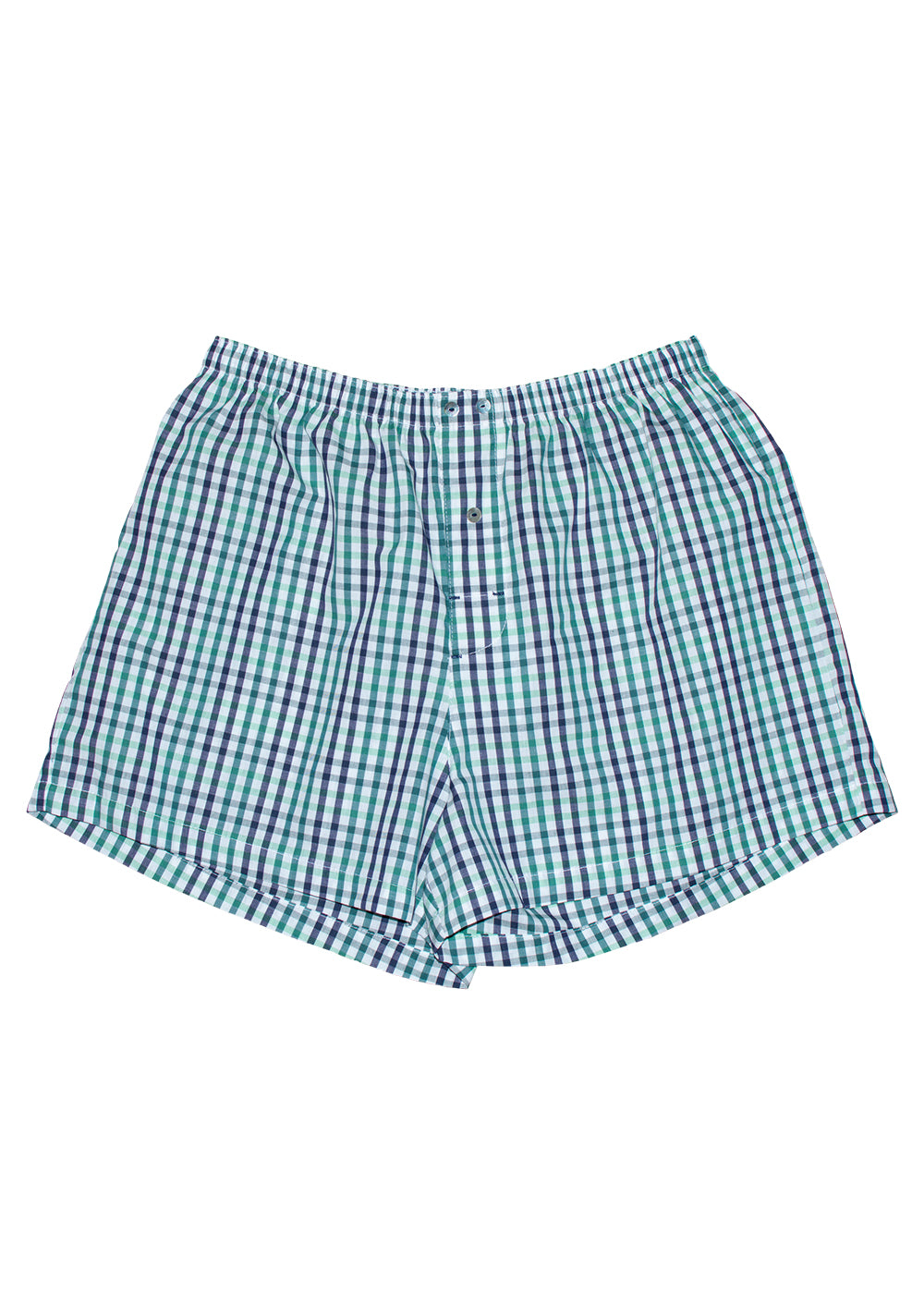 Boxer xadrez em tecido 100% algodão fio 80, em tons de azul marinho e verde. Elástico na cintura.