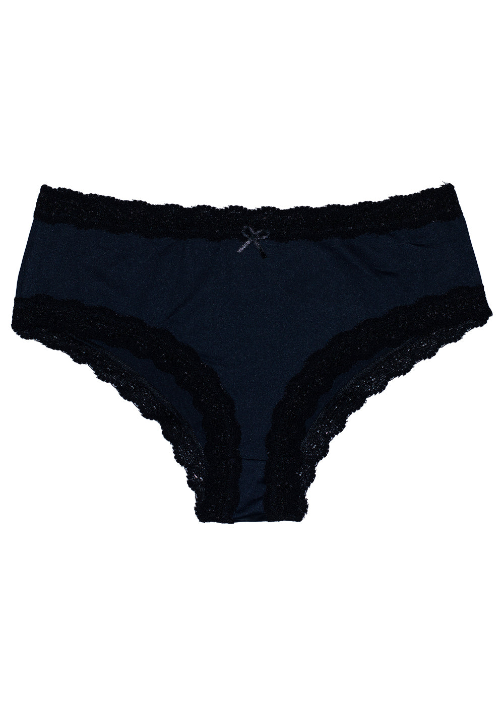 Caleçon em microfibra com aplicação de renda no mesmo tom.