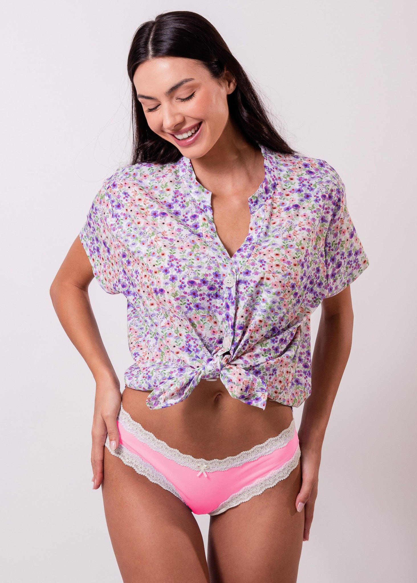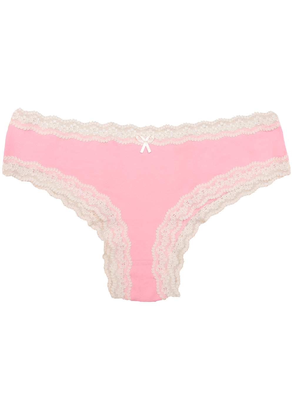 Caleçon em microfibra na cor rosa médio com aplicação de renda na cor off white.
