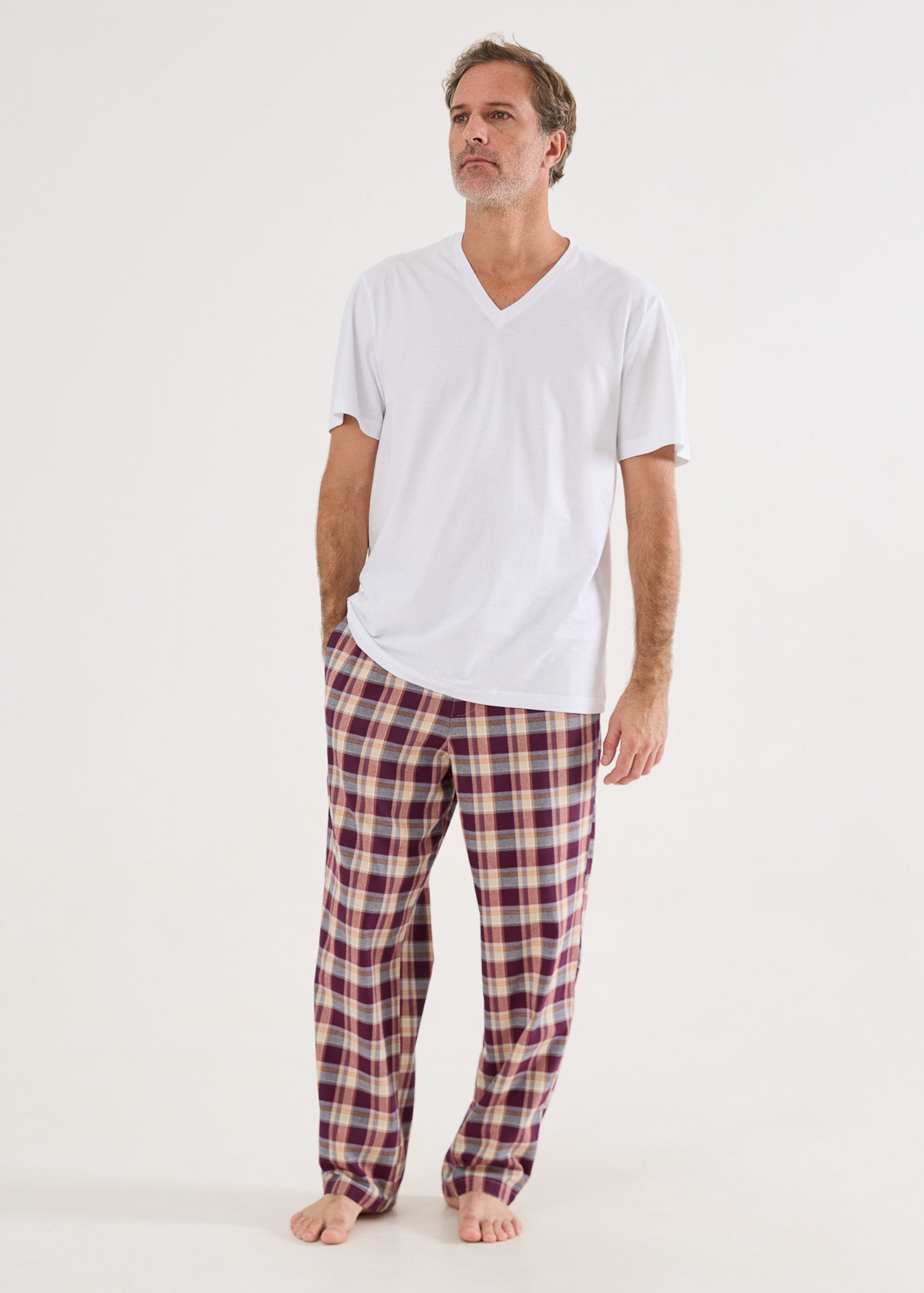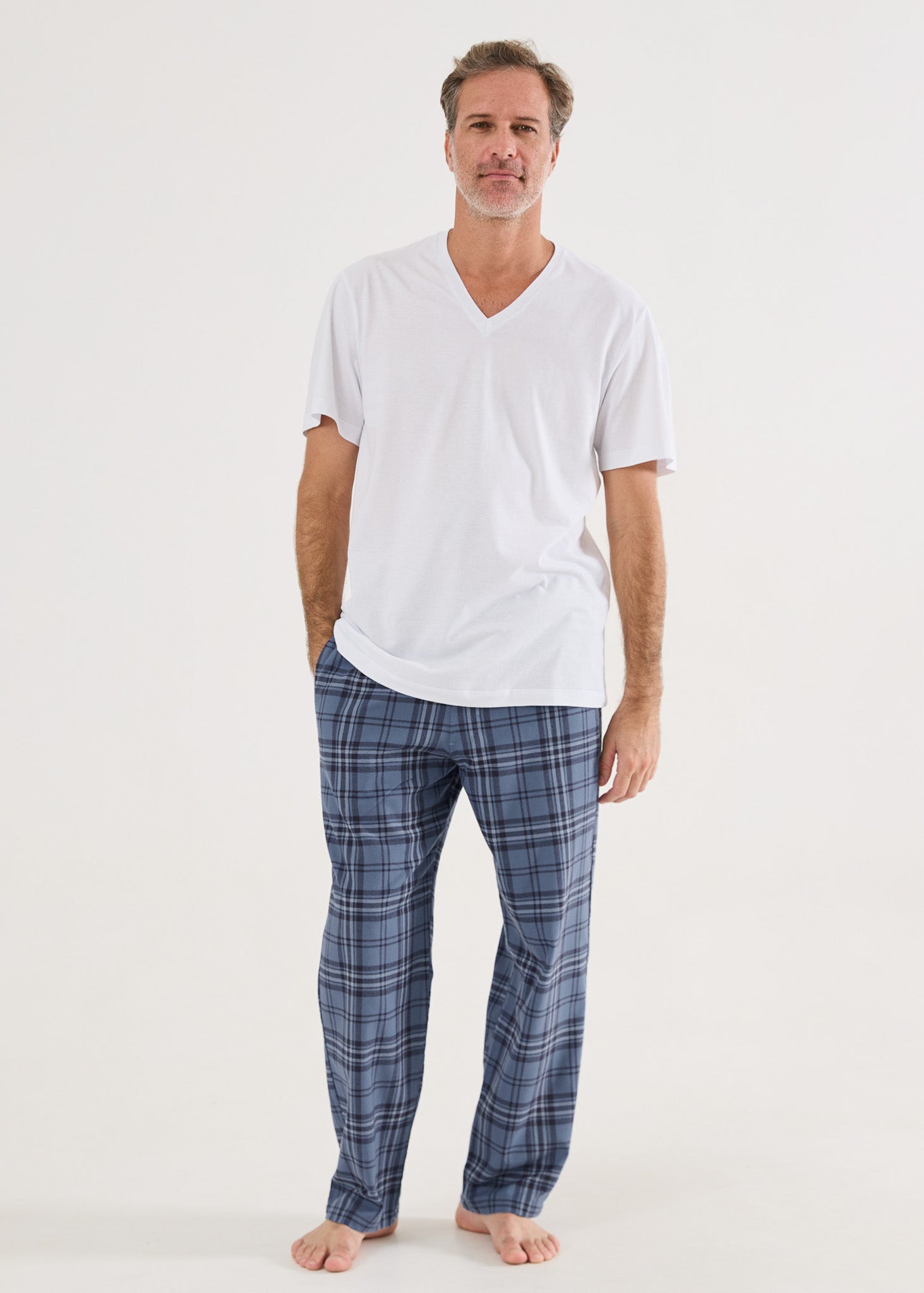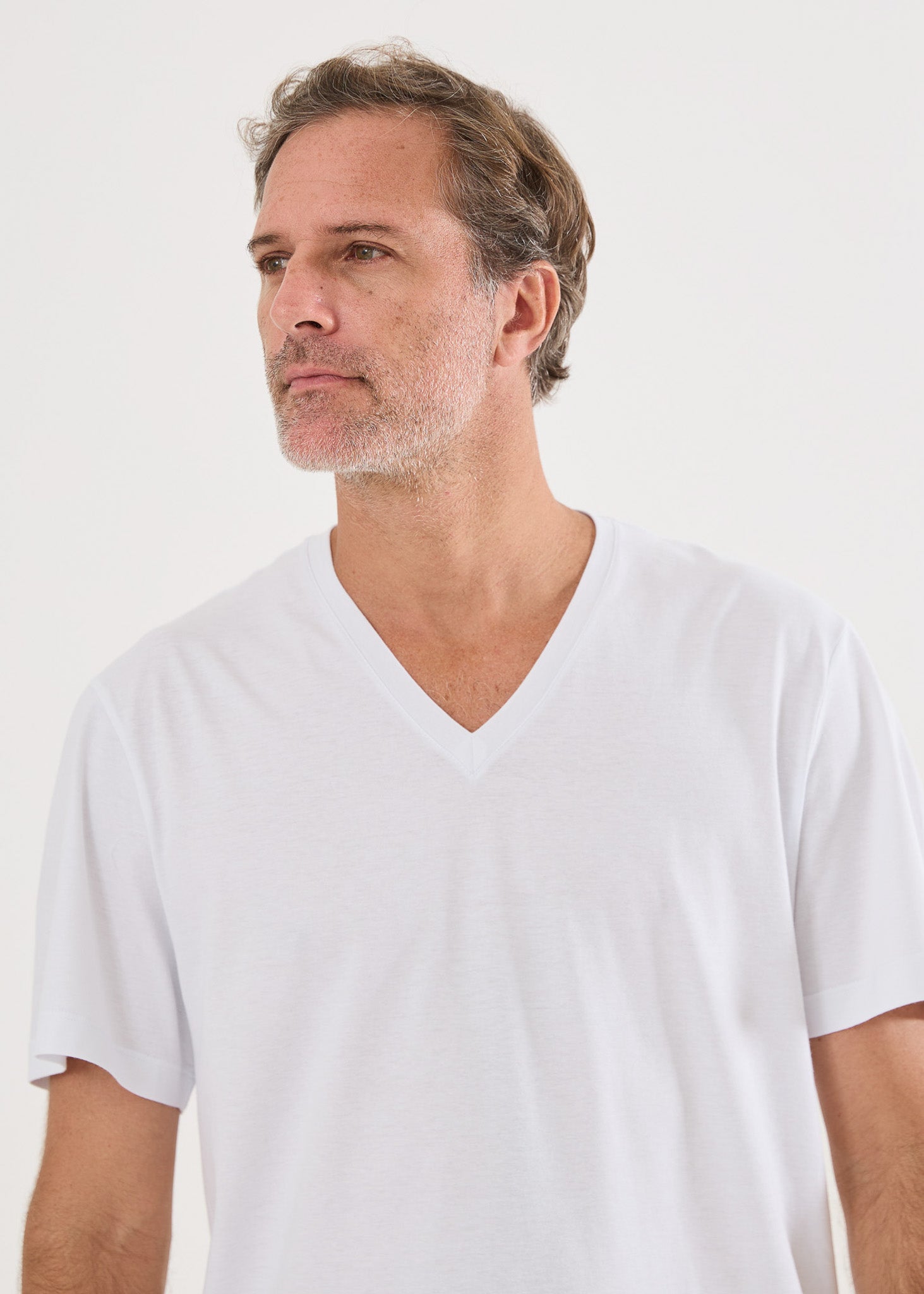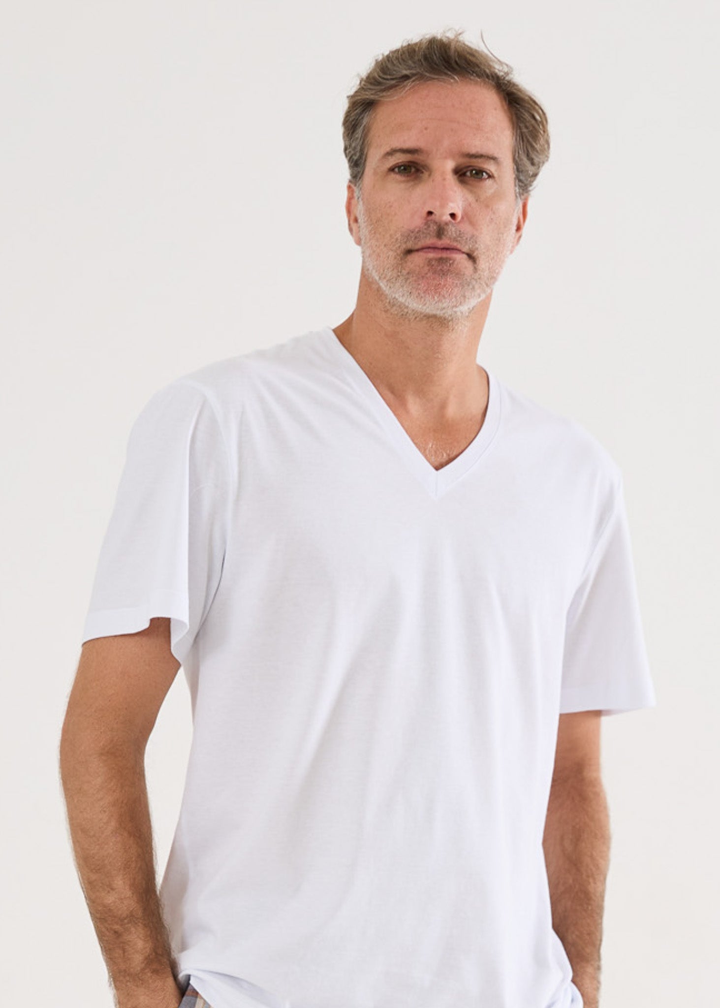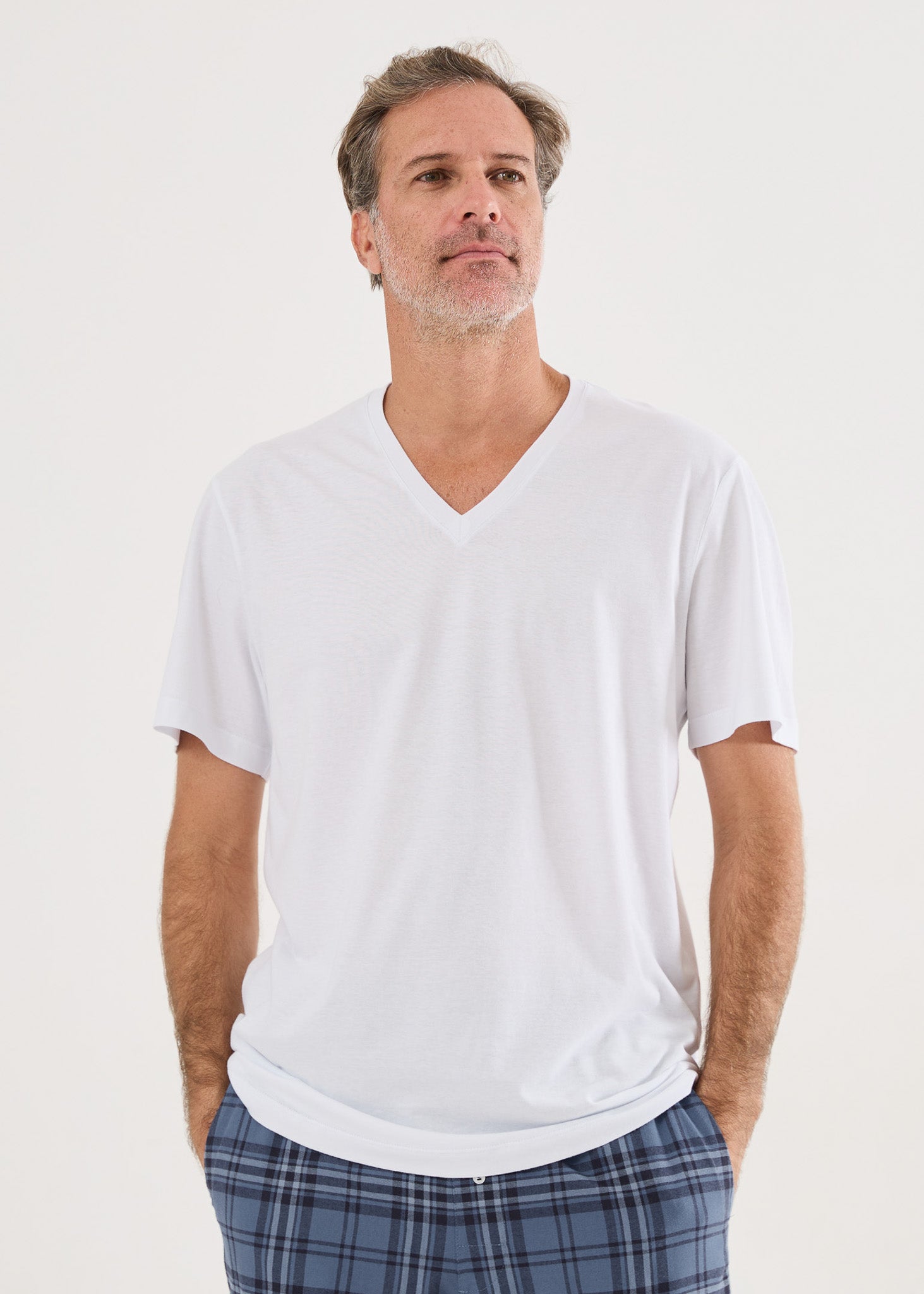Camiseta básica masculina, em malha 100% algodão, modelagem comfort fit, gola V, na cor branca, para você combinar com nossas boxers, calças avulsas ou pijamas. Um dica legal é ter várias cores e ir combinando seu pijama com diversas cores de camisetas. Você pode ter vários looks incríveis com um único pijama! Surpreenda-se com o toque maravilhoso da malha ultrasoft!