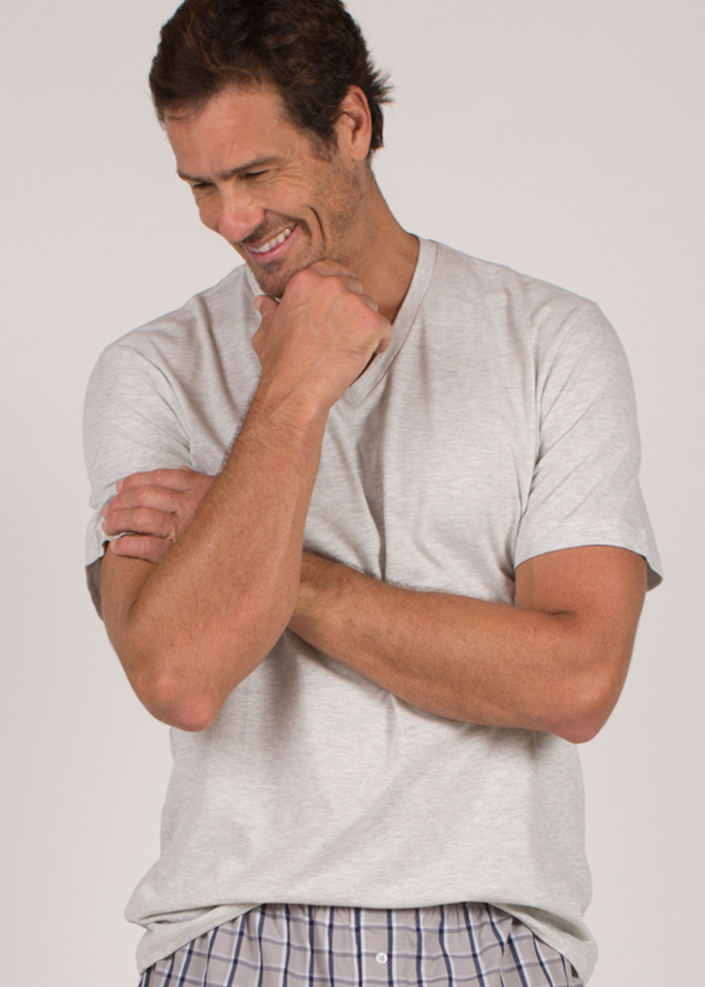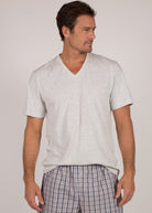 Camiseta básica masculina, modelagem comfort fit, gola V, na cor mescla clara, para você combinar com nossas boxers, calças avulsas ou pijamas. Um dica legal é ter várias cores e ir combinando seu pijama com diversas cores de camisetas. Você pode ter vários looks incríveis com um único pijama! Surpreenda-se com o toque maravilhoso da malha ultrasoft!