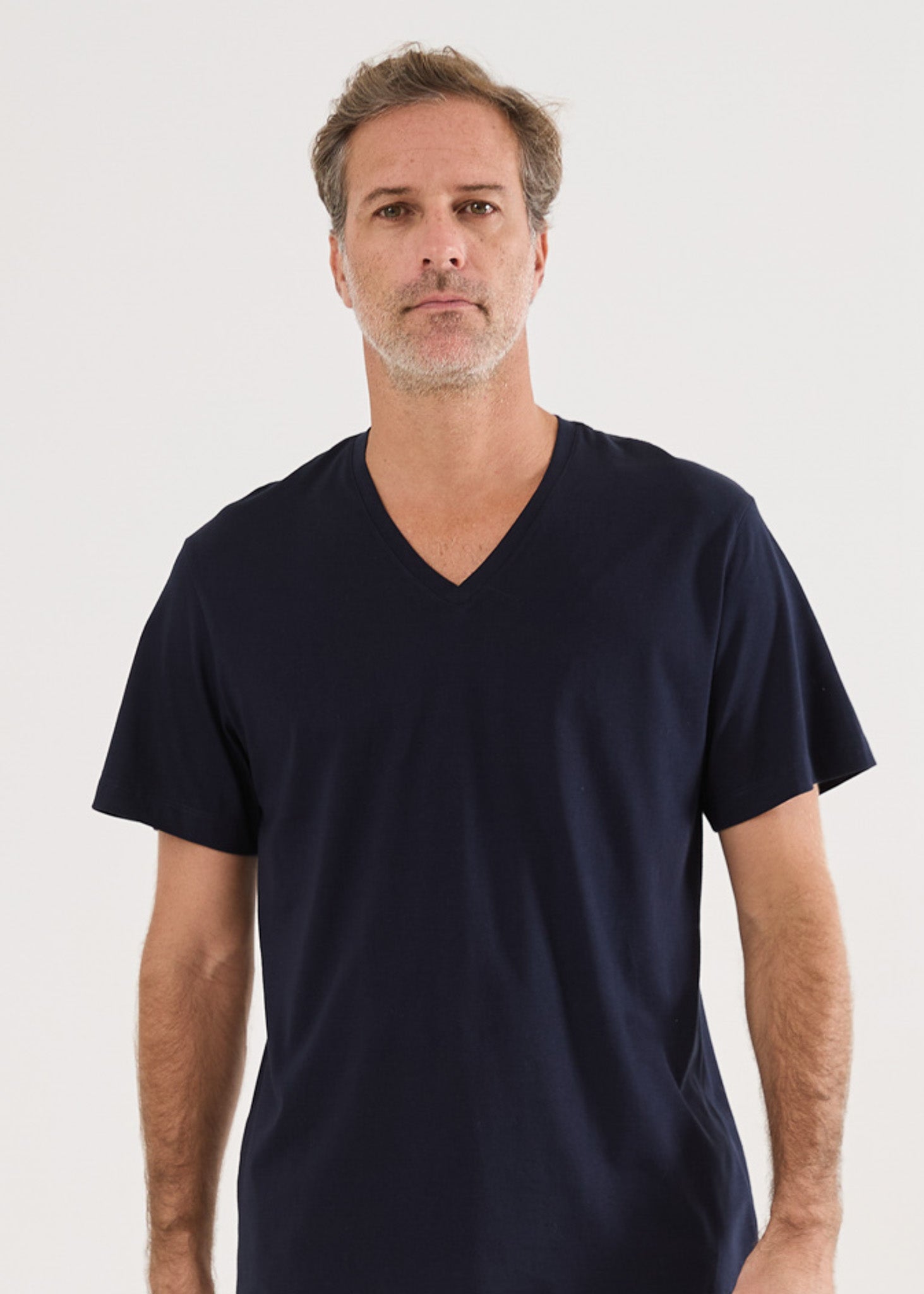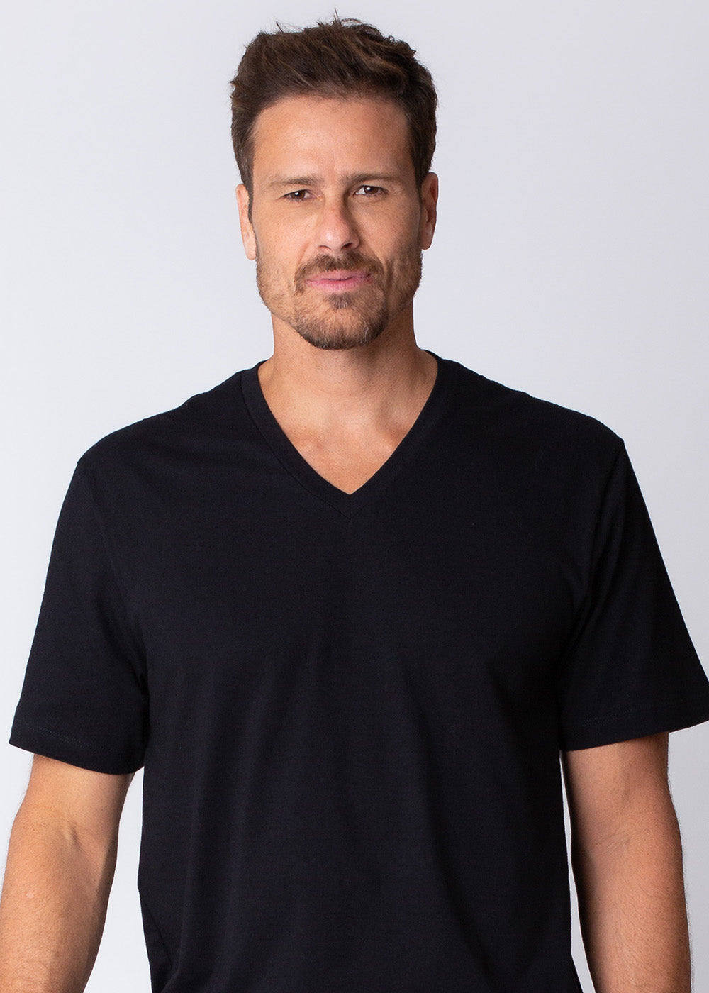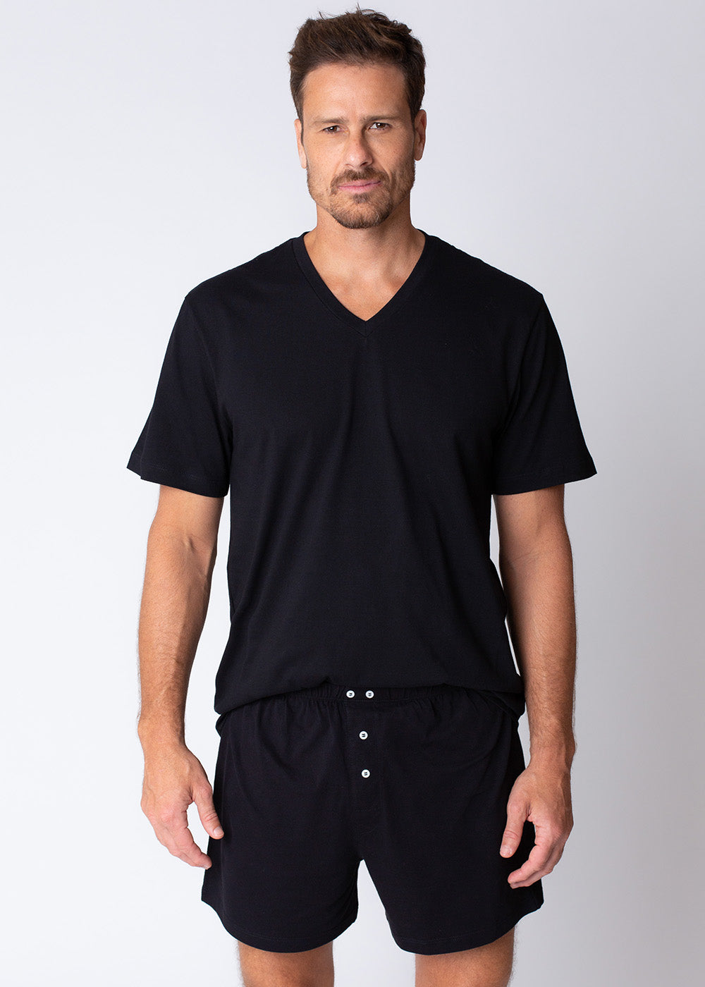 Camiseta básica masculina, em malha 100% algodão, modelagem comfort fit, gola V, na cor preta, para você combinar com nossas boxers, calças avulsas ou pijamas. Um dica legal é ter várias cores e ir combinando seu pijama com diversas cores de camisetas. Você pode ter vários looks incríveis com um único pijama! Surpreenda-se com o toque maravilhoso da malha ultrasoft!