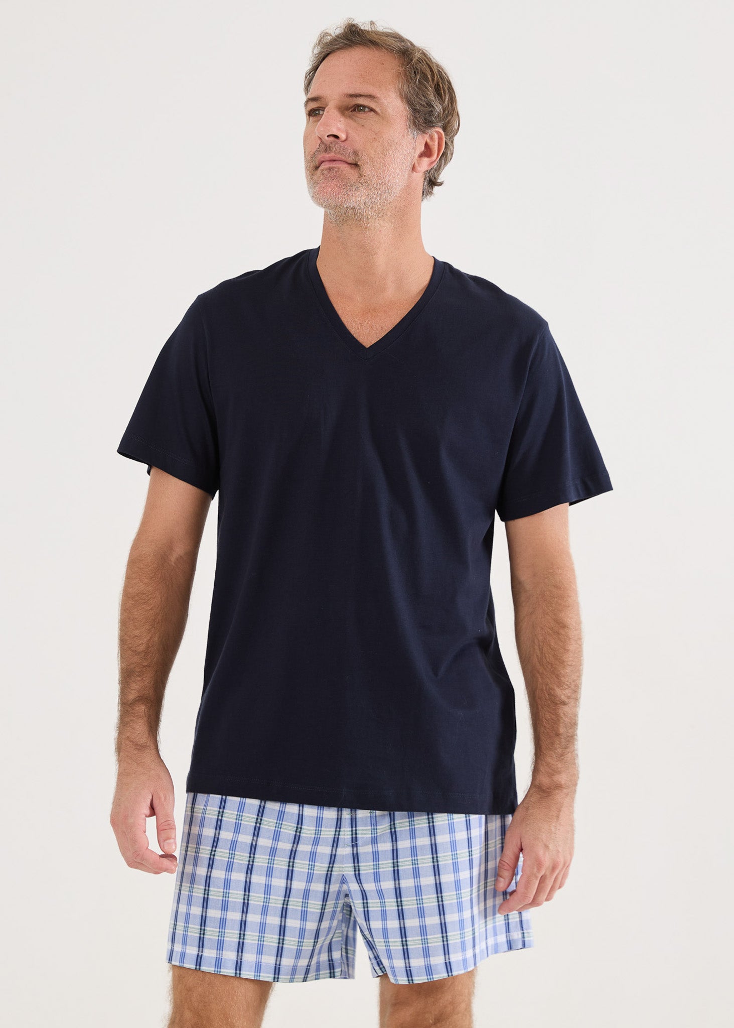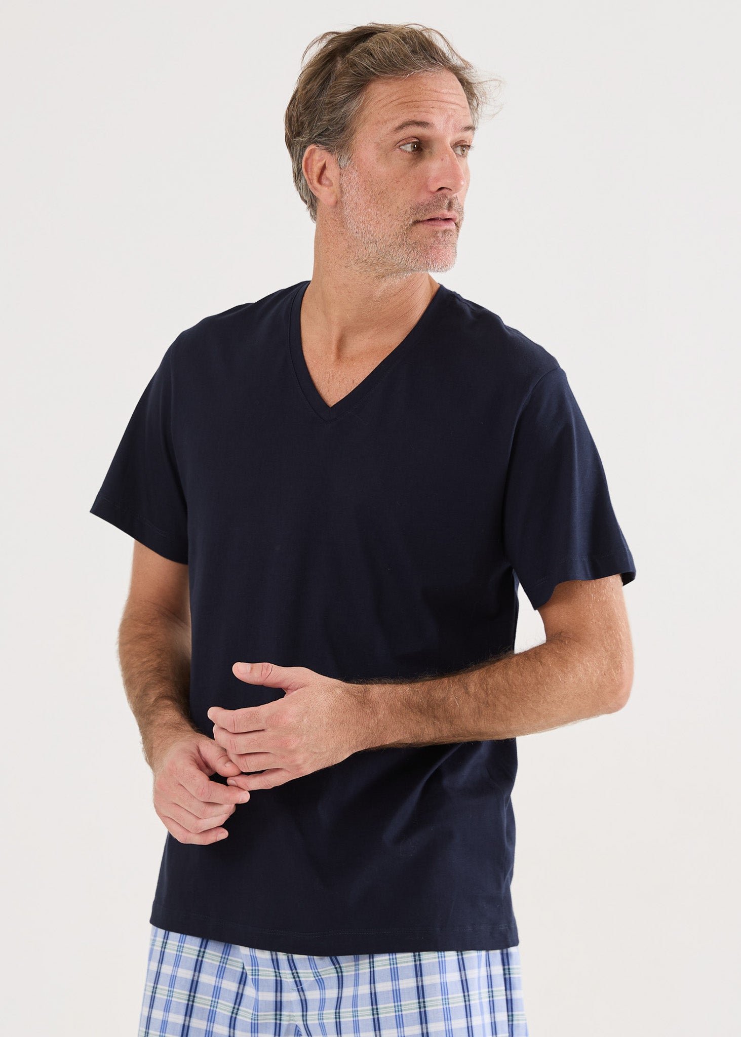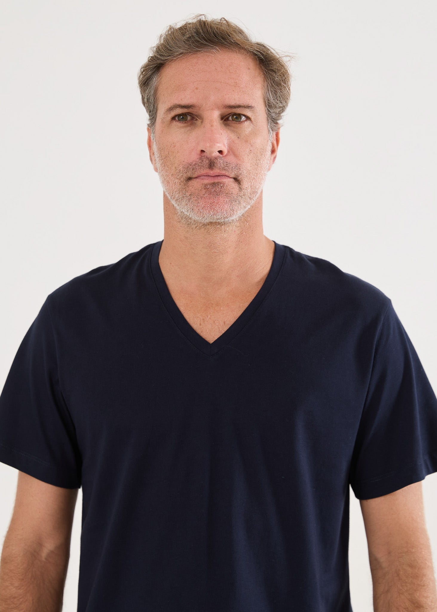 Camiseta básica masculina, em malha 100% algodão, modelagem comfort fit, gola V, na cor preta, para você combinar com nossas boxers, calças avulsas ou pijamas. Um dica legal é ter várias cores e ir combinando seu pijama com diversas cores de camisetas. Você pode ter vários looks incríveis com um único pijama! Surpreenda-se com o toque maravilhoso da malha ultrasoft!