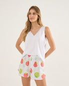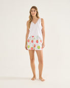 Short avulso feminino, em tecidos 100% algodão, elástico na cintura, barra arredondada com detalhe bordado. Combine seu short avulso com blusas brancas ou coloridas! Monte seu pijama do seu jeito!